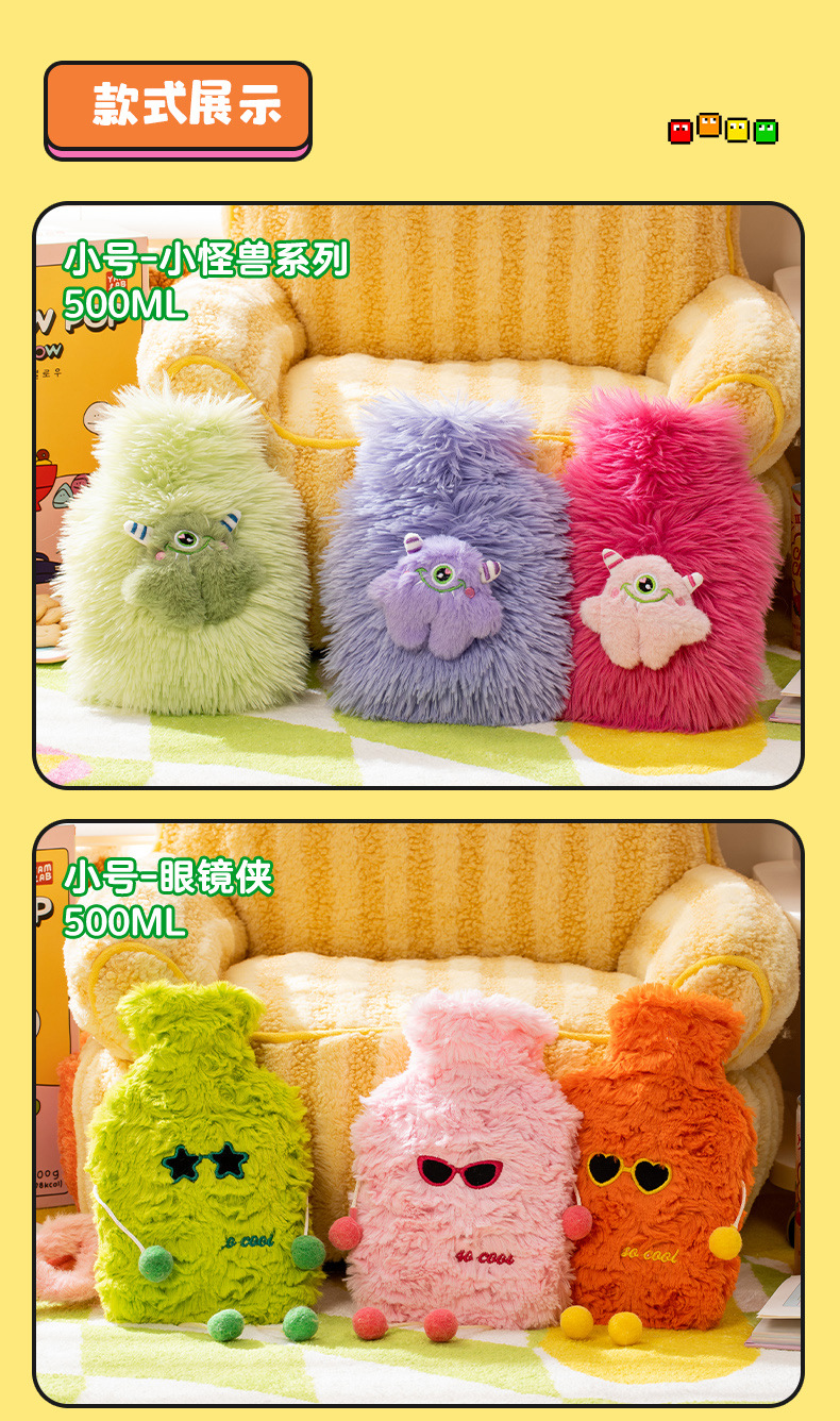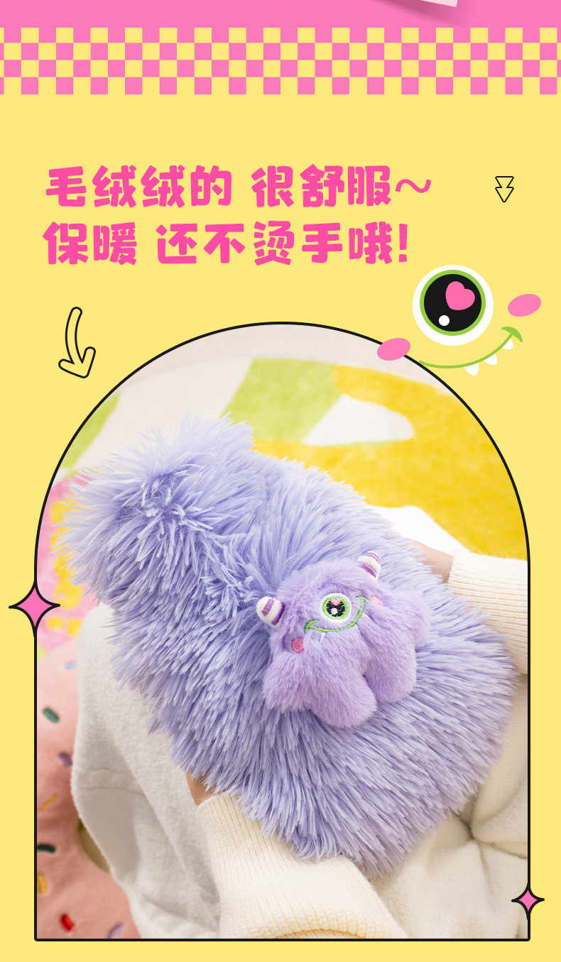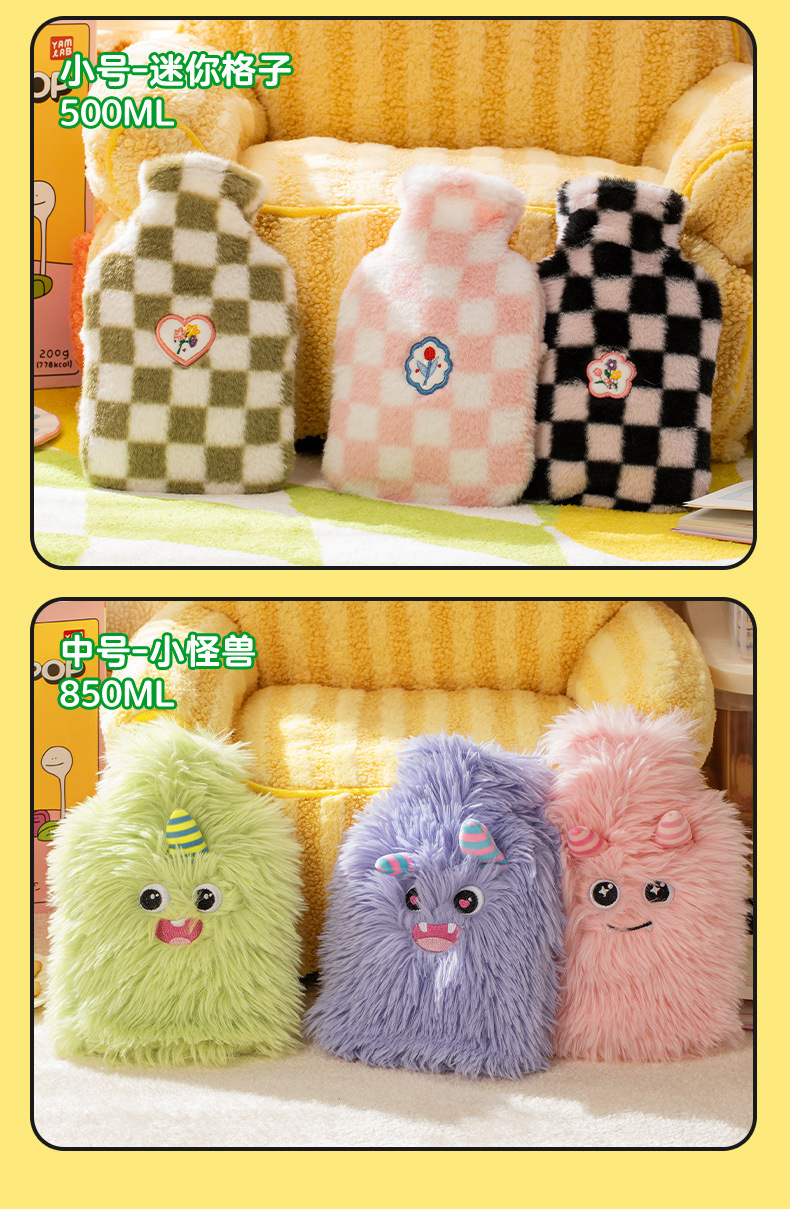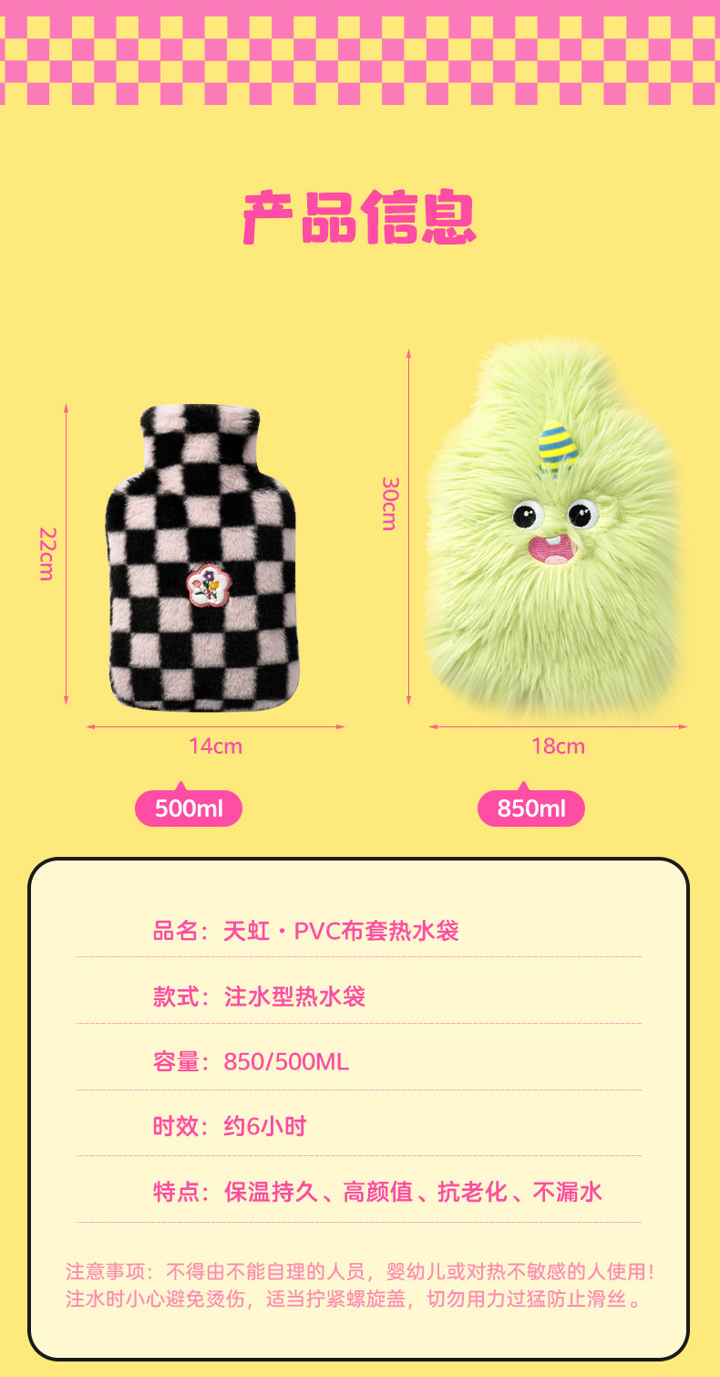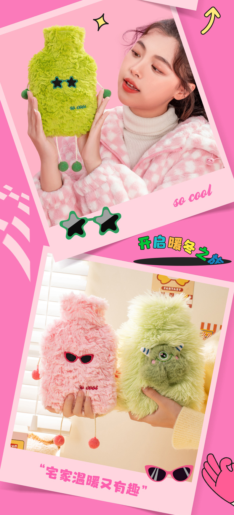 「数款可选!一起暖出“趣”」天虹毛绒PVC充水热水袋 850/500ml带布套卡通搞怪注水居家日用热水袋