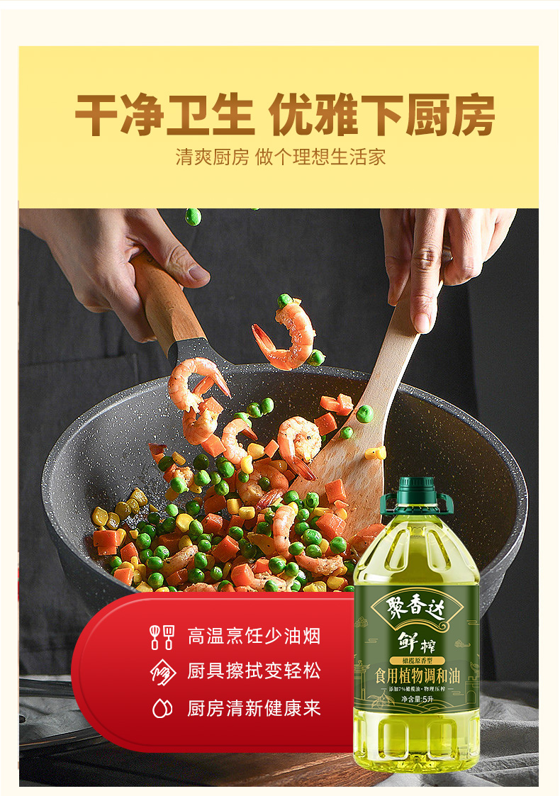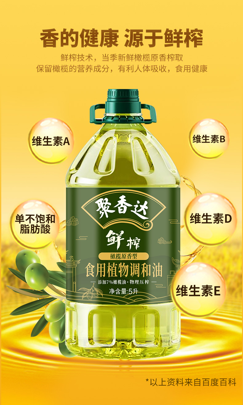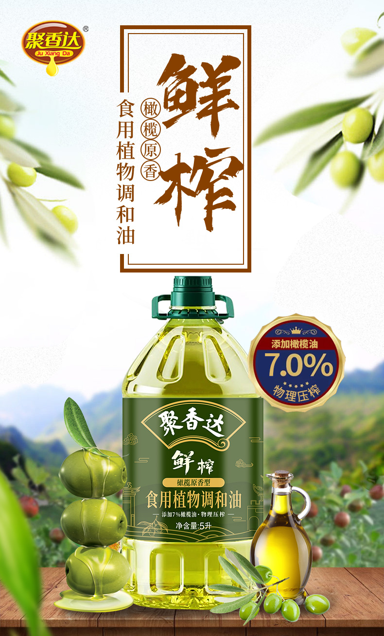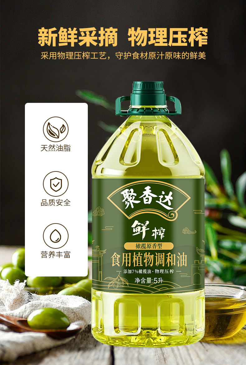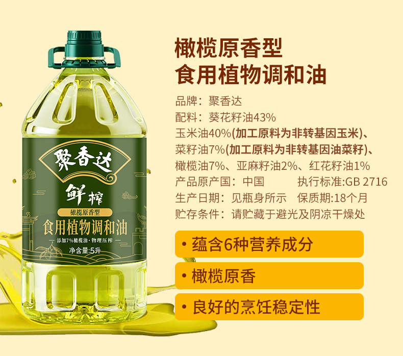 【严选】荆楚好粮油 非转基因 湖北襄阳元大 聚香达食用油物理压榨 鲜榨橄榄原香型食用植物调和油5L/桶(厂家直发)