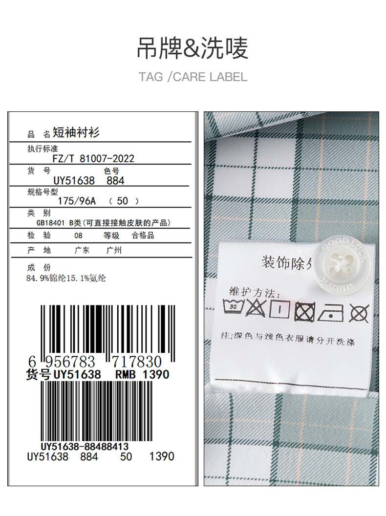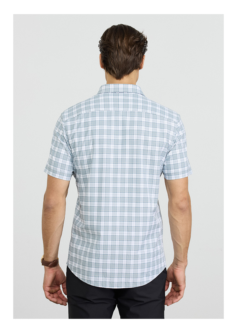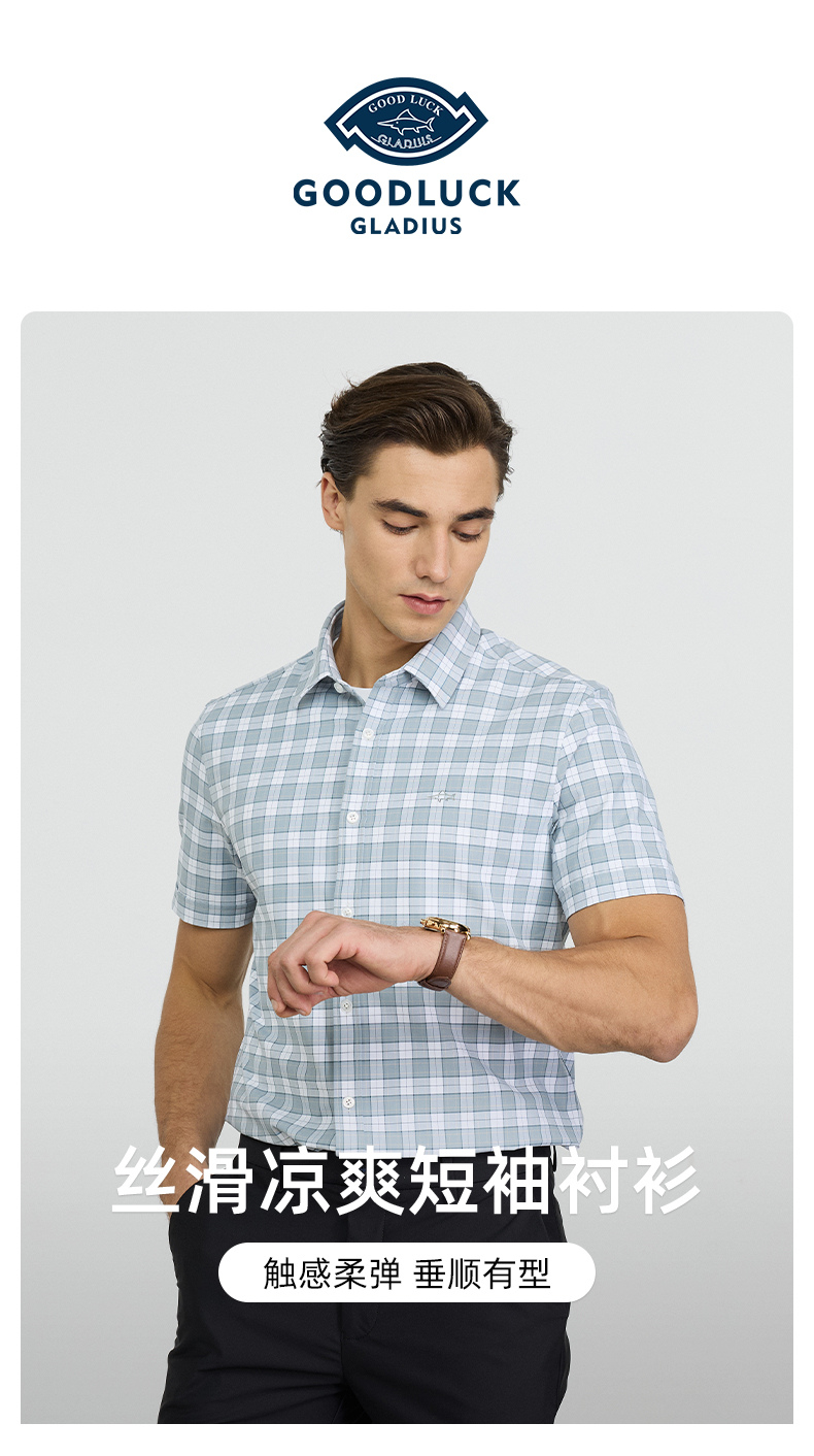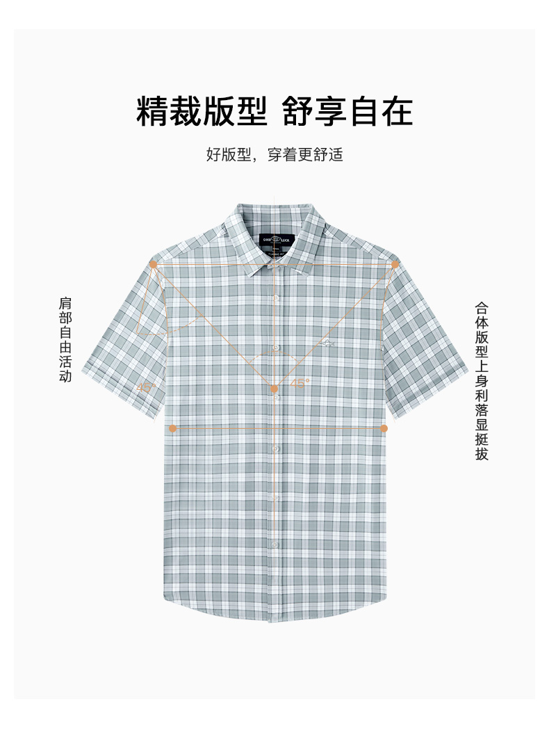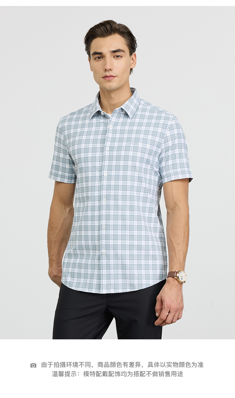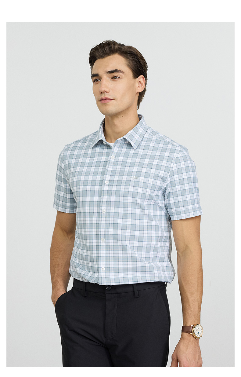 【高弹】德鲨2026夏季新款短袖衬衫男休闲百搭打底上衣男格子衬衣