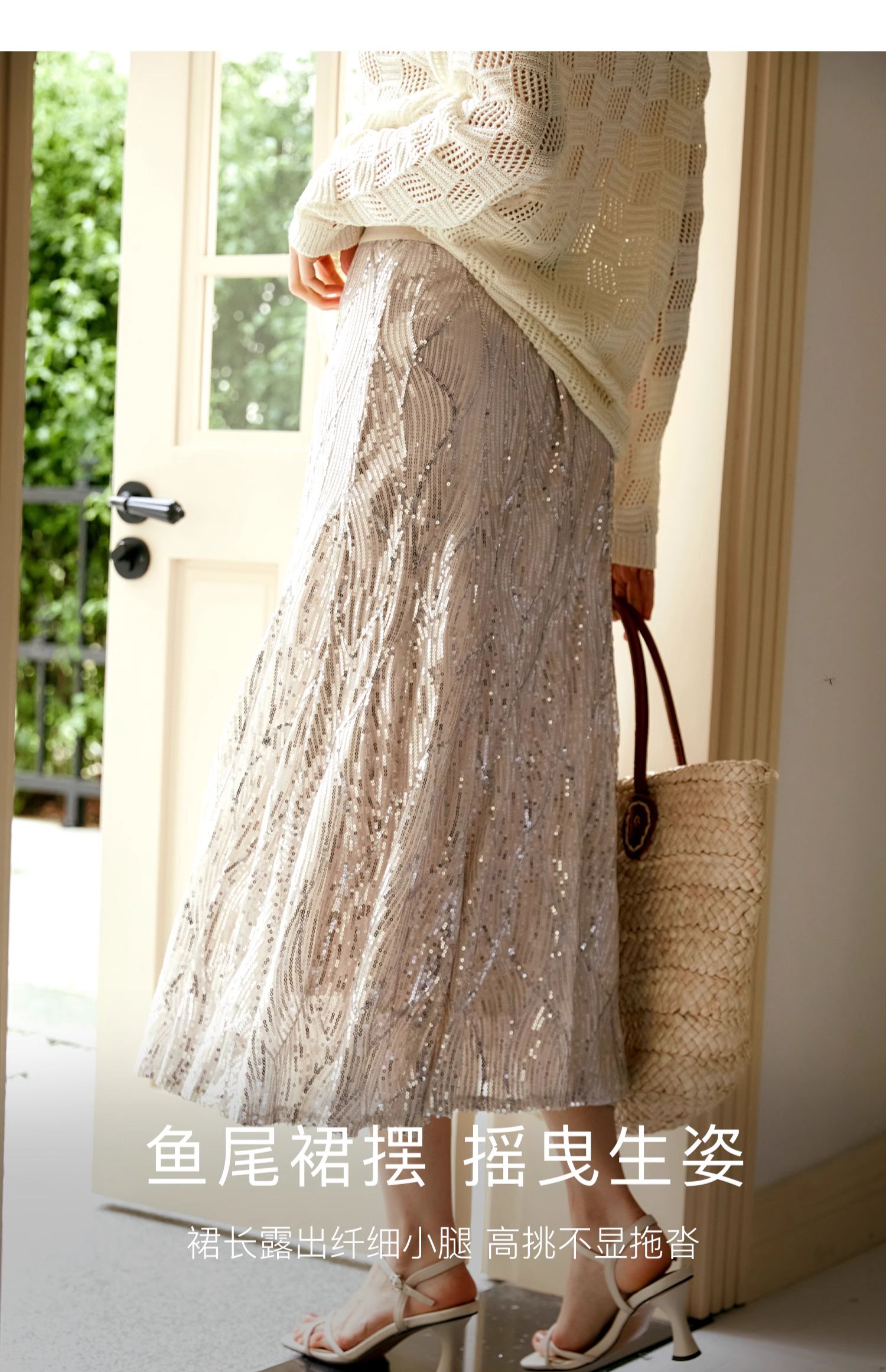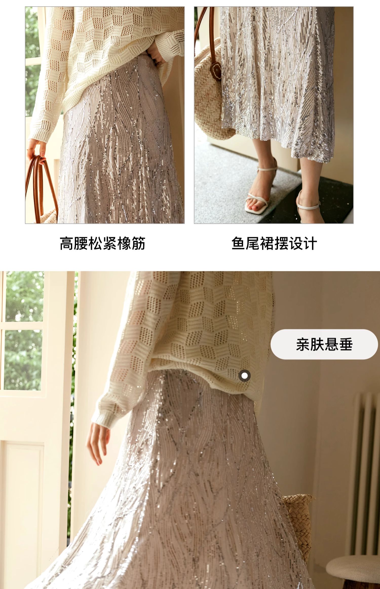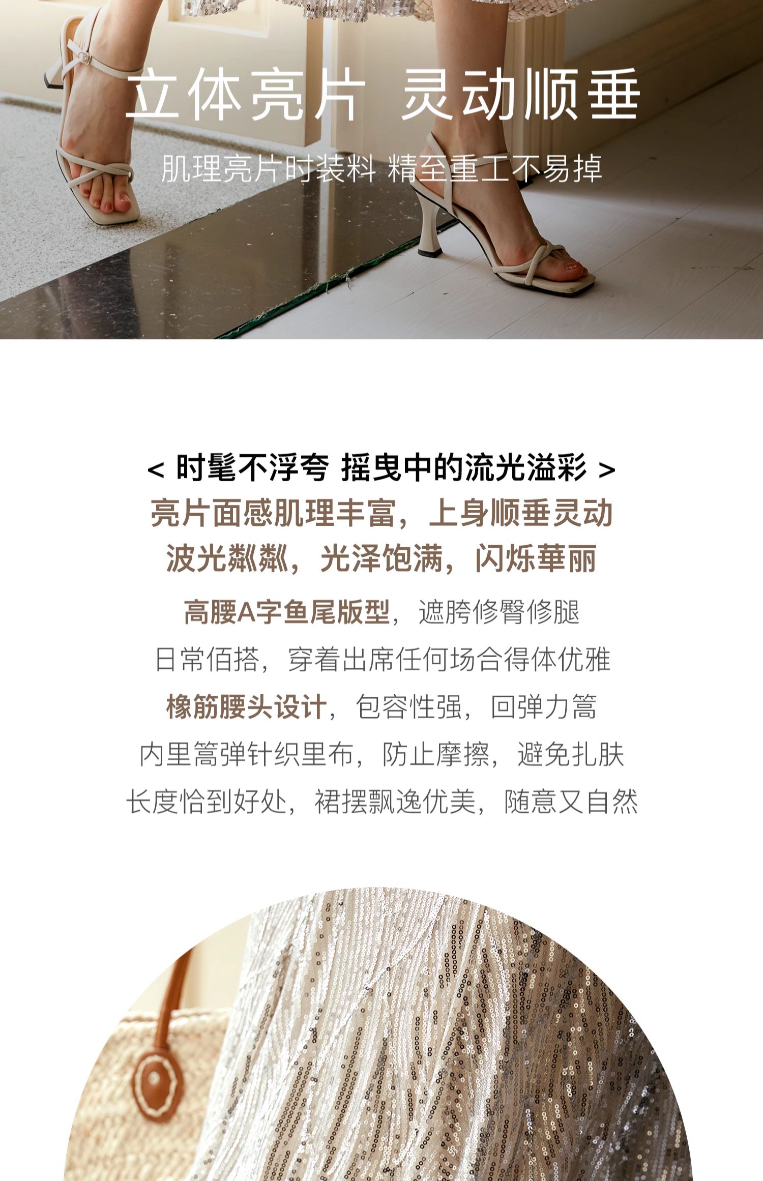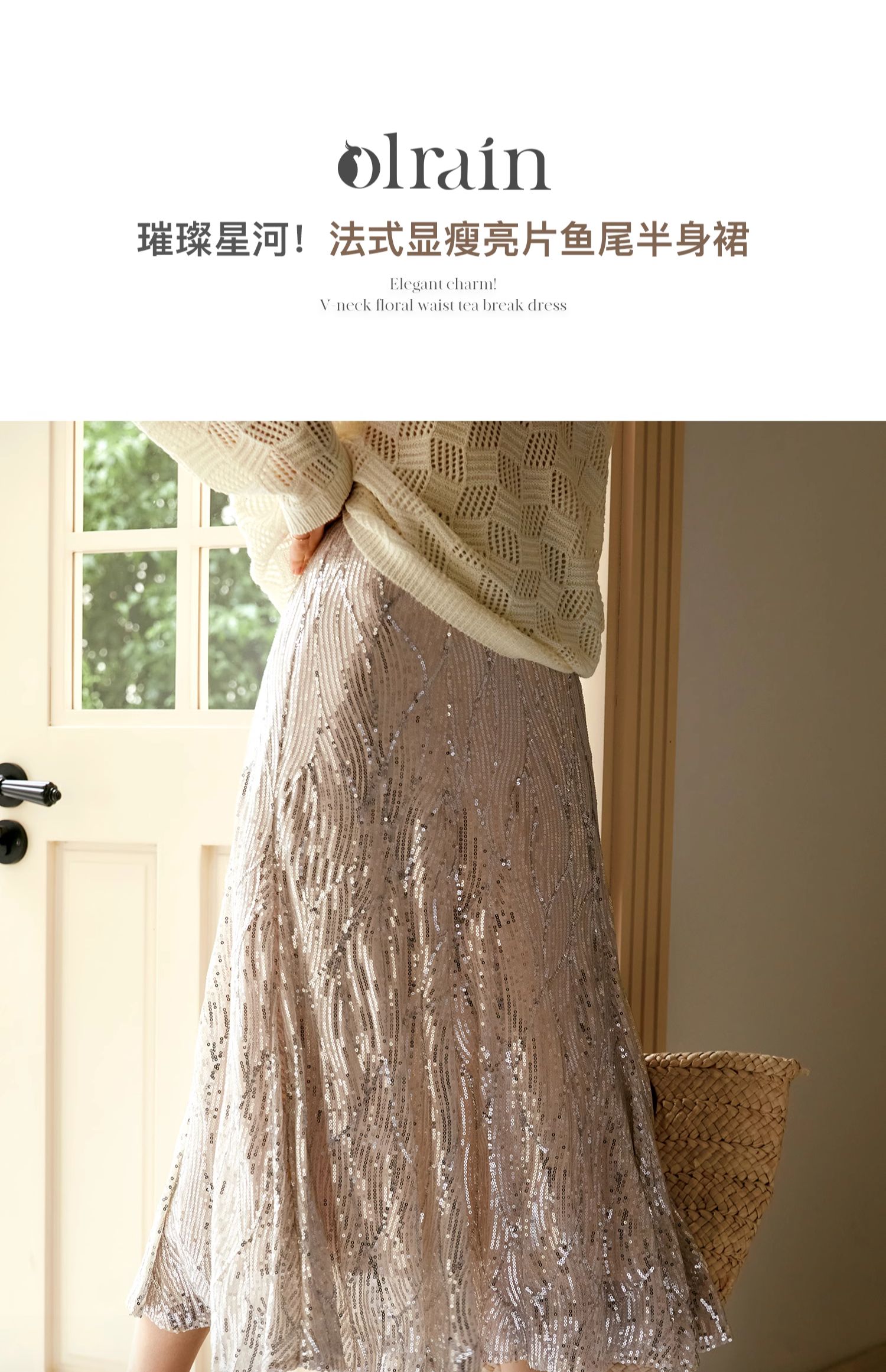 OLrain欧芮儿法式鱼尾半身裙女早秋2024年新款高腰显瘦亮片中长裙