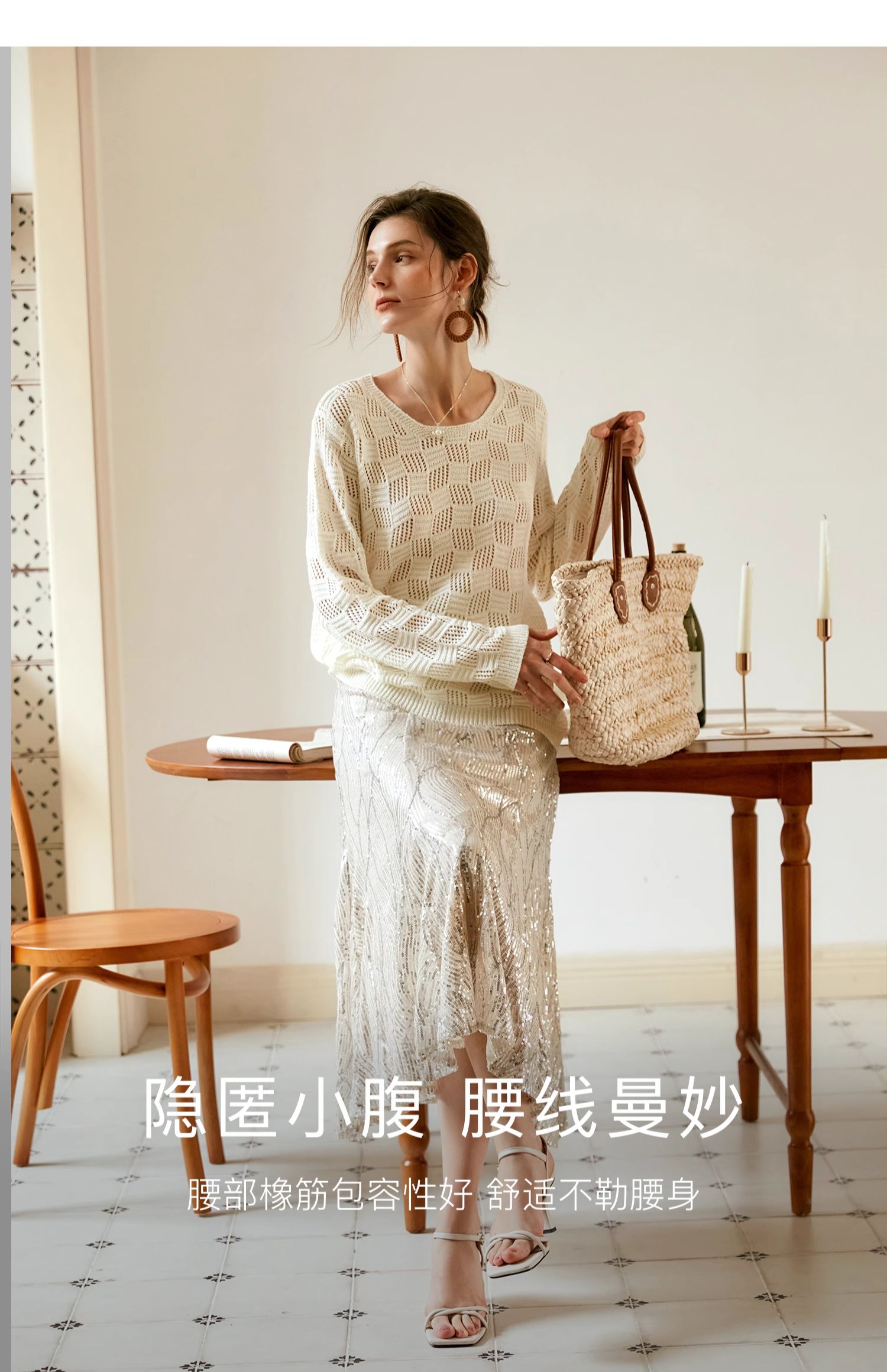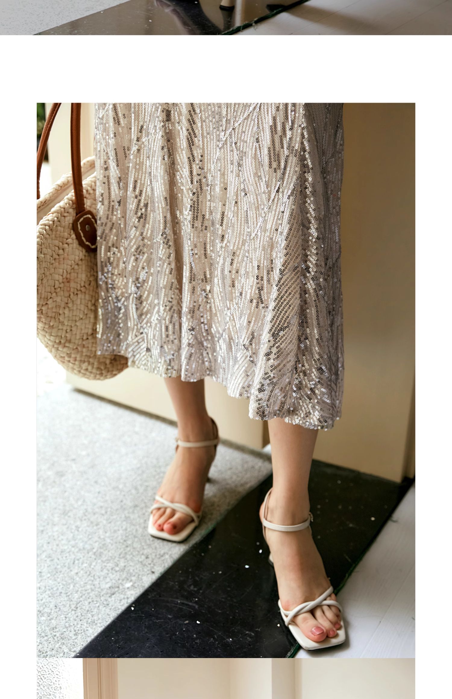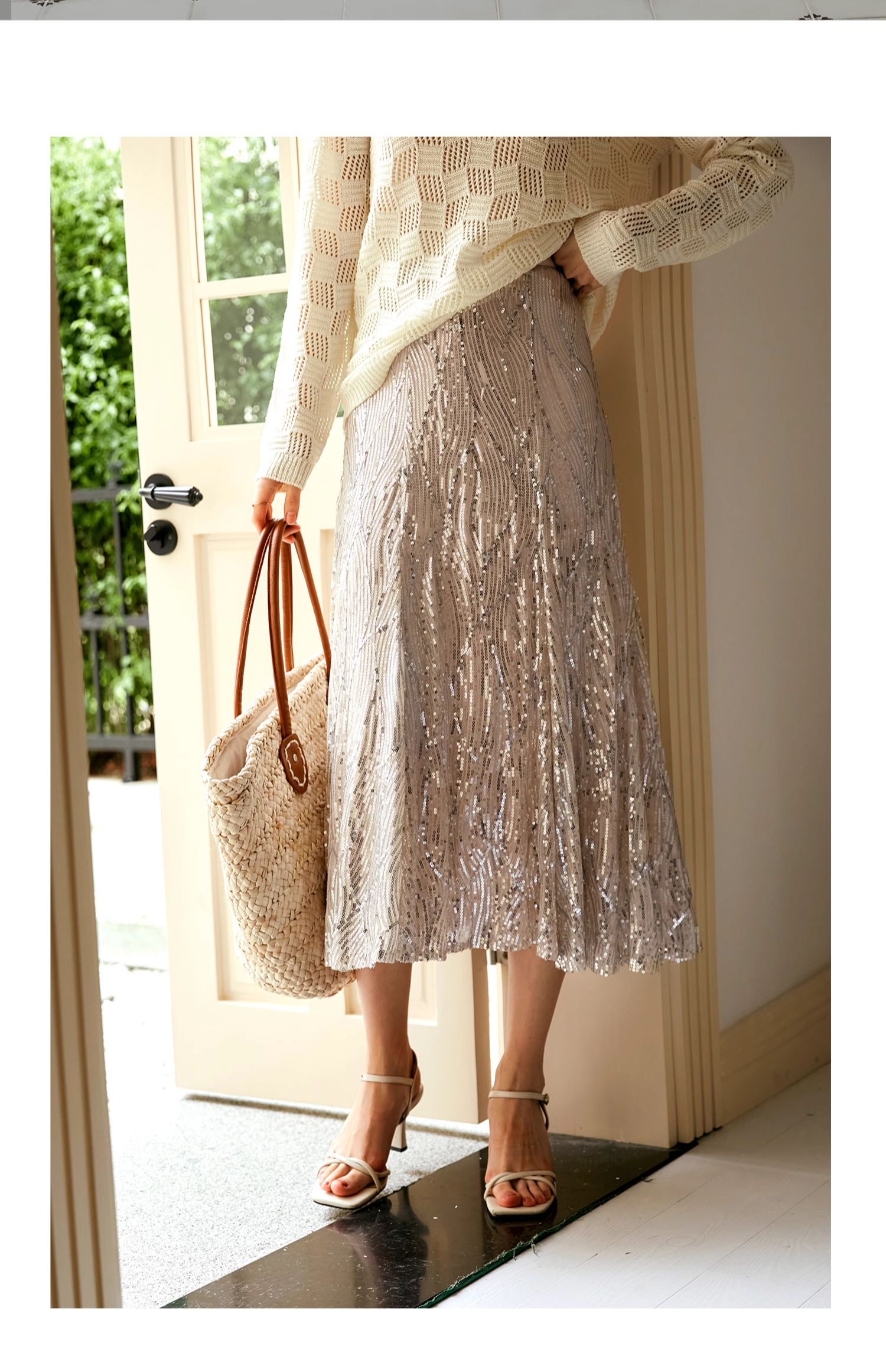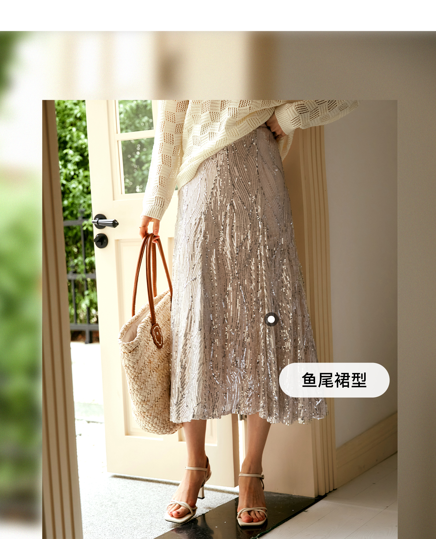 OLrain欧芮儿法式鱼尾半身裙女早秋2024年新款高腰显瘦亮片中长裙