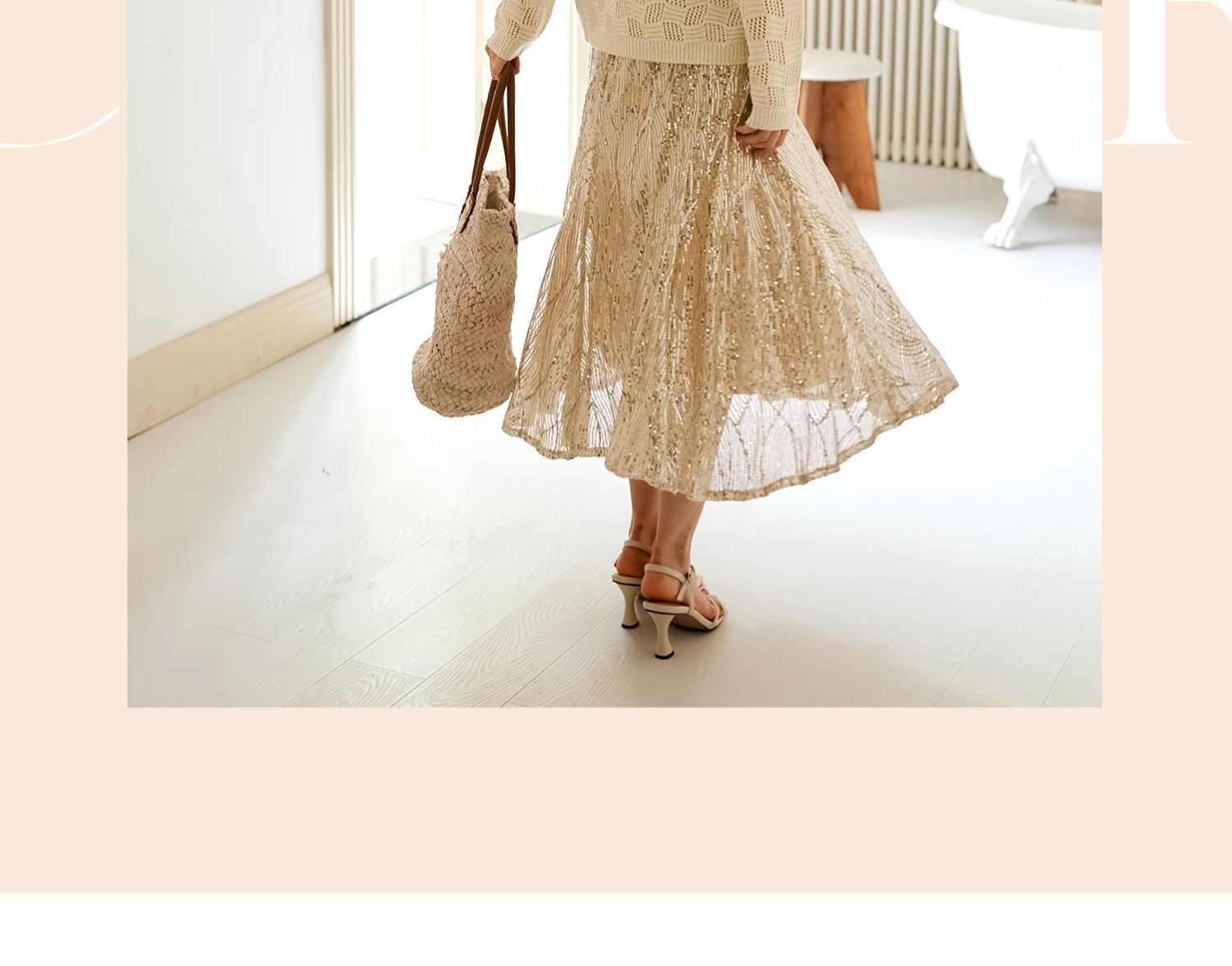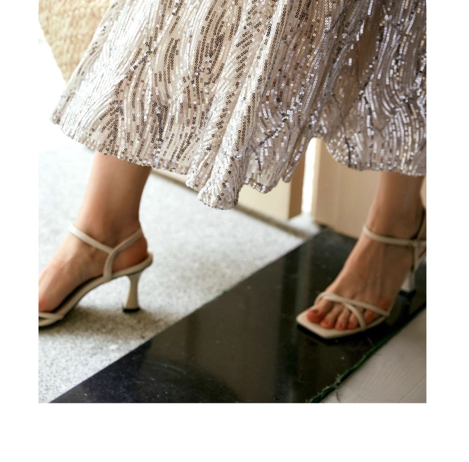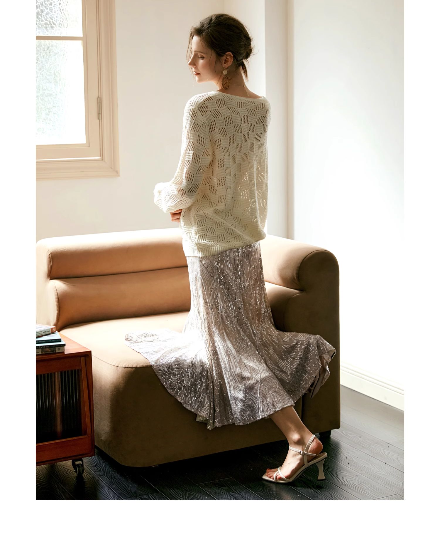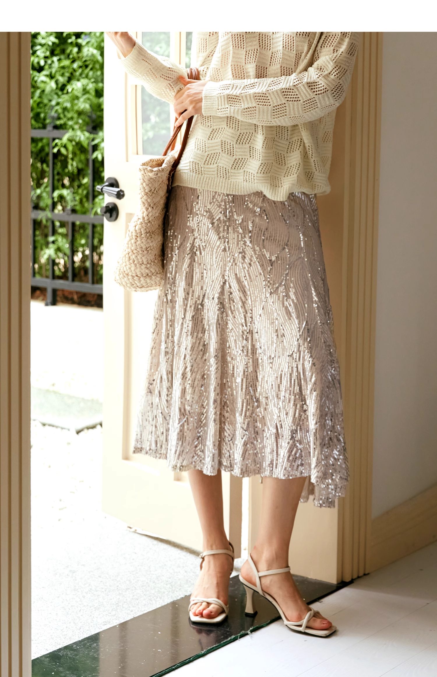 OLrain欧芮儿法式鱼尾半身裙女早秋2024年新款高腰显瘦亮片中长裙