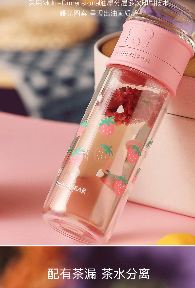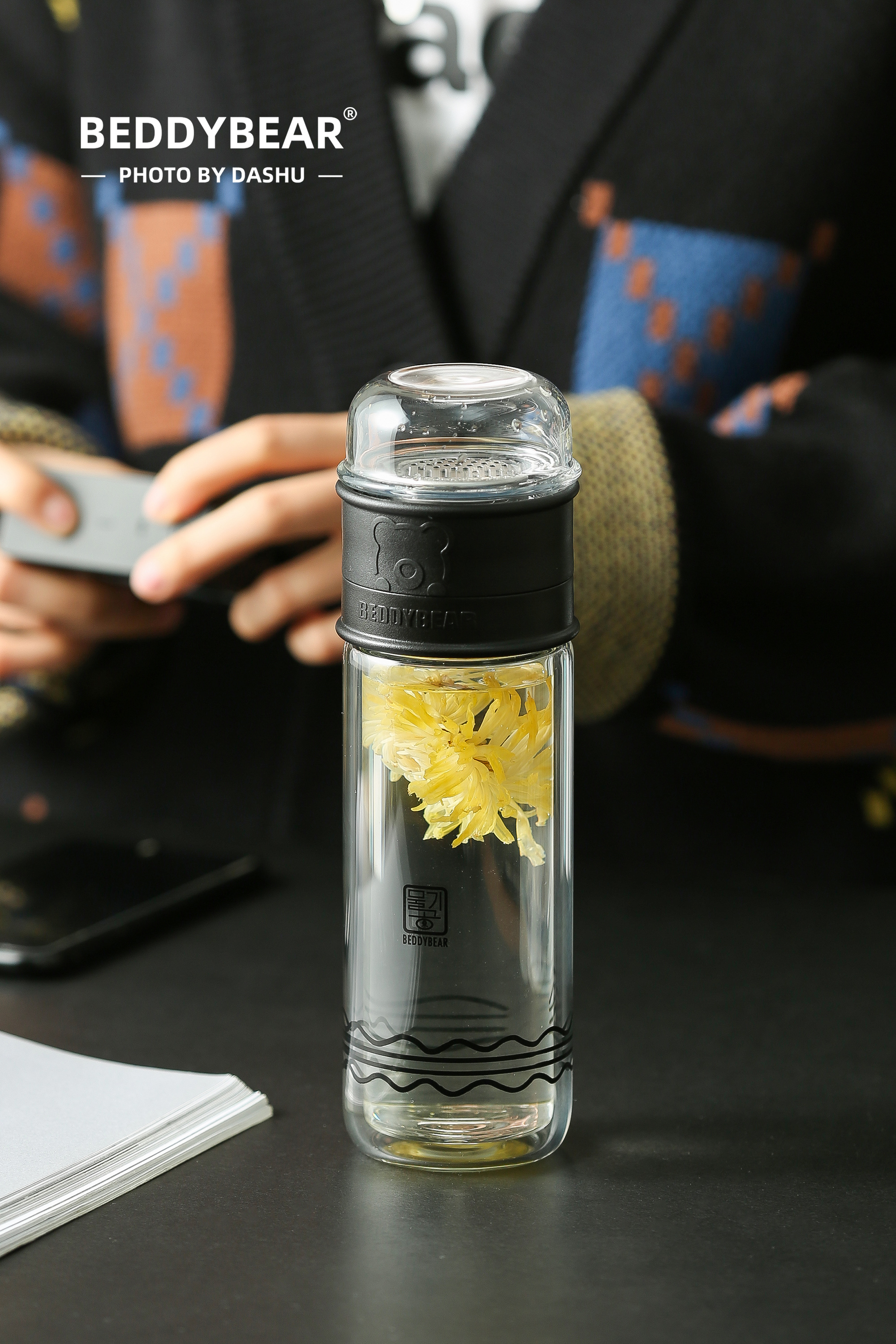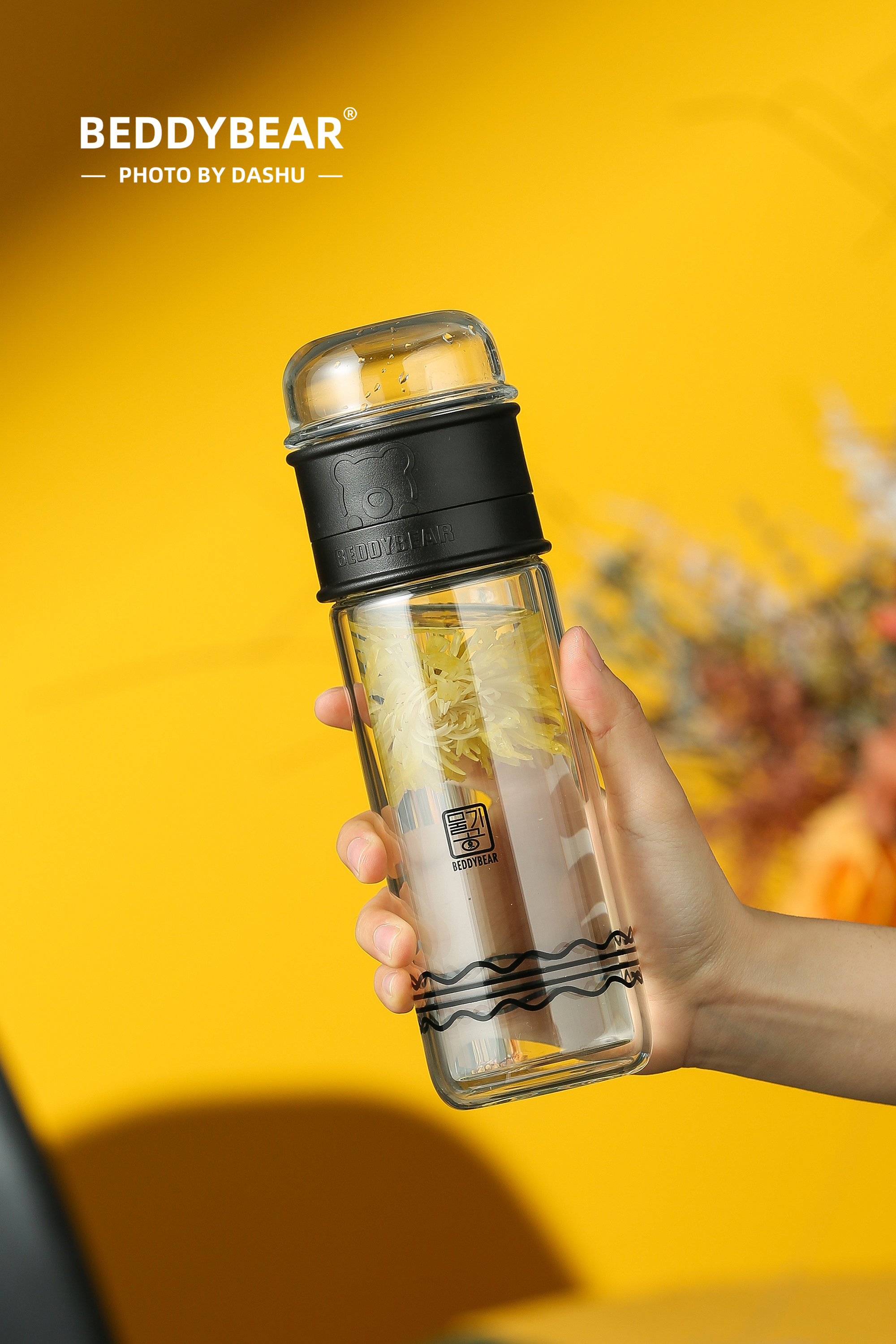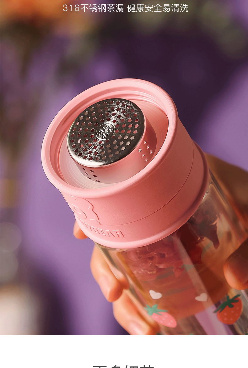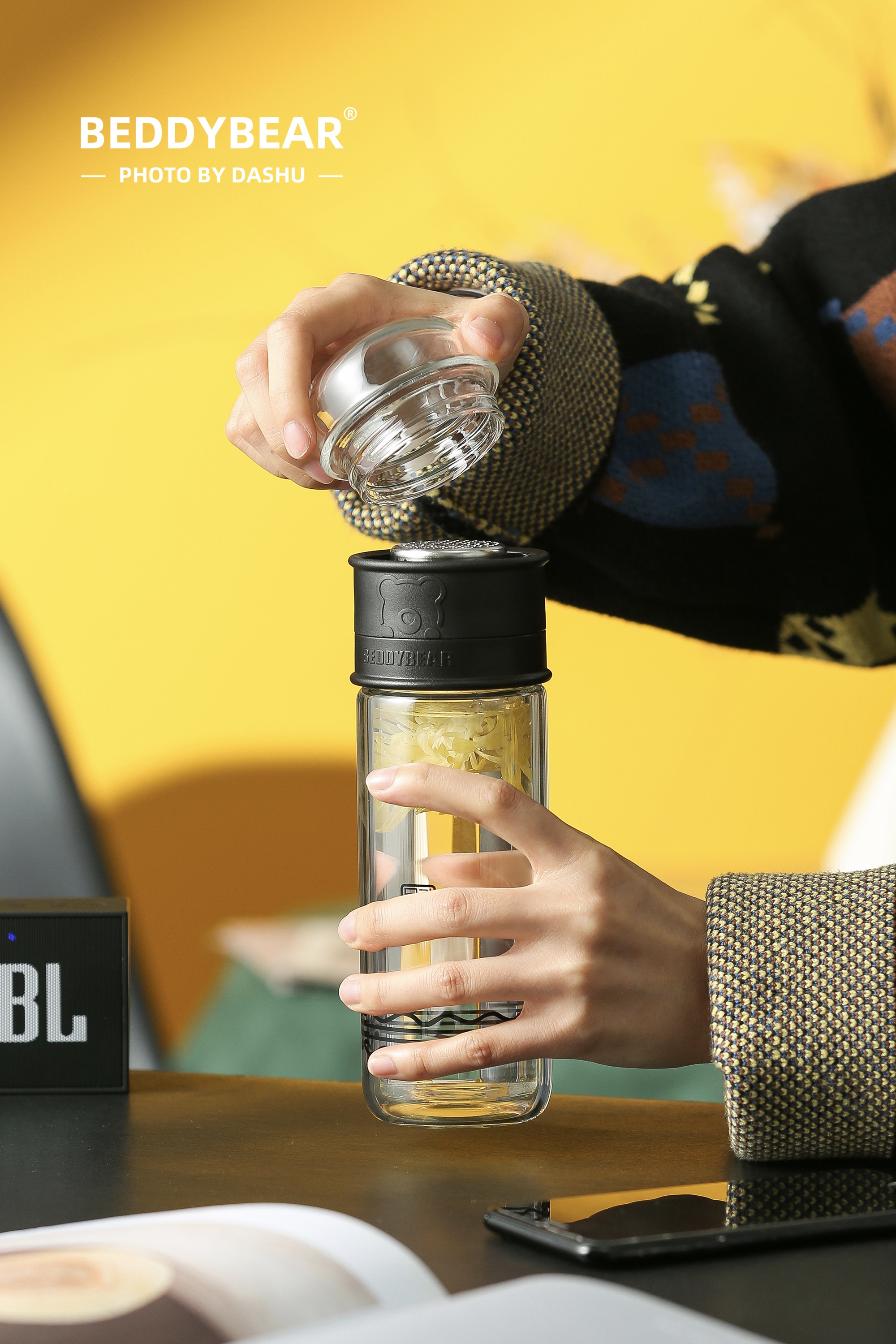 【品牌直发】【杯具熊玻璃杯】渔夫帽、两段式、茶水分离双层杯 泡,茶杯男女水果过滤便携