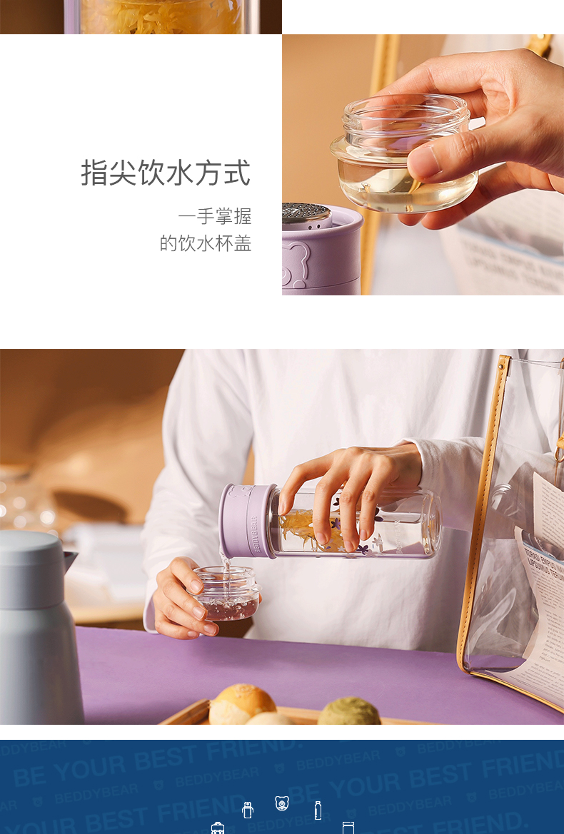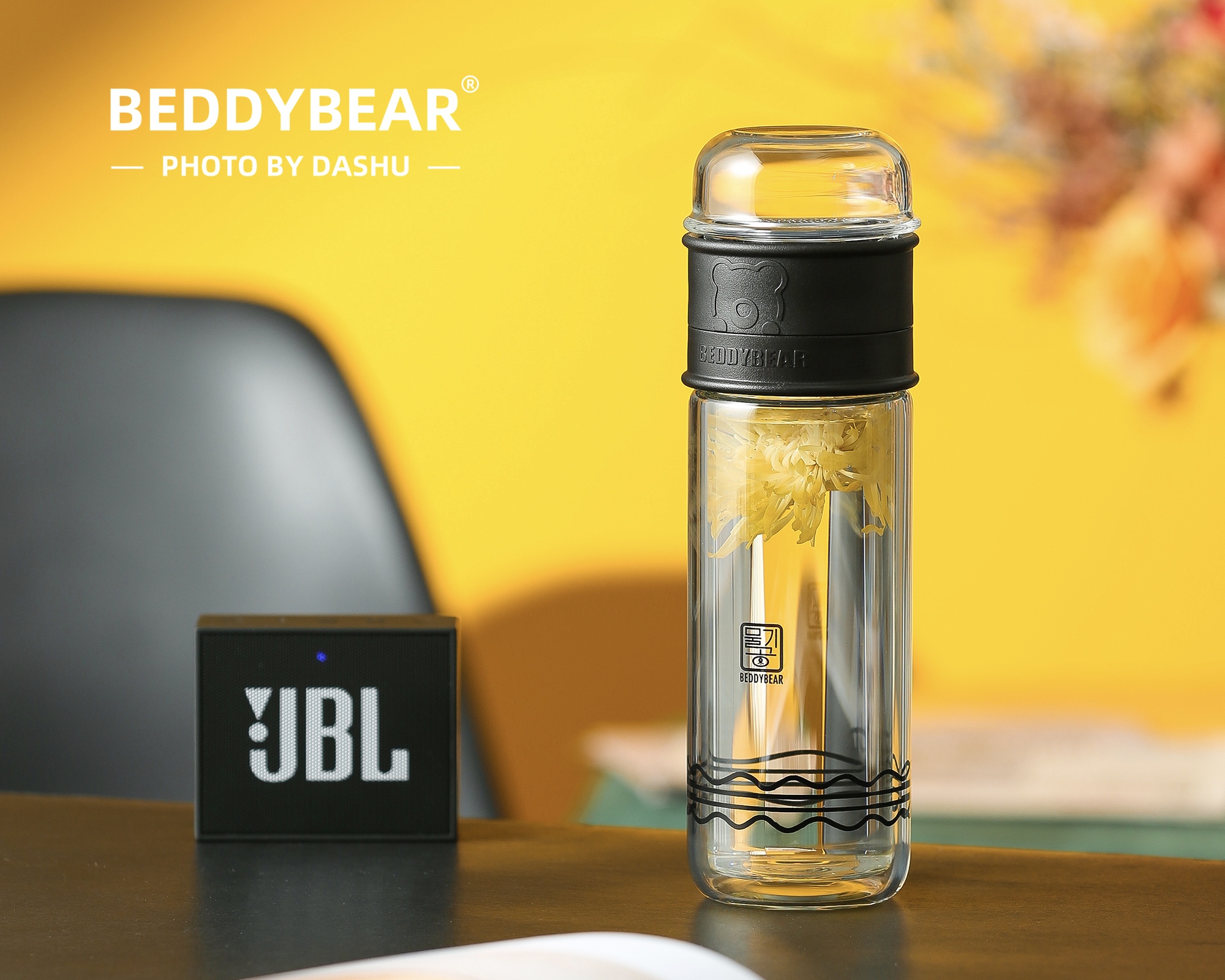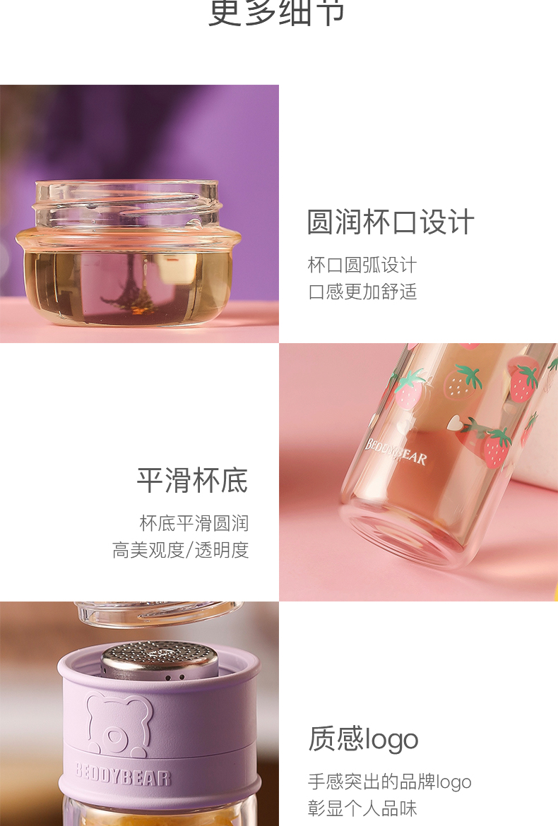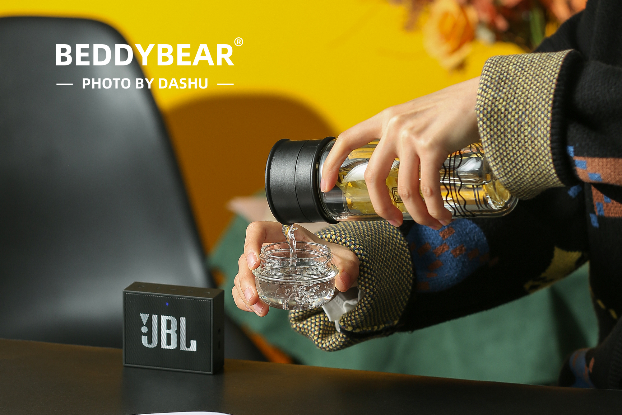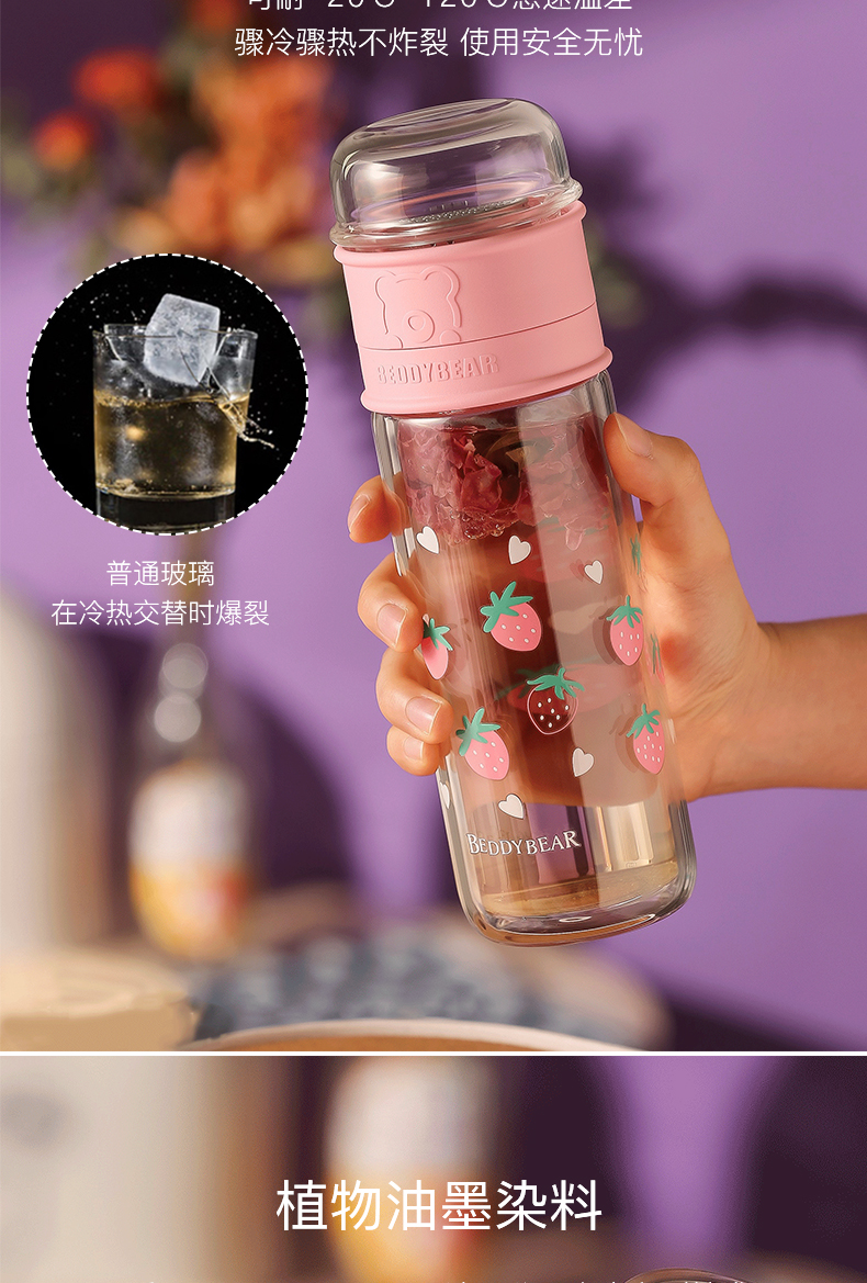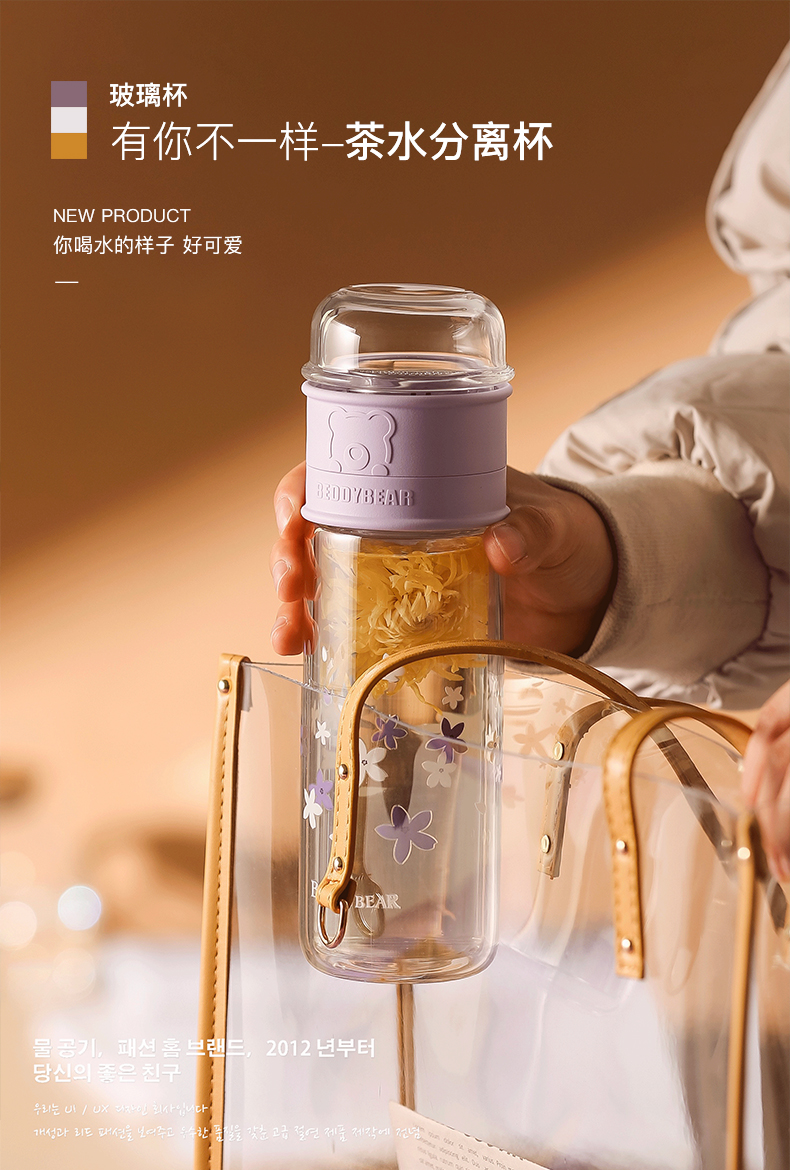 【品牌直发】【杯具熊玻璃杯】渔夫帽、两段式、茶水分离双层杯 泡,茶杯男女水果过滤便携