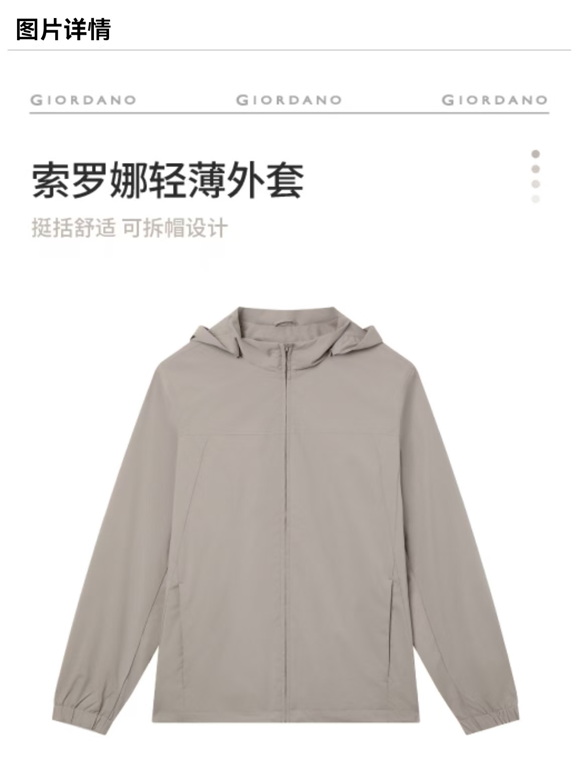 佐丹奴男装26年新款索罗娜轻薄外套01076014