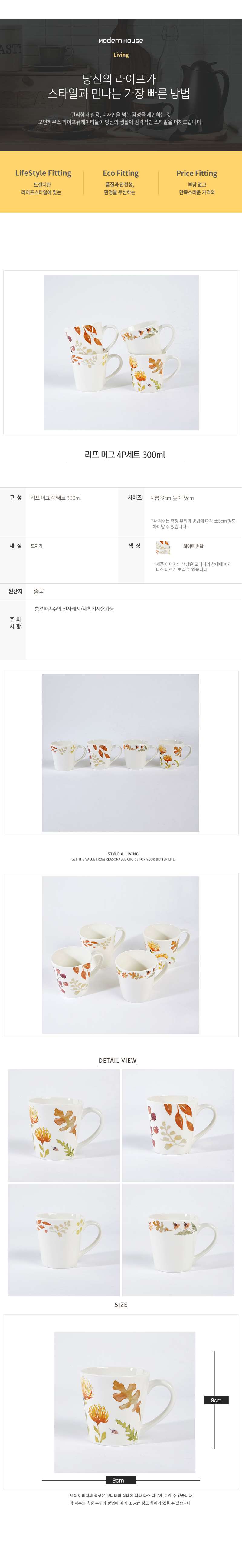 [现代住宅] 新款 韩国 叶子印花 咖啡杯 马克杯 4P 组合 300MLJPY带授权招加盟代理