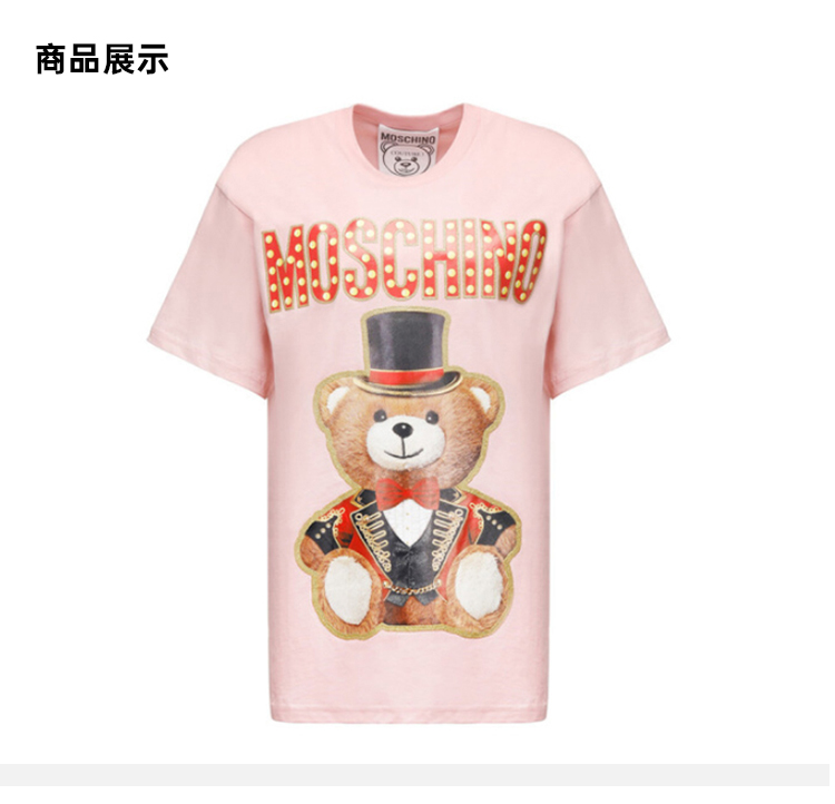 MOSCHINO COUTURE 莫斯奇诺 圣诞熊女士T恤 字母图案 粉色 0702 0540 3224