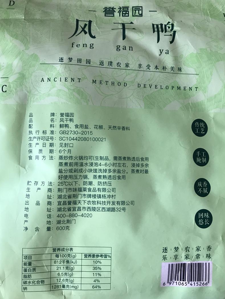 【严选】誉福园风干鸭腊鸭整只约600g*2只(厂家直发)