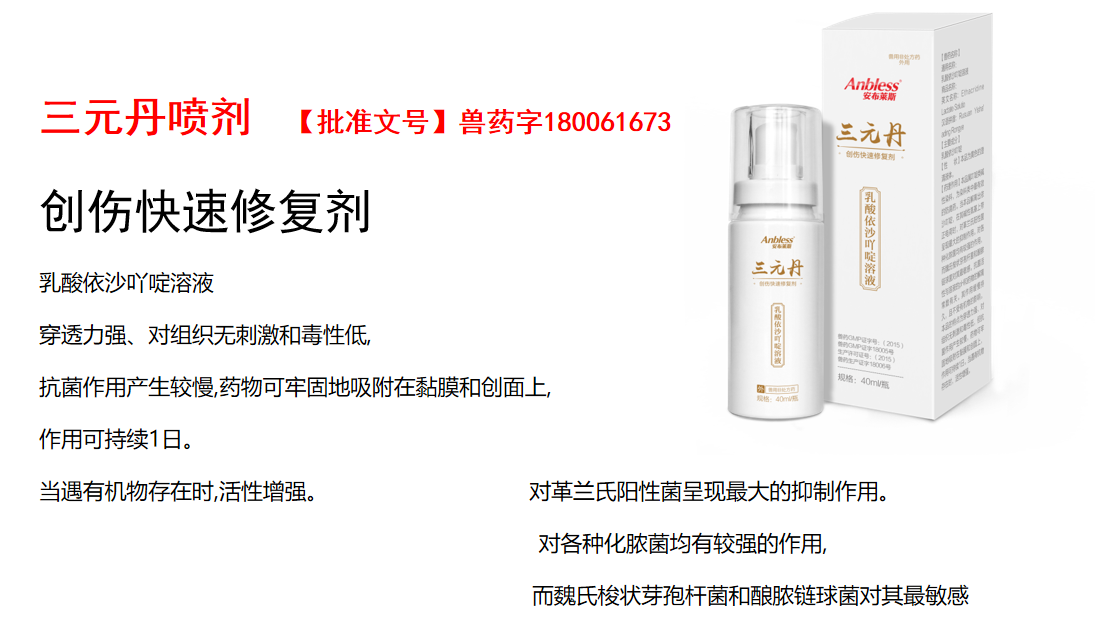 安布莱斯-佰宠安喷剂 40ml/瓶,2027年10月14号到期,1瓶。 对金黄色葡萄球菌、大肠杆菌、白色念珠菌有较强的抑菌作用。对各种创伤感染有较强的抑菌作用