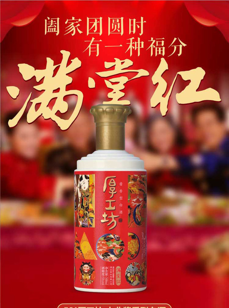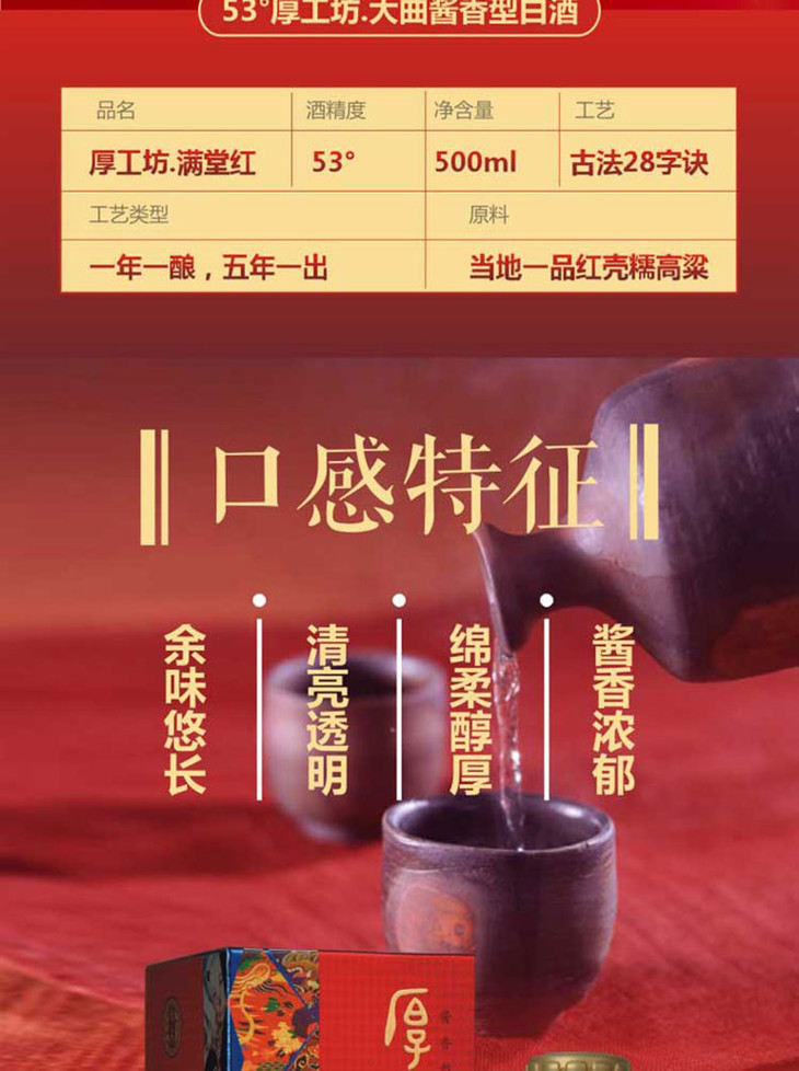 厚工坊满堂红酱香型白酒53度500ml/1瓶/2瓶/6瓶整箱