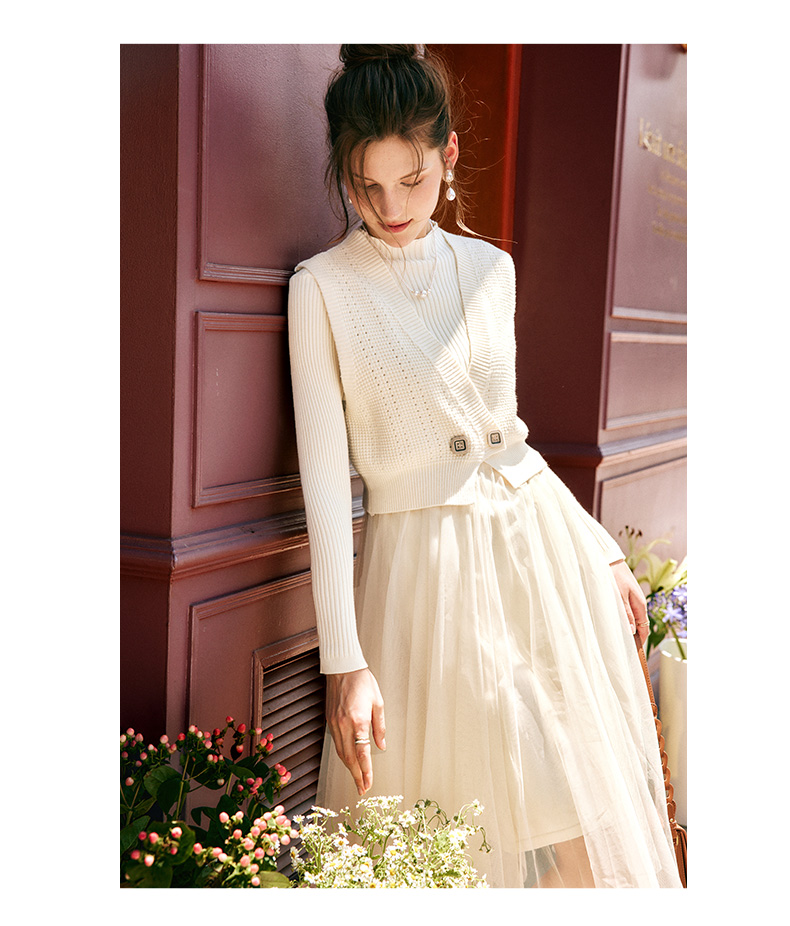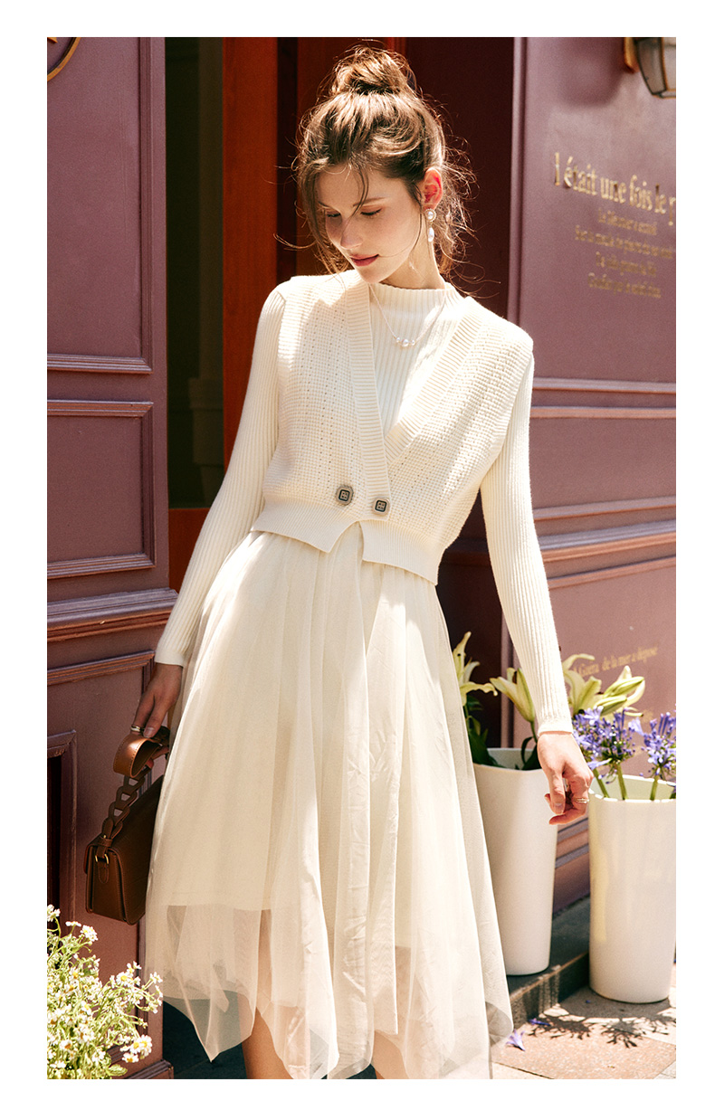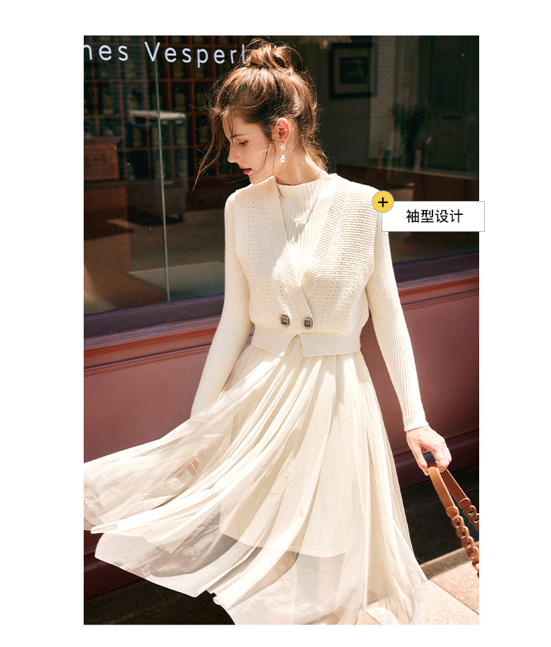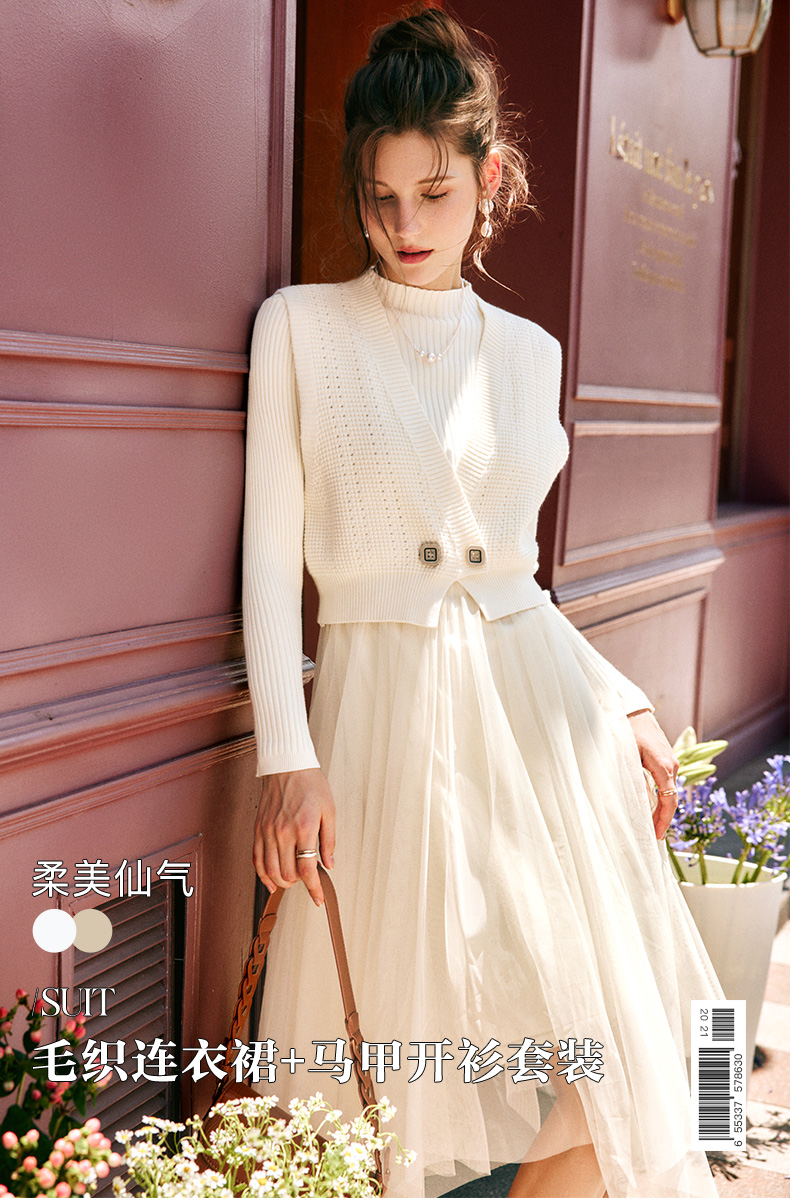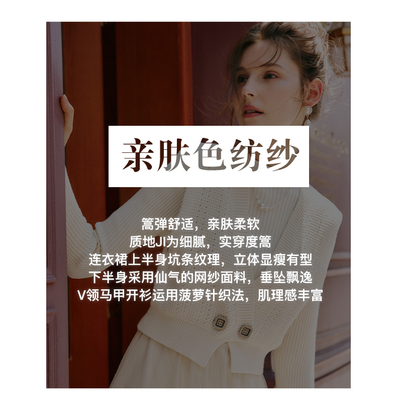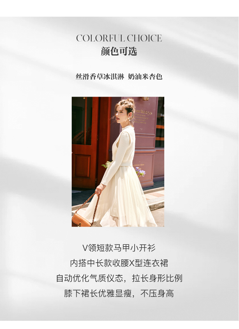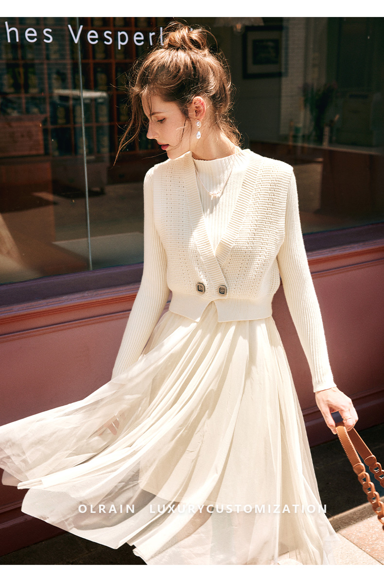 OLrain欧芮儿法式连衣裙时尚套装女秋冬2022年新款马甲开衫两件套