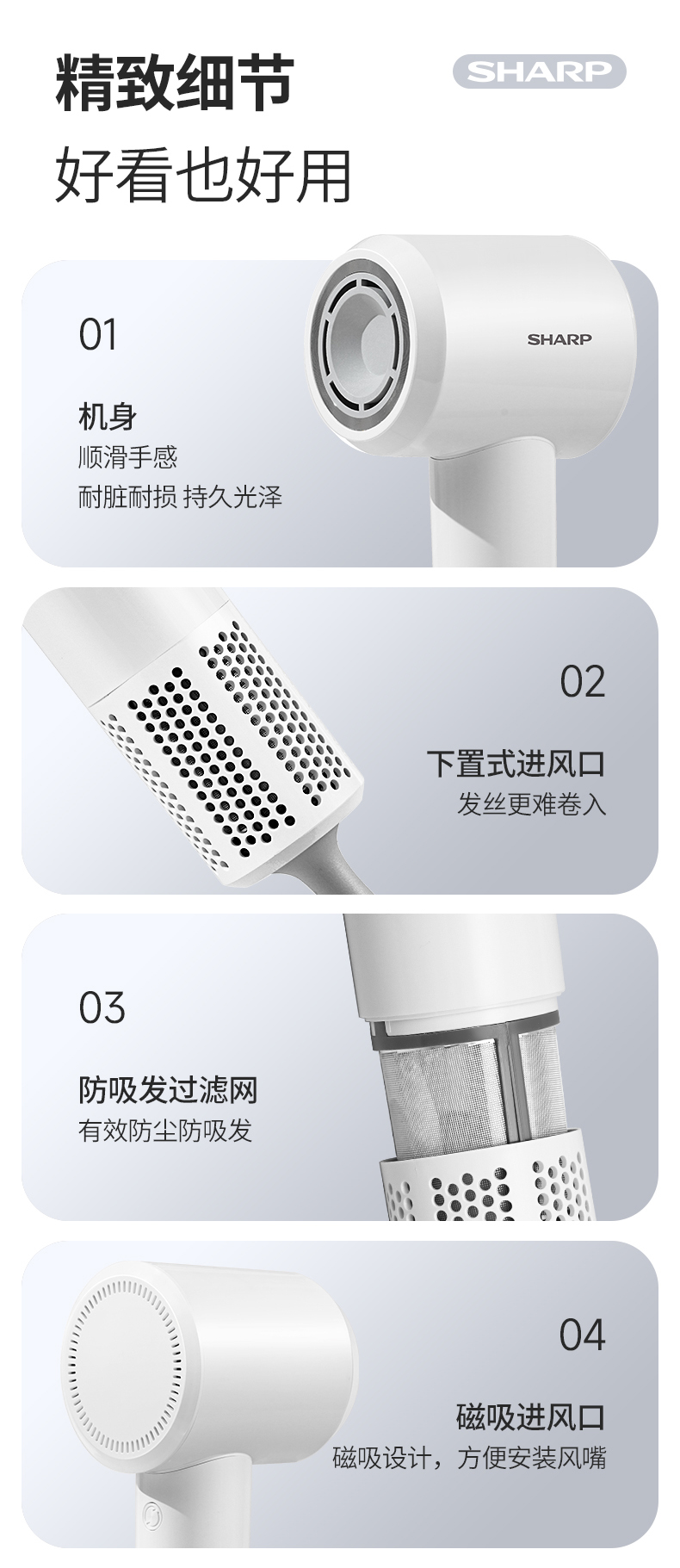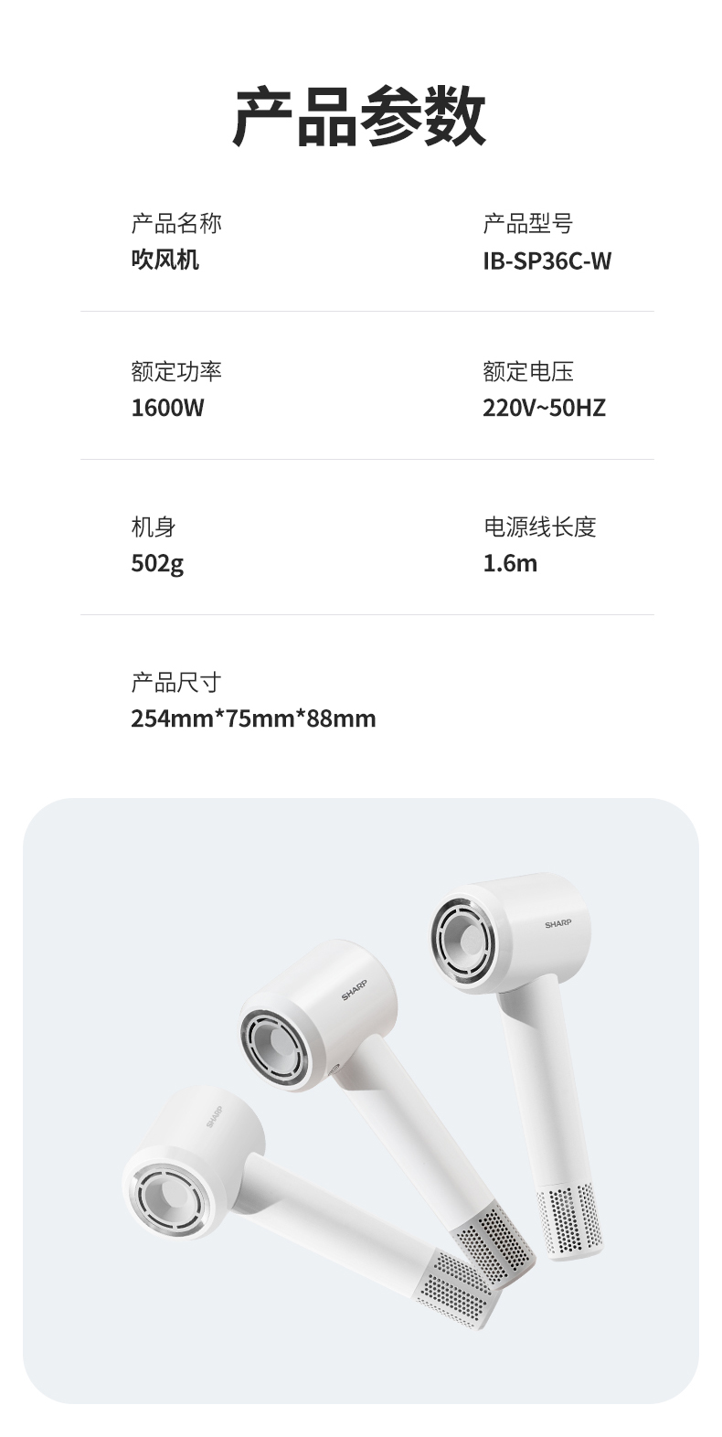 夏普感应干手机等离子高速吹风机IB-SP36C-C(白色)-S
