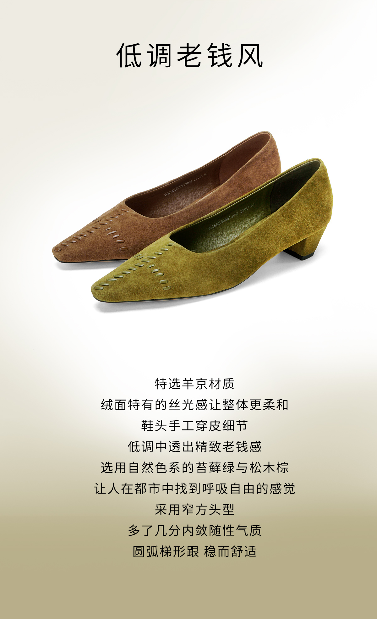 Westory2026年春季羊京小方头低跟老钱风单鞋休闲通勤百搭浅口鞋W26AE50991