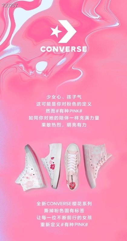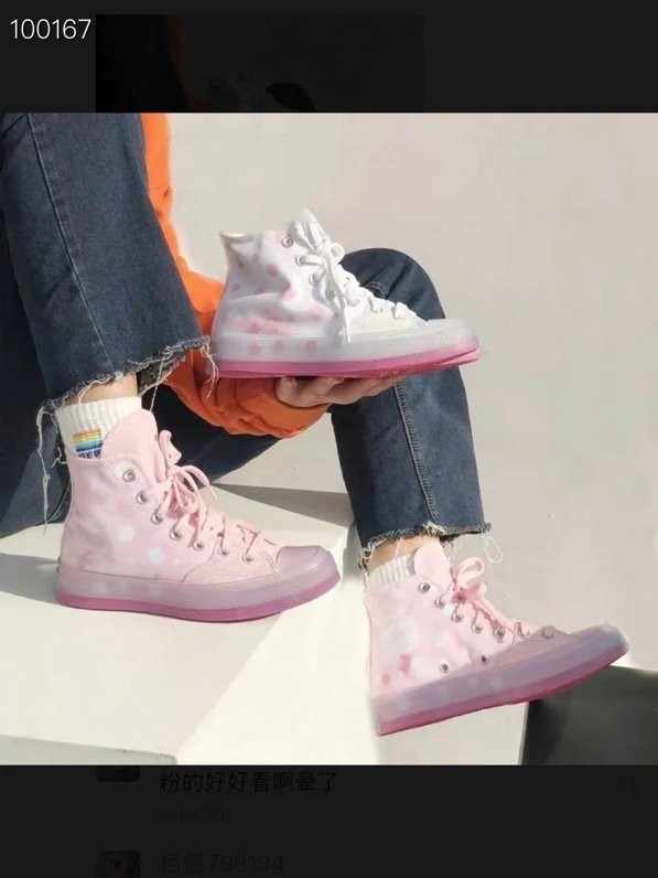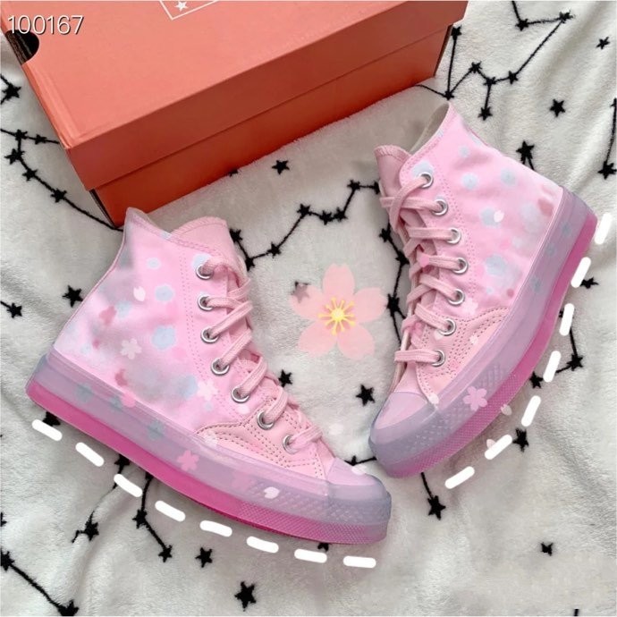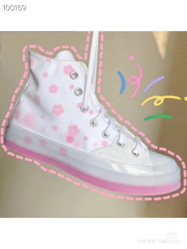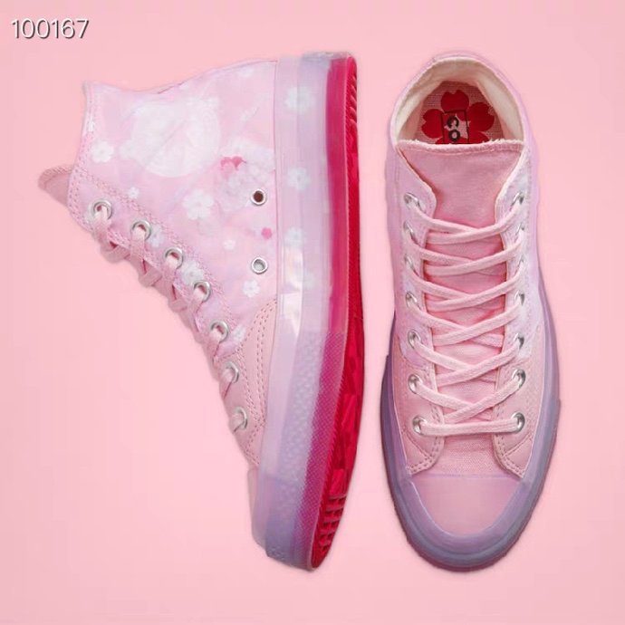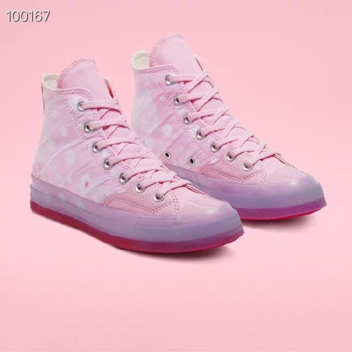 原装原盒#原厂手工冷硫工艺#正确硅蓝PU中底#遵循“原滋原味”处理道序 匡威Converse 1970S高帮 樱花粉色新款女款 透明果冻底166752C尺码:35-39.5 粉色和白色樱花可选