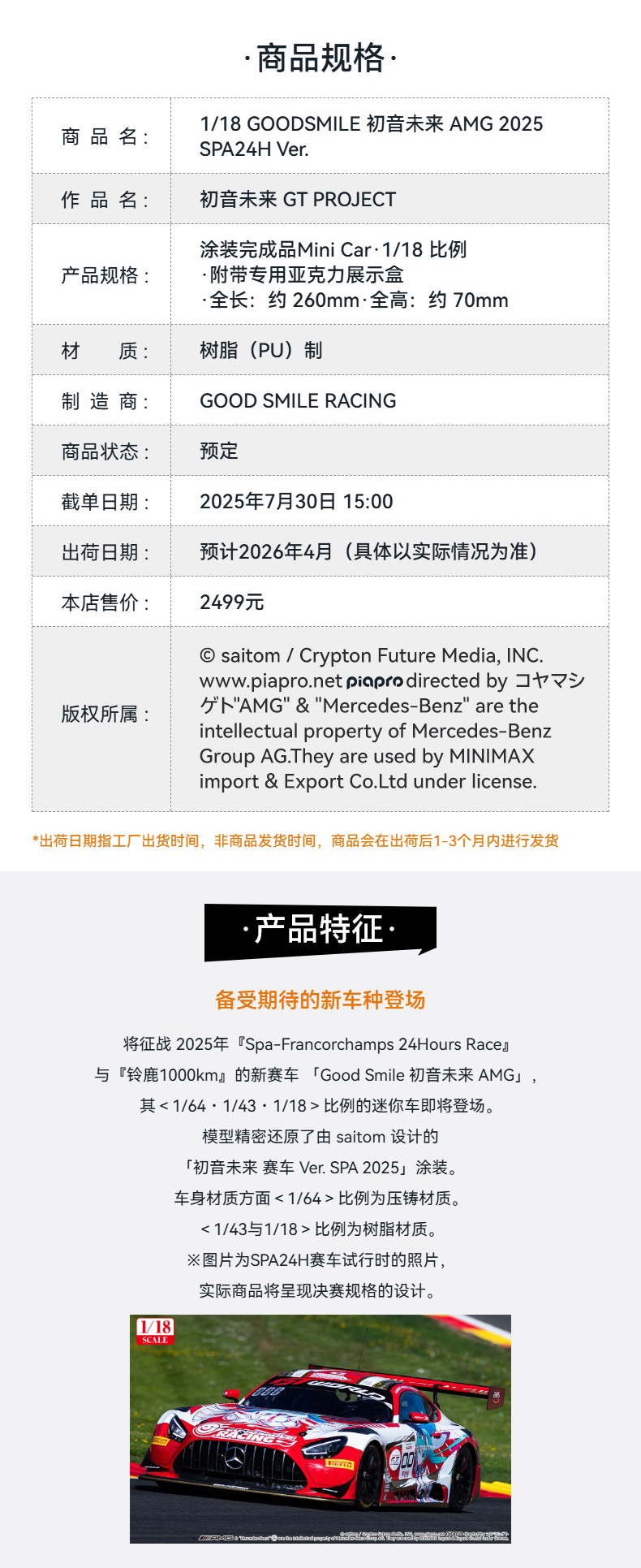 【GSC补款】1/18 GOODSMILE 初音未来 AMG 2025 SPA24H Ver.