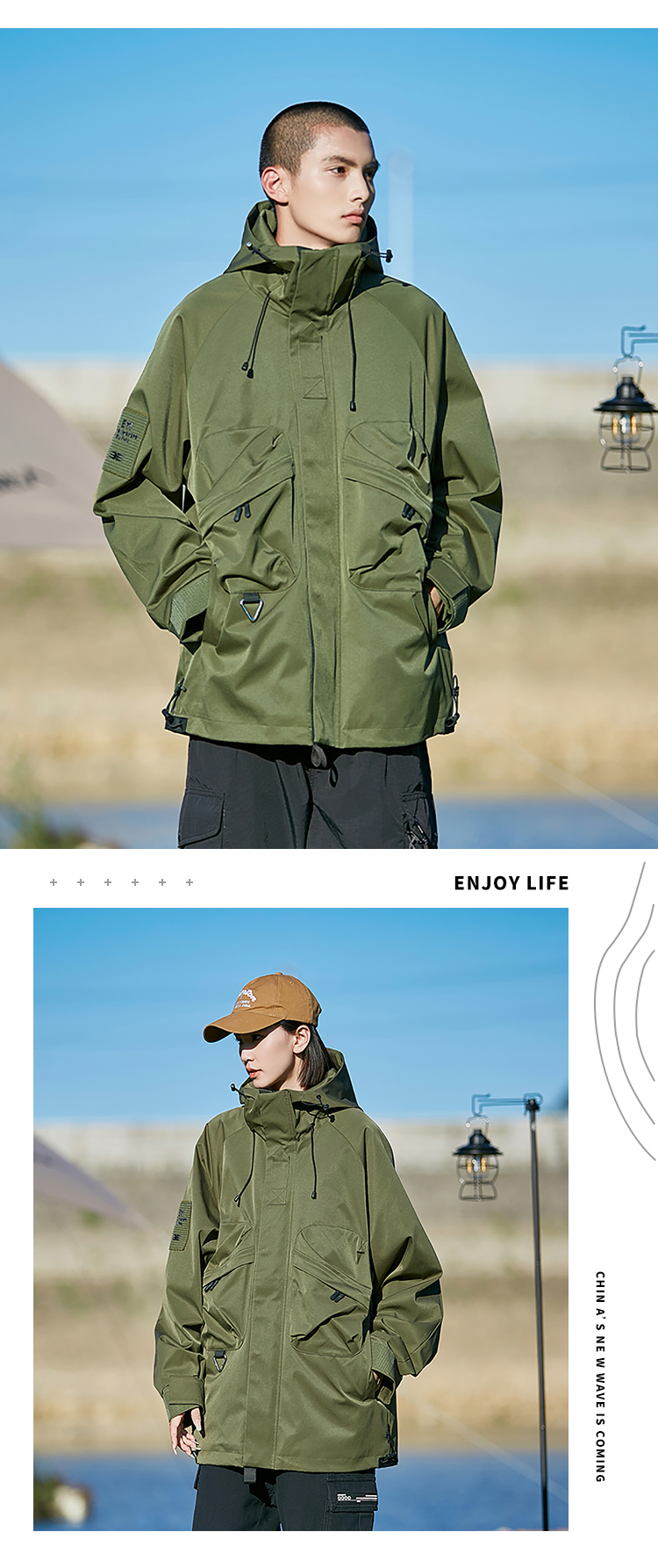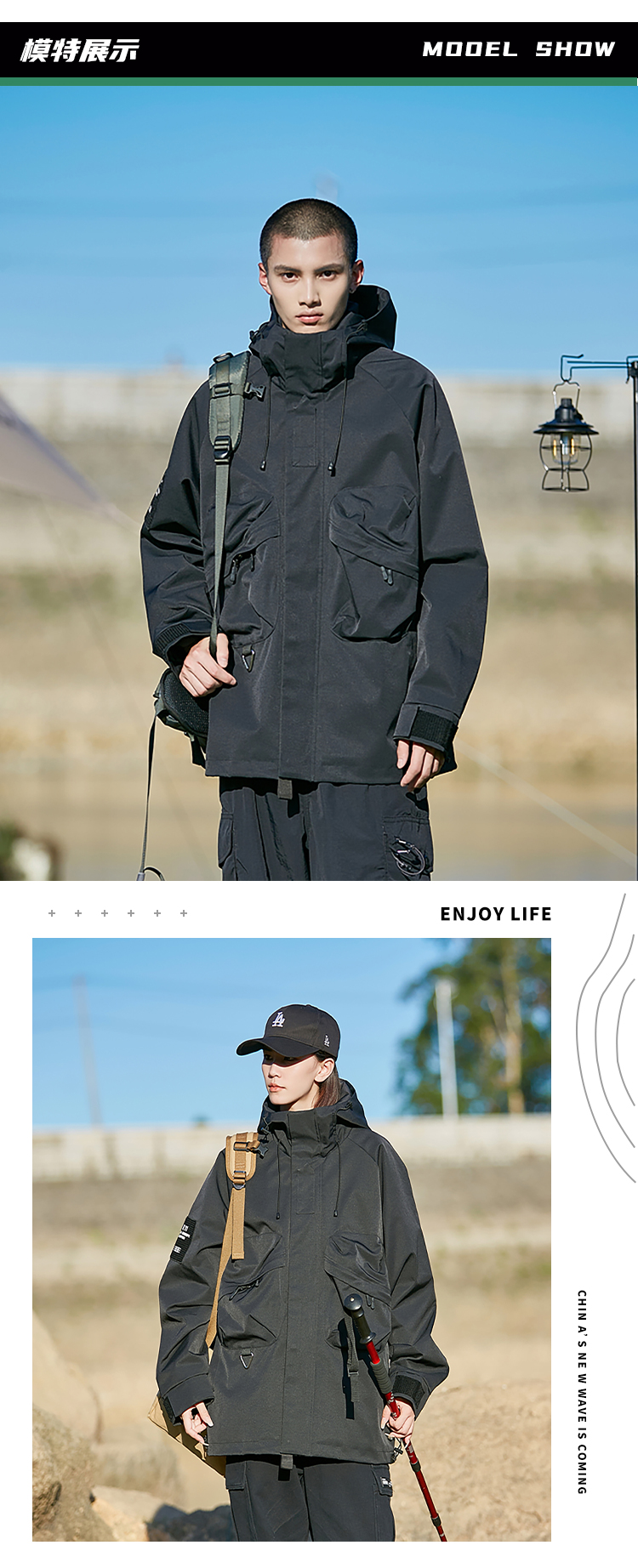 LUCKY DEER秋冬新潮情侣登山宽松百搭休闲男女旅行风衣夹克