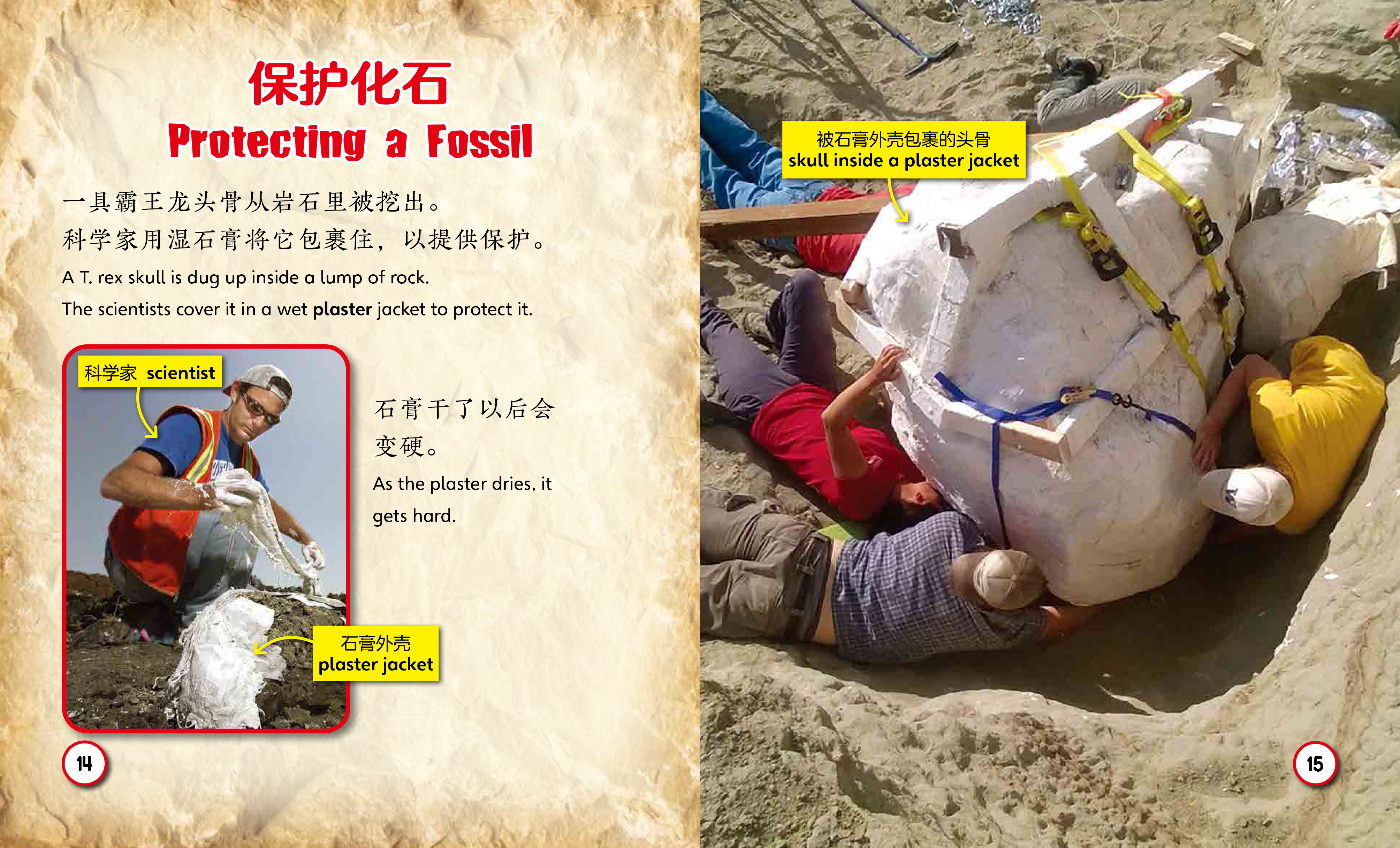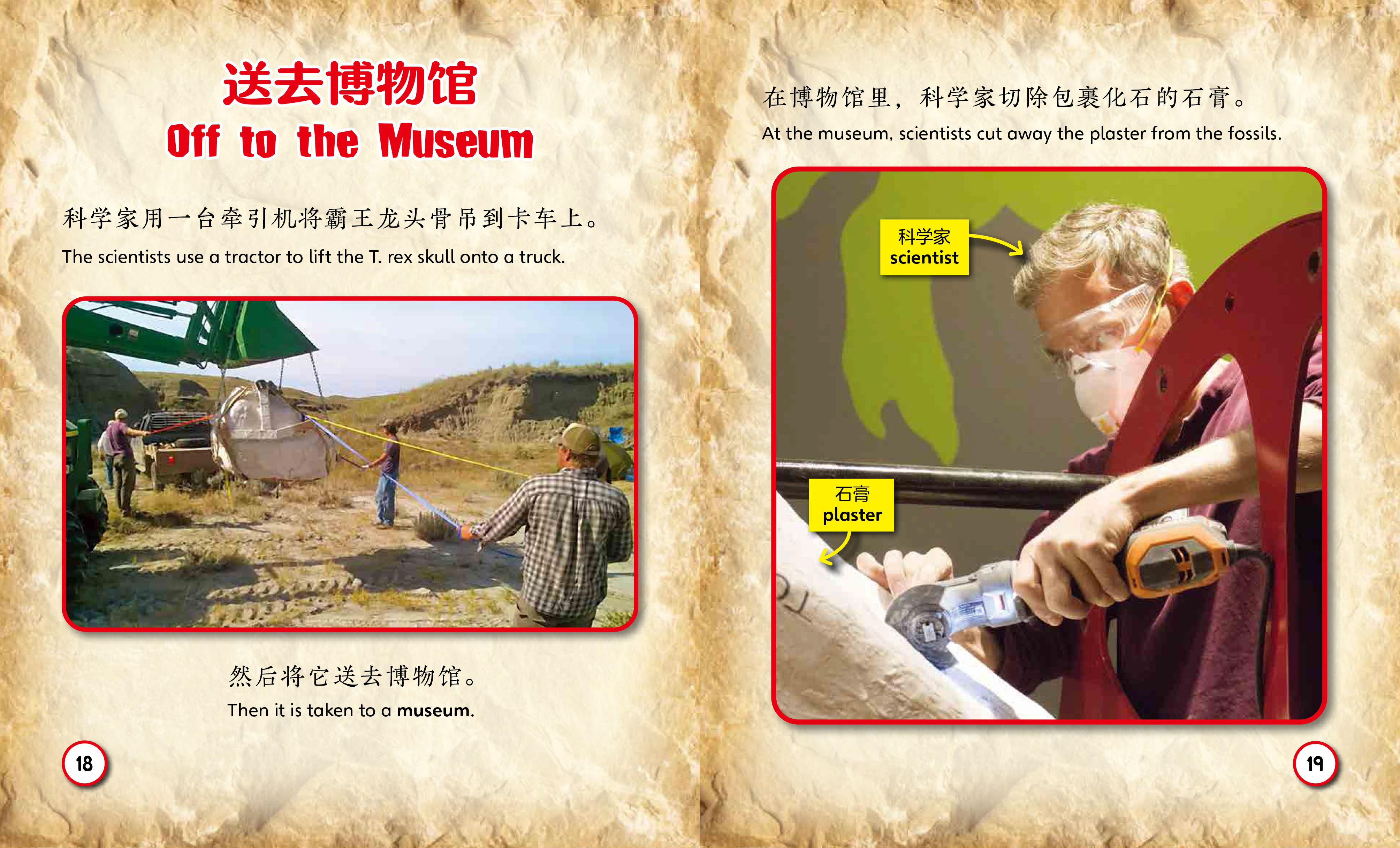 《恐龙俱乐部:汉英对照》共10册。简洁生动的文字,让孩子在轻松愉快的氛围中学习恐龙的形态特征和生存环境等知识。大量高清的恐龙化石和科考照片,真实记录了恐龙的形态特征和科学家们研究恐龙、挖掘并保护恐龙化石的场景,为孩子们提供了直观、生动的视觉体验。全书中英双语,并附赠英文朗读音频和《恐龙必备词汇》手册。手册收录了书中所有的重点词汇,并提供详细中英文对照释义,帮助孩子进一步巩固和拓展词汇量。每本书末尾,还有恐龙知识小测验。这是对孩子阅读成果的一次小考验。通过回答书末的问题,孩子可以回顾书本内容,巩固所学知识。