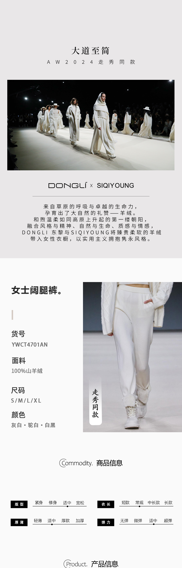 东黎 • 精纺山羊绒 女士阔腿裤 4701