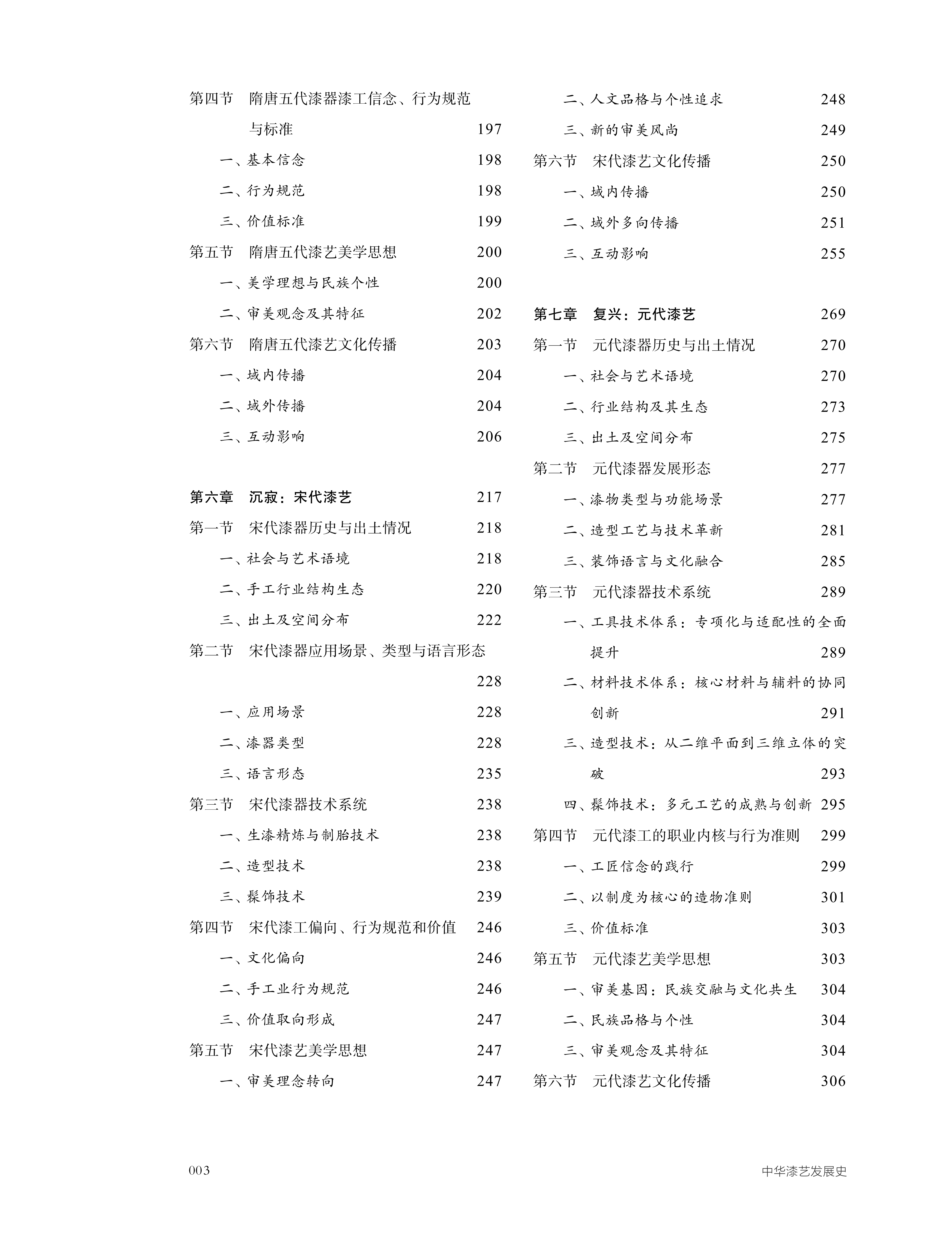 该书以通史写作方法为支撑,立足整体研究思路,在漆艺艺术嬗变的延续性与文化整体性中,分九个章节逐层阐释其发展、繁荣、极盛至消隐衰微的完整轨迹与进化规律,为中华传统工艺的保护传承、学术研究及当代创新发展提供了重要的理论支撑与实践参考。