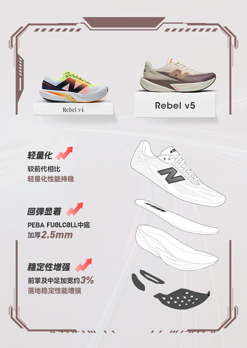NEW BALANCE/NB Rebel V5 男女款专业轻量缓震竞速运动跑步鞋