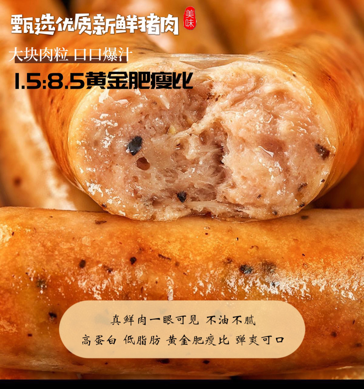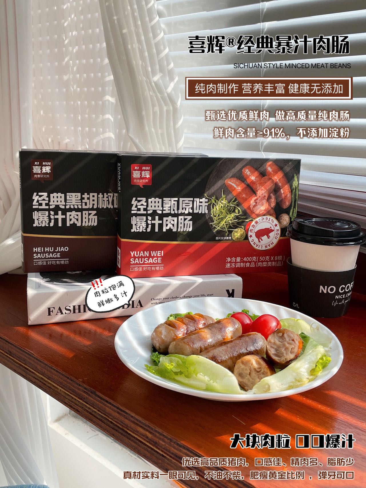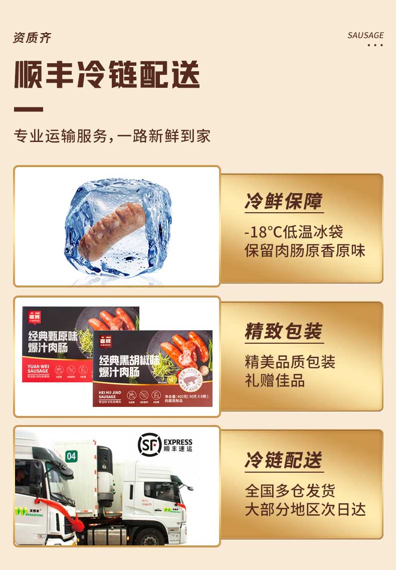 喜辉|经典甄选原味/黑胡椒味爆汁肉肠3盒装