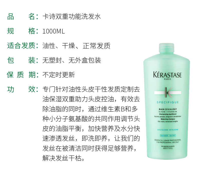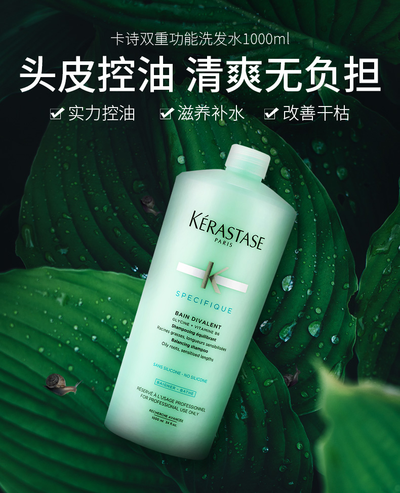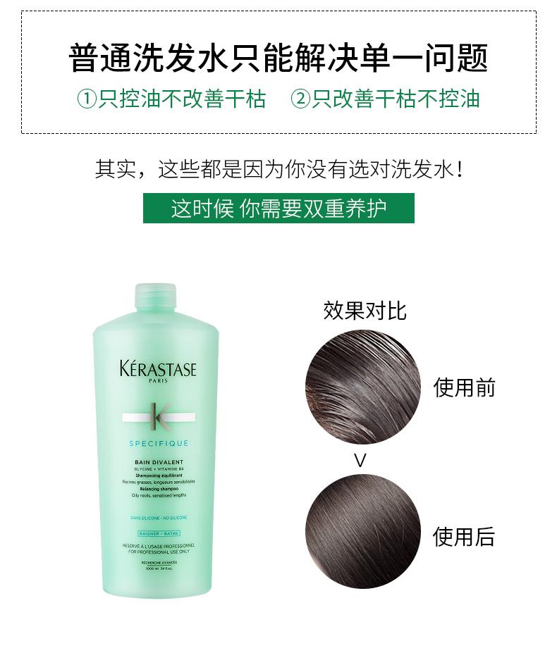 卡诗油性头皮双重功能洗发水1L/117577 平衡油性头皮和干性头皮清爽控油