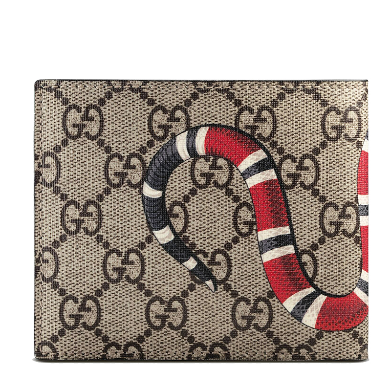 珊瑚蛇被认为是智慧与力量的象征,在亚力山卓·米开理(Alessandro Michele)所设计的系列服饰中,也作为一个标志性的细节出现。特别呈现于这款GG Supreme帆布双折零钱包。