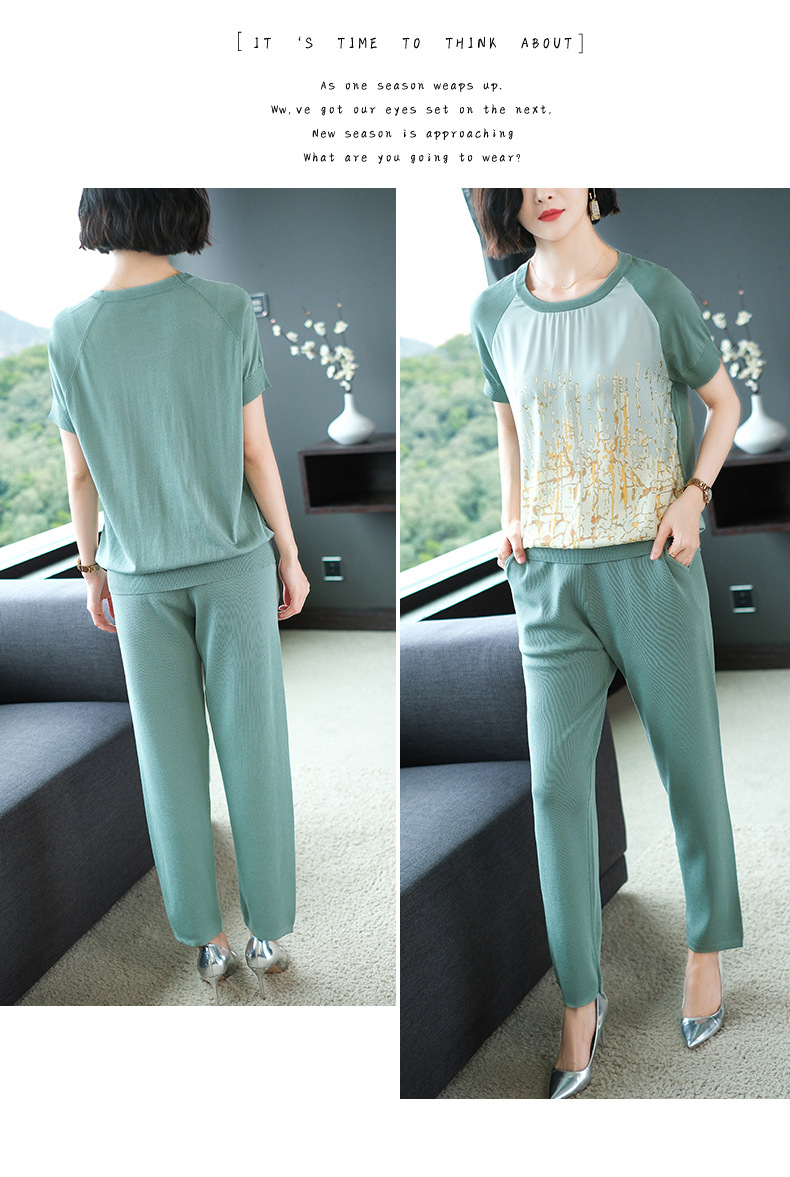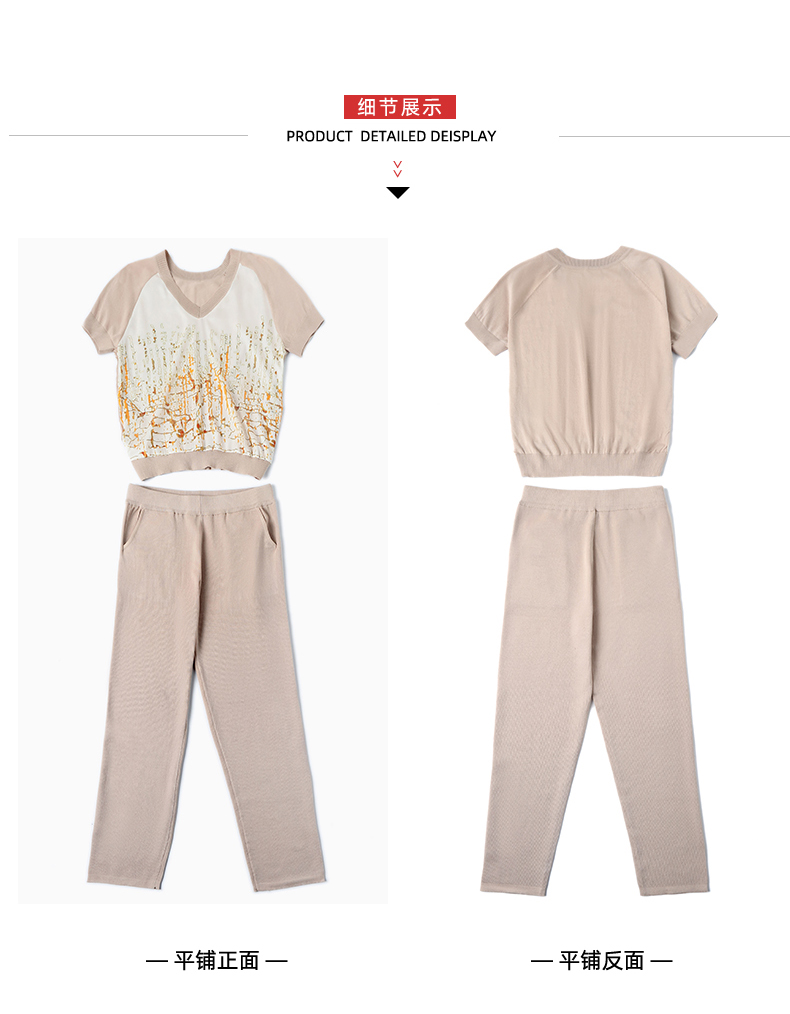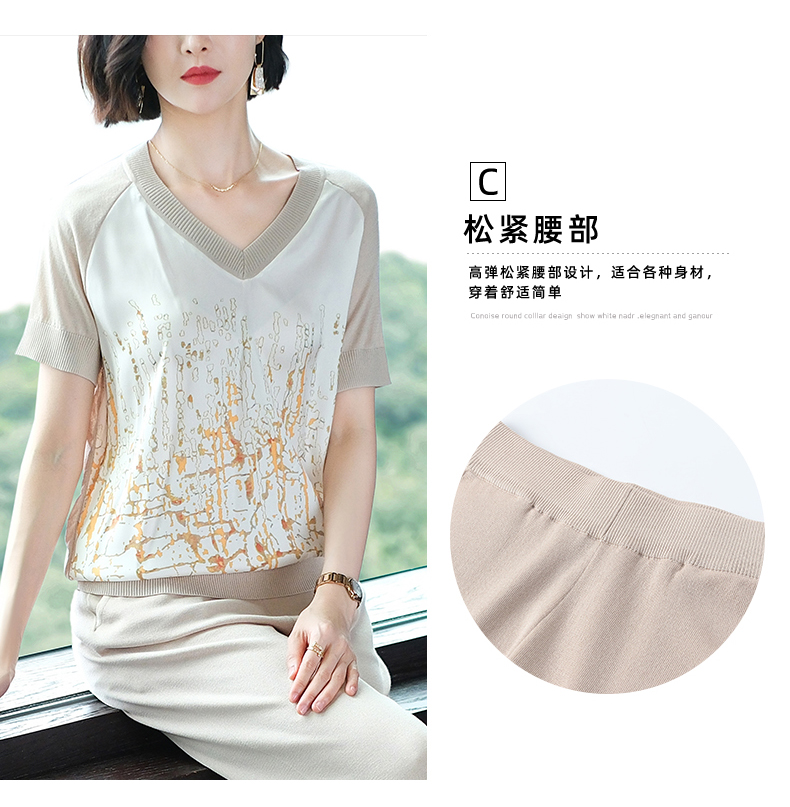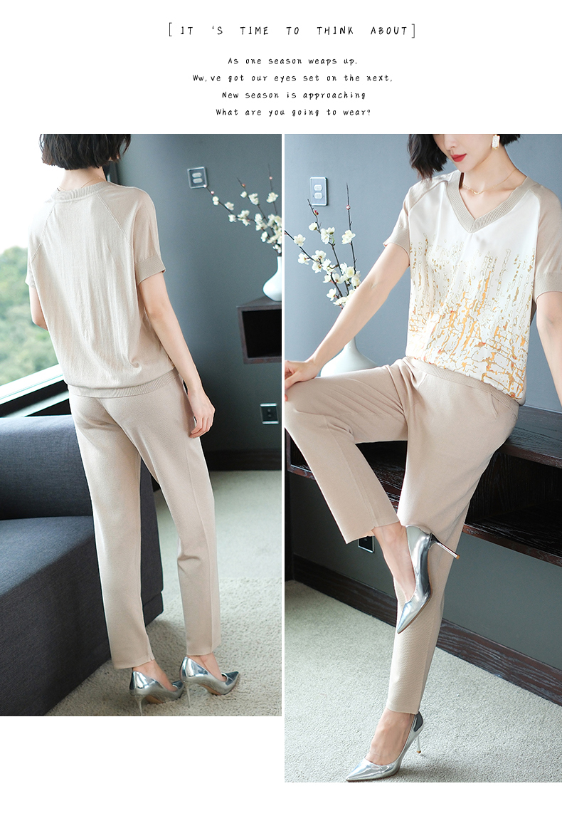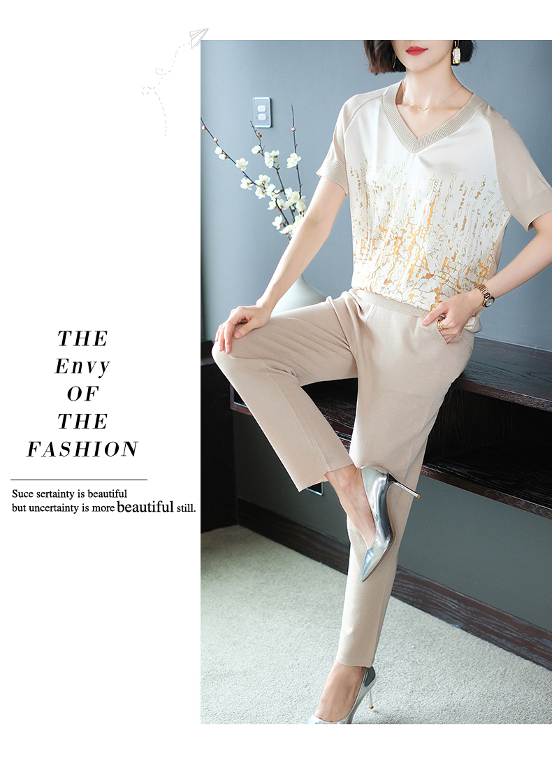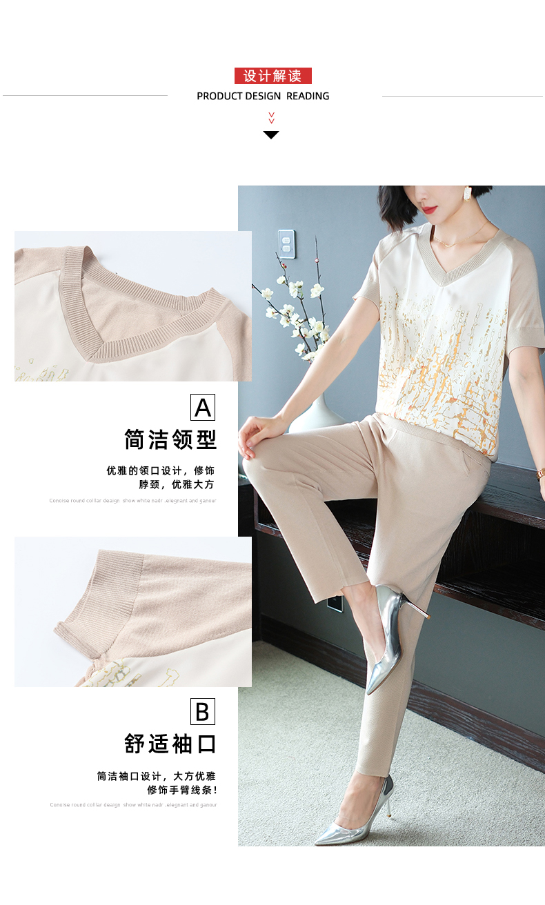 夏季新款,短袖V领冰丝休闲薄款运动套装女士宽松t恤洋气妈妈两件套CC-10-1696