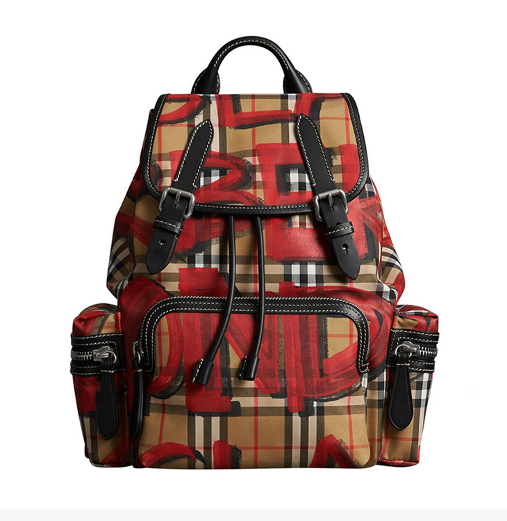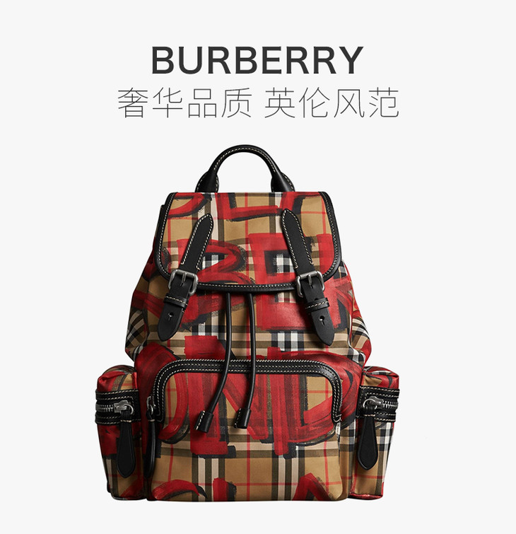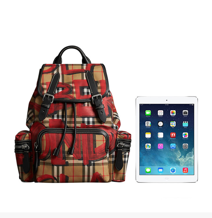 【香港直邮】Burberry 巴宝莉 女士卡其红色涂鸦双肩包 4075836