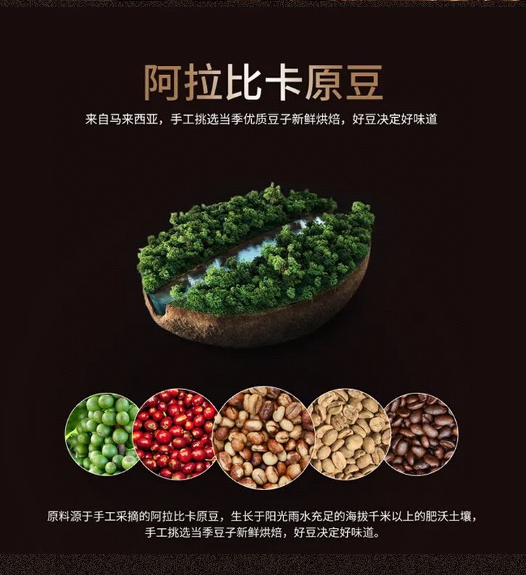 精选马来西亚当季优质咖啡豆 低温烘培馥郁浓香 入口每一滴都让人"口嗜心扉"~