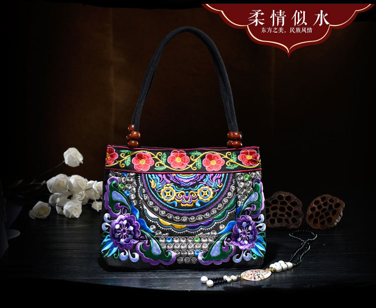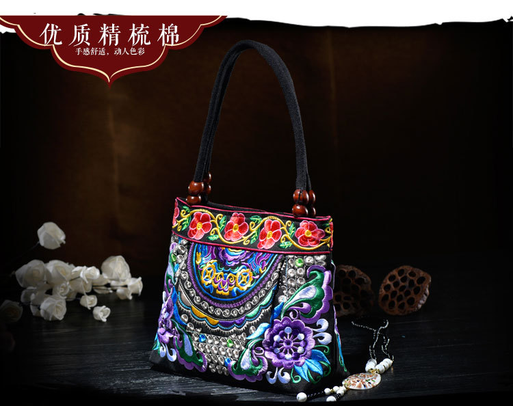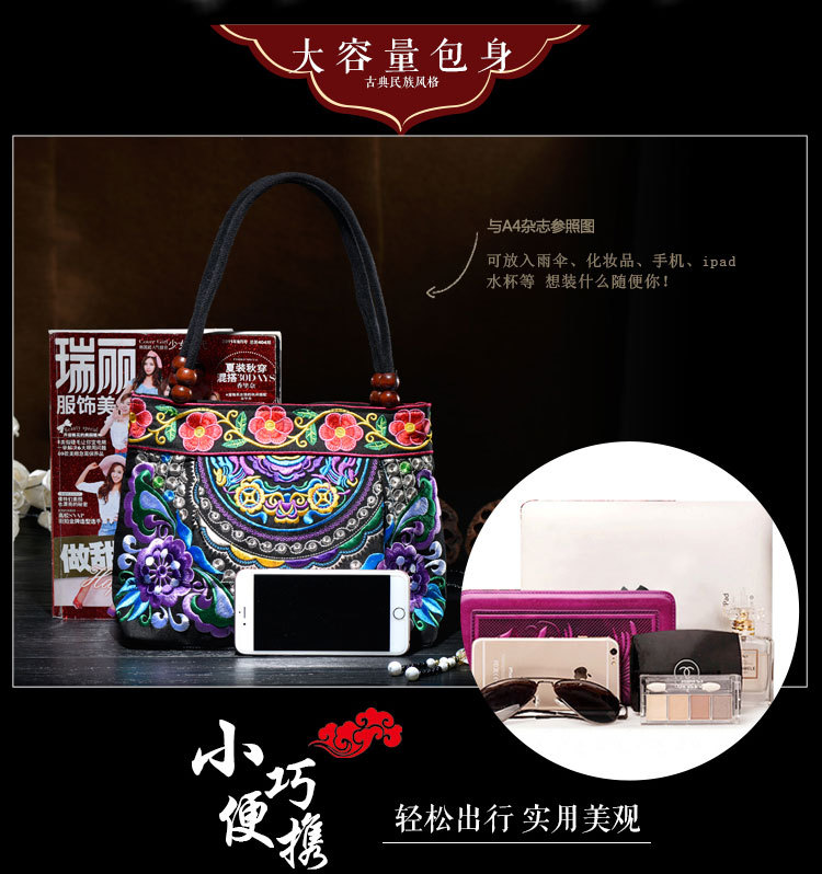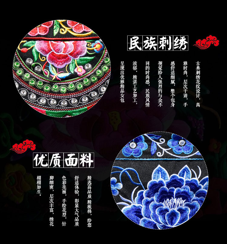 单面绣花,采用极好的绣花线,外料帆布,里料涤纶纱,不掉色,放心购买