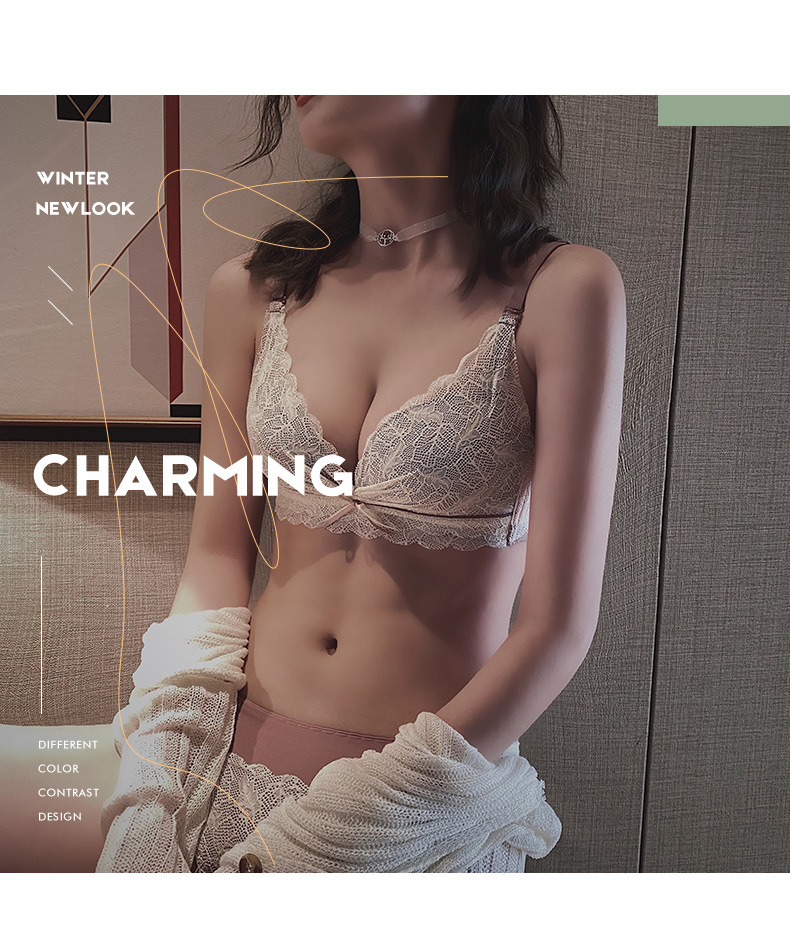文胸套装性感内衣女无钢圈显大小胸聚拢防下垂调整型内衣内裤一套
