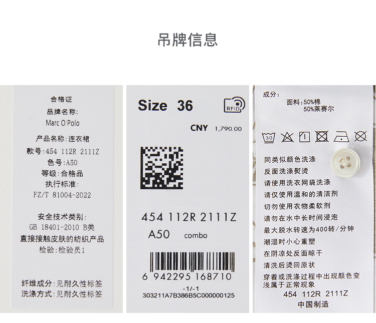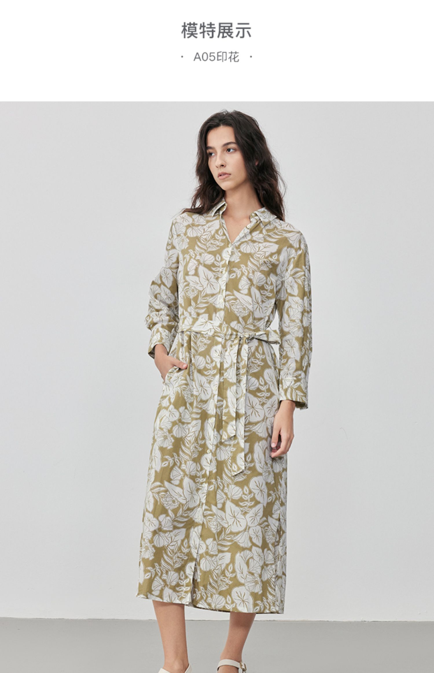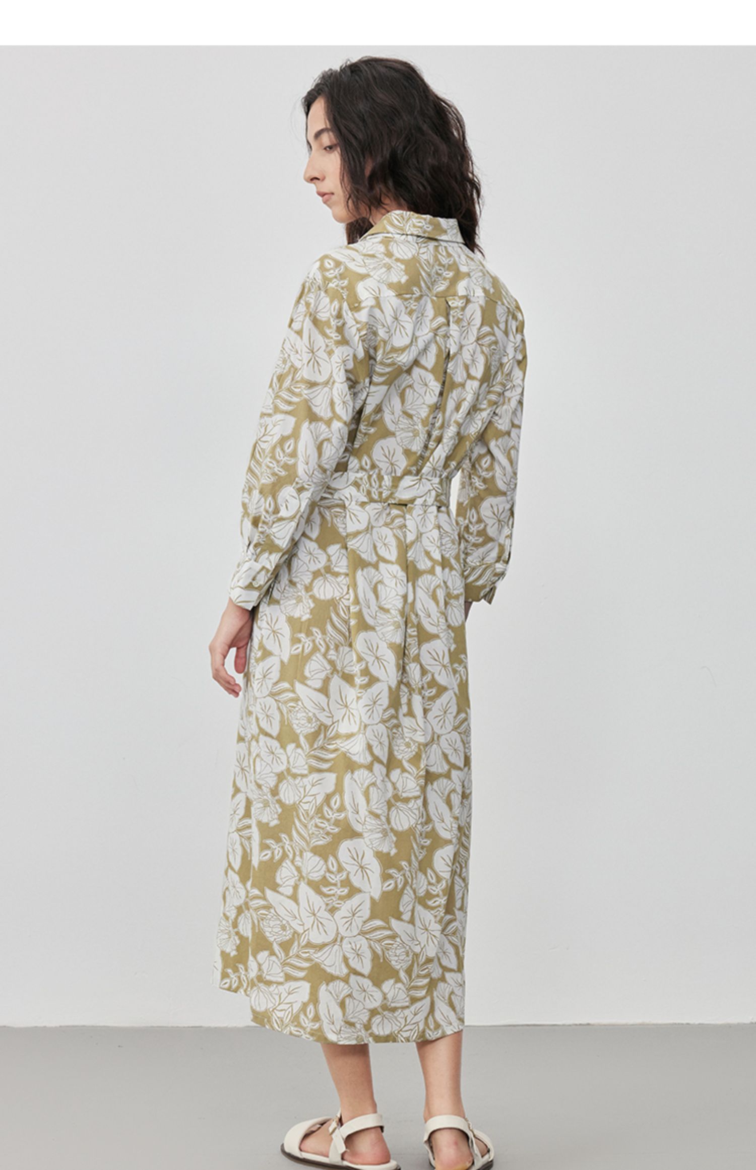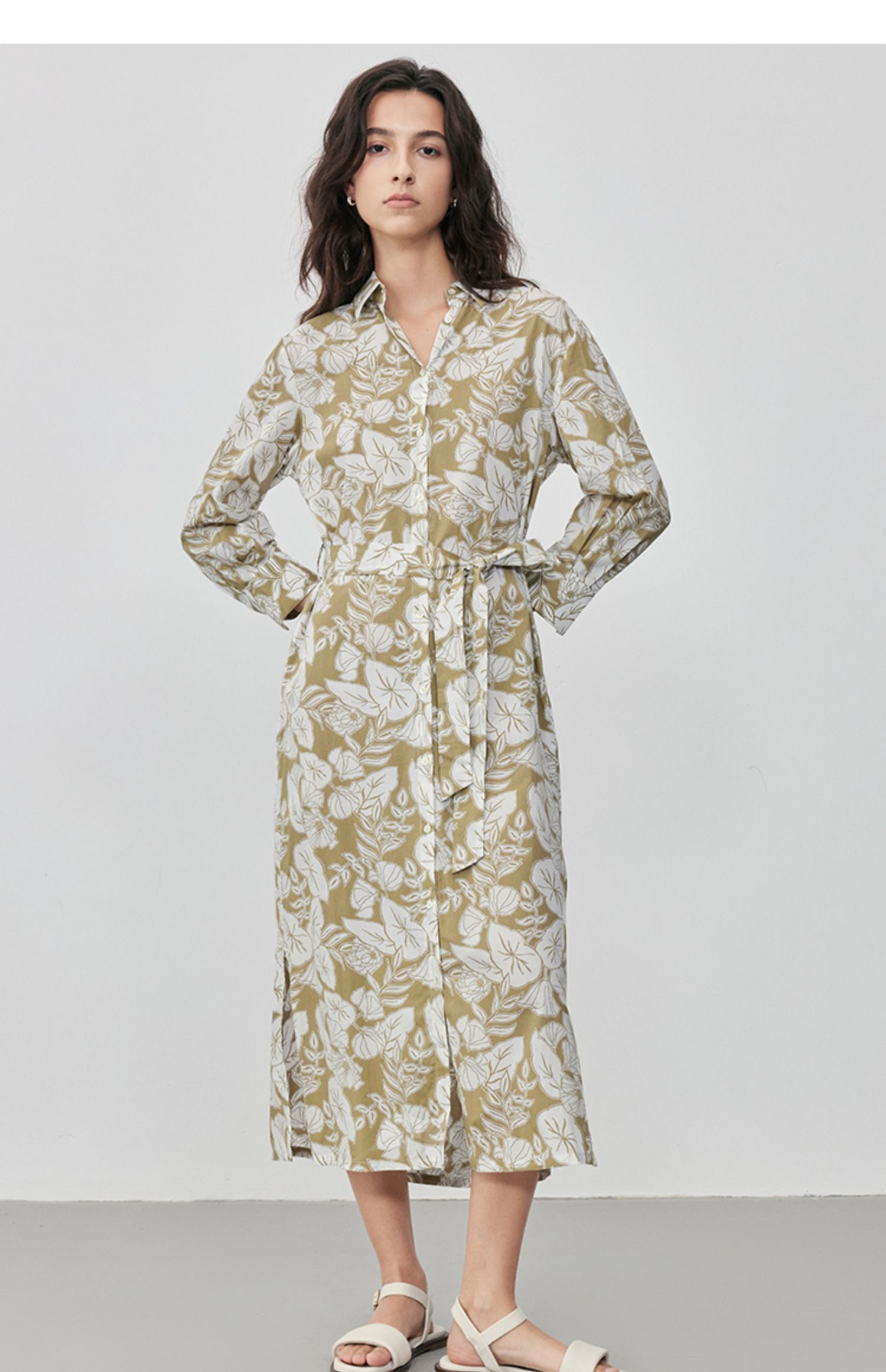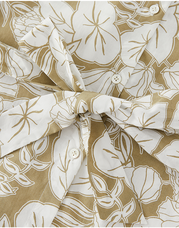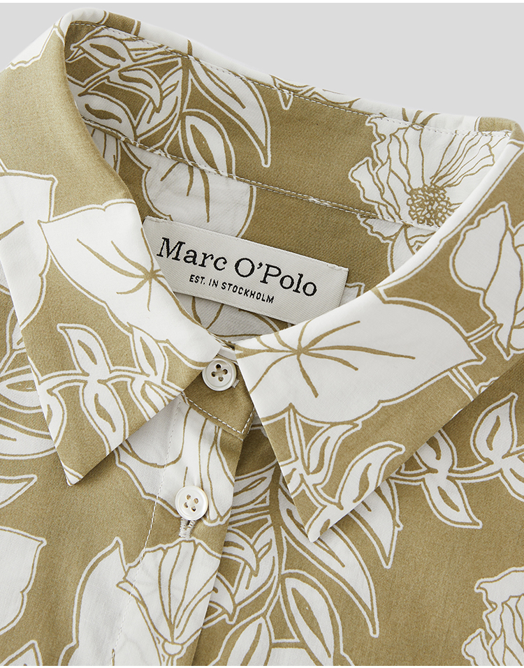 Marc O'Polo/MOP 2025夏季新款树叶纹印花衬衫领束腰长袖连衣裙女