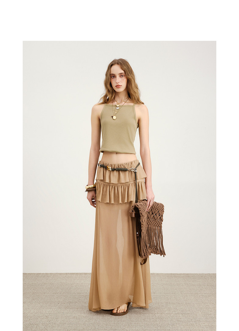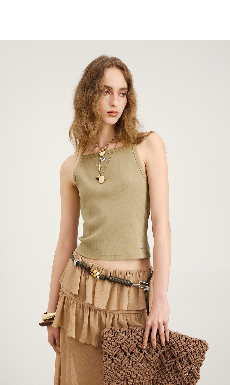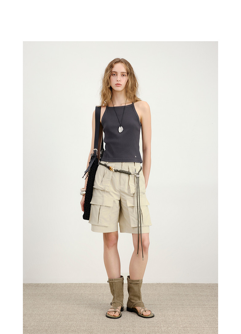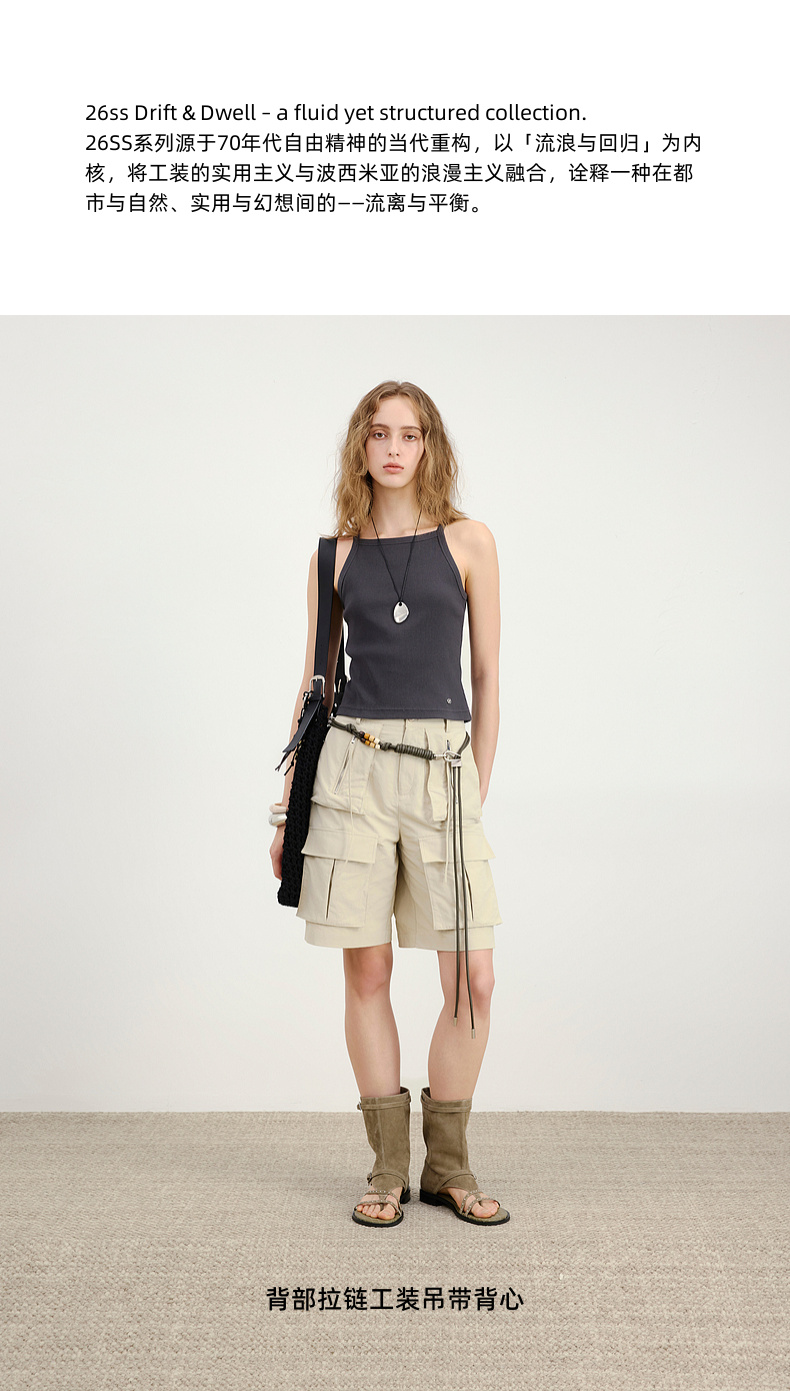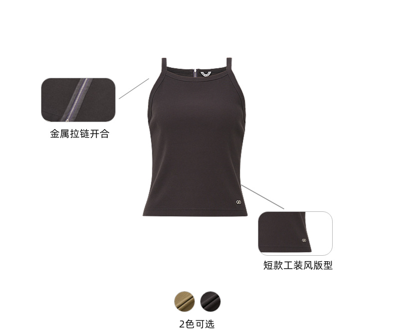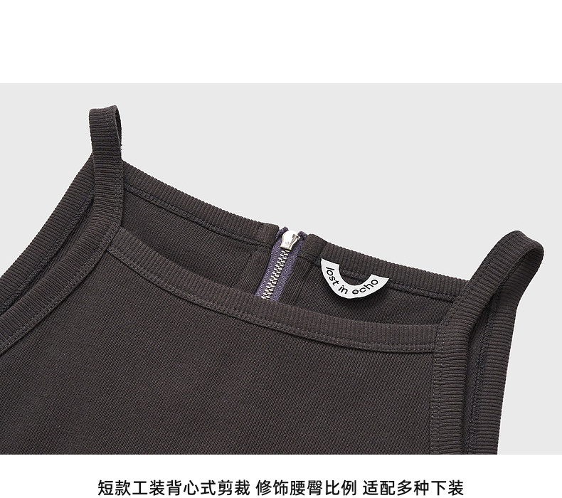 lost in echo2026春夏新款时髦复古背部拉链工装短款修身吊带背心