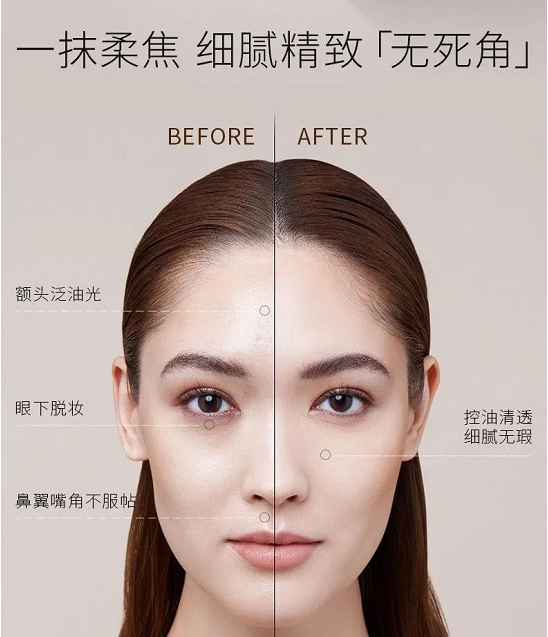 补妆的话随便一拍就很服帖,不结块、不飞粉,对手法和工具完全没要求,刚化妆新手小白特别友好 ,补妆小能手NO.1。