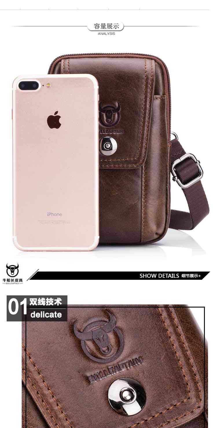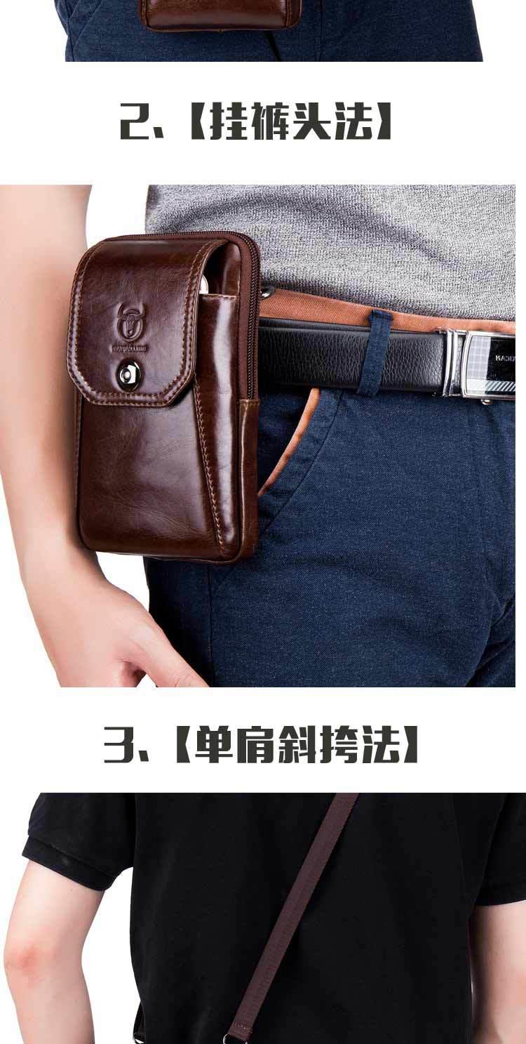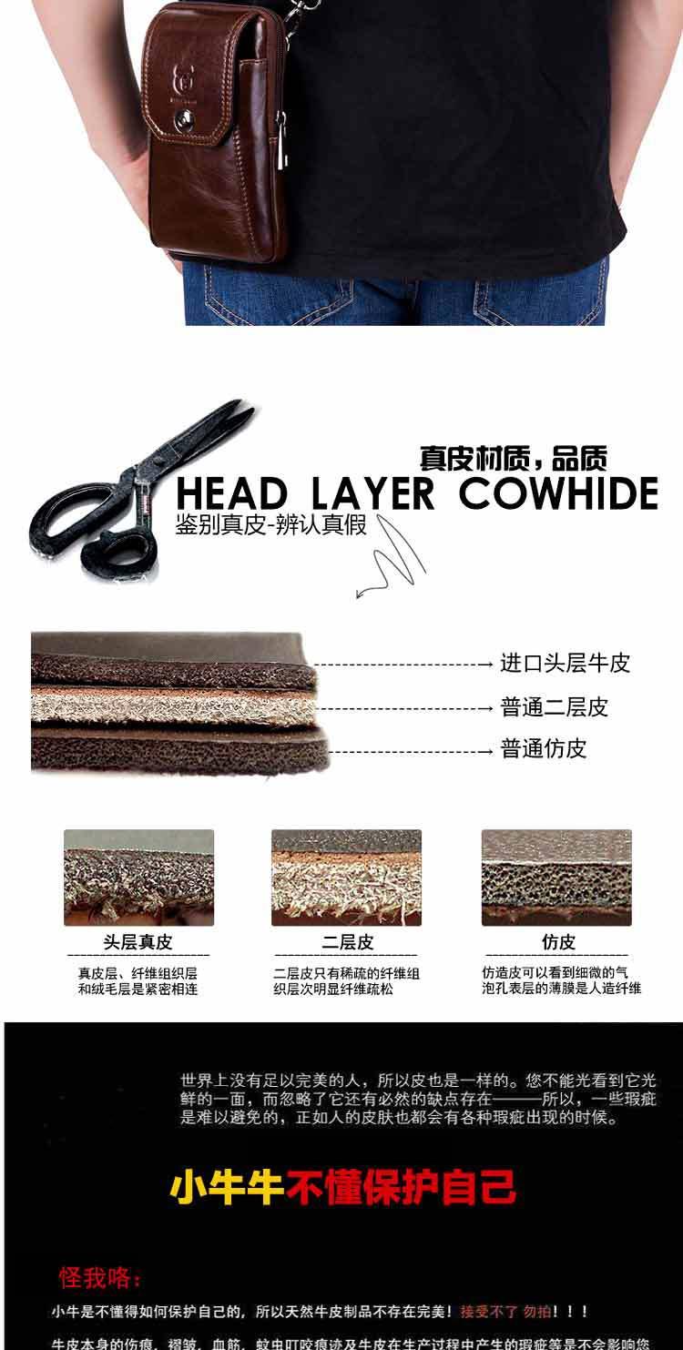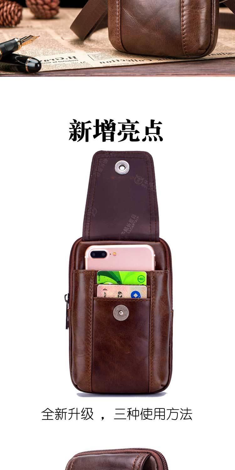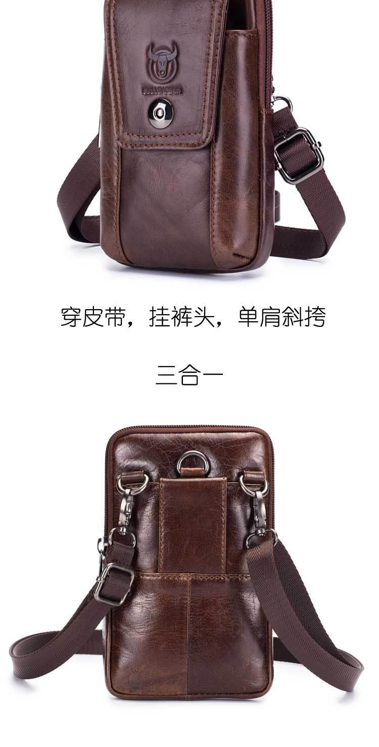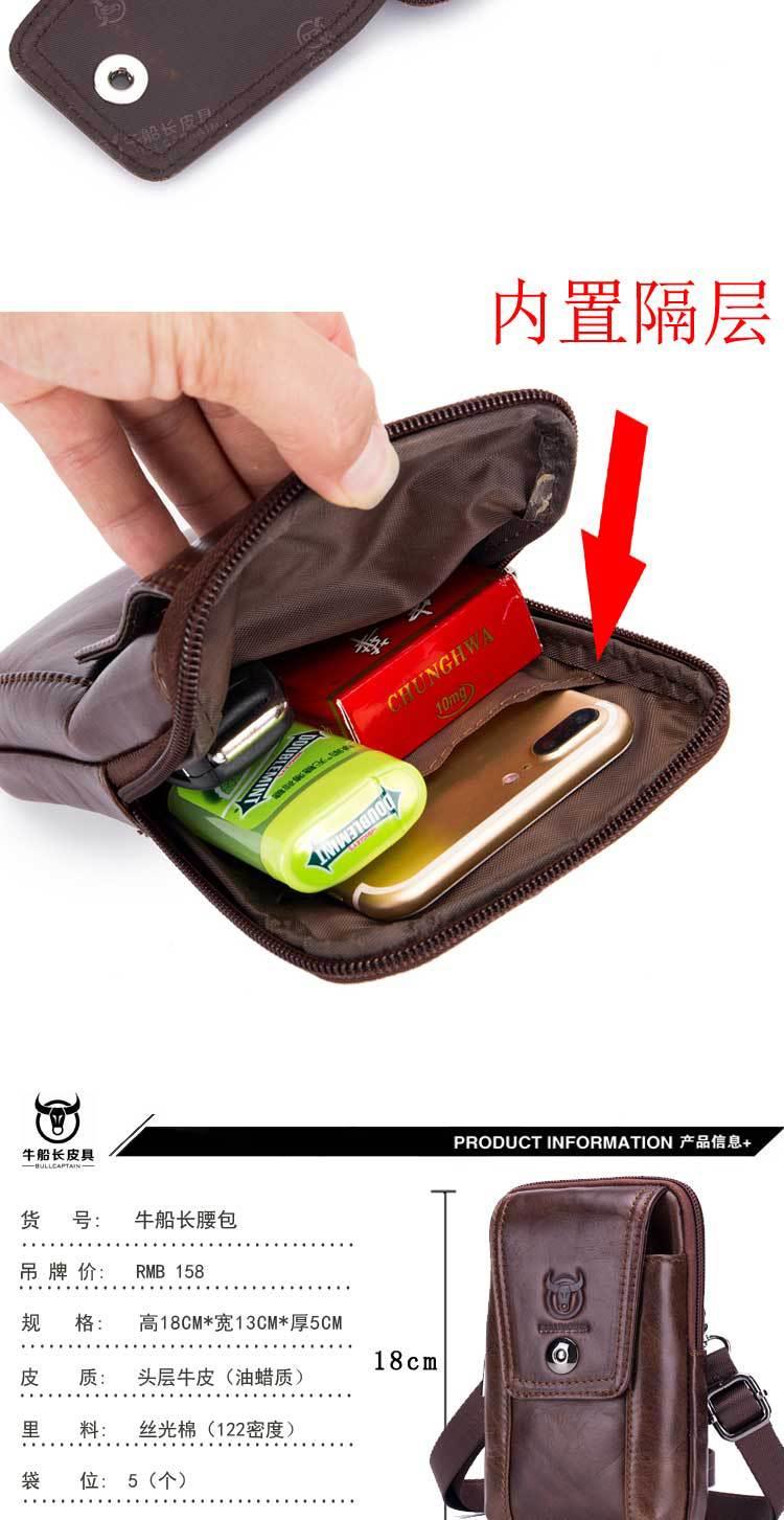 新款牛船长皮具牛皮男士穿皮带包真皮多功能手机单肩斜挎腰包