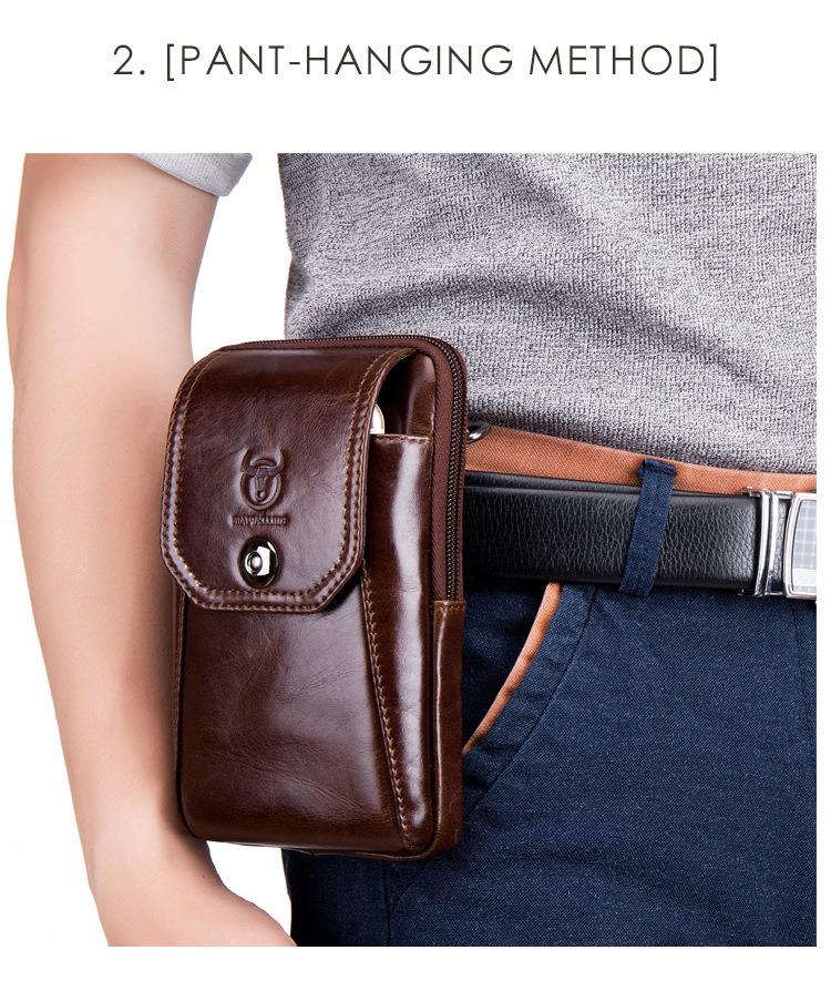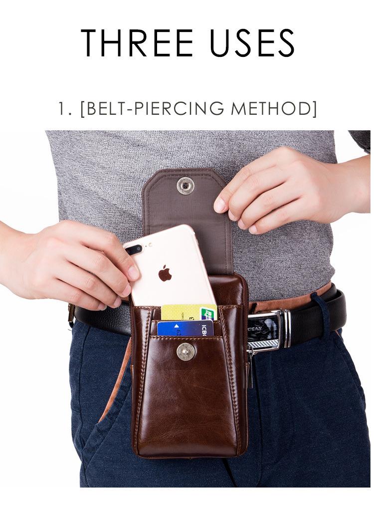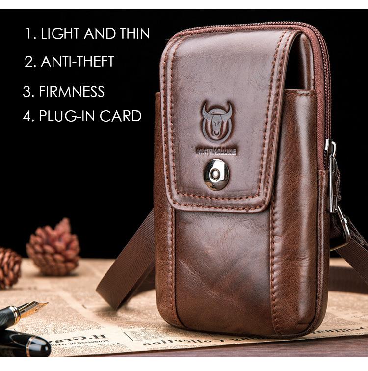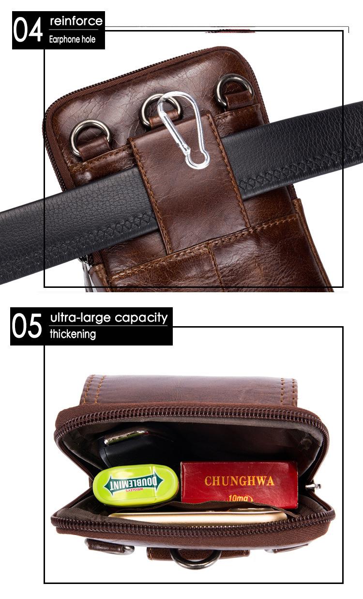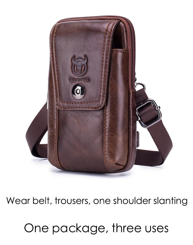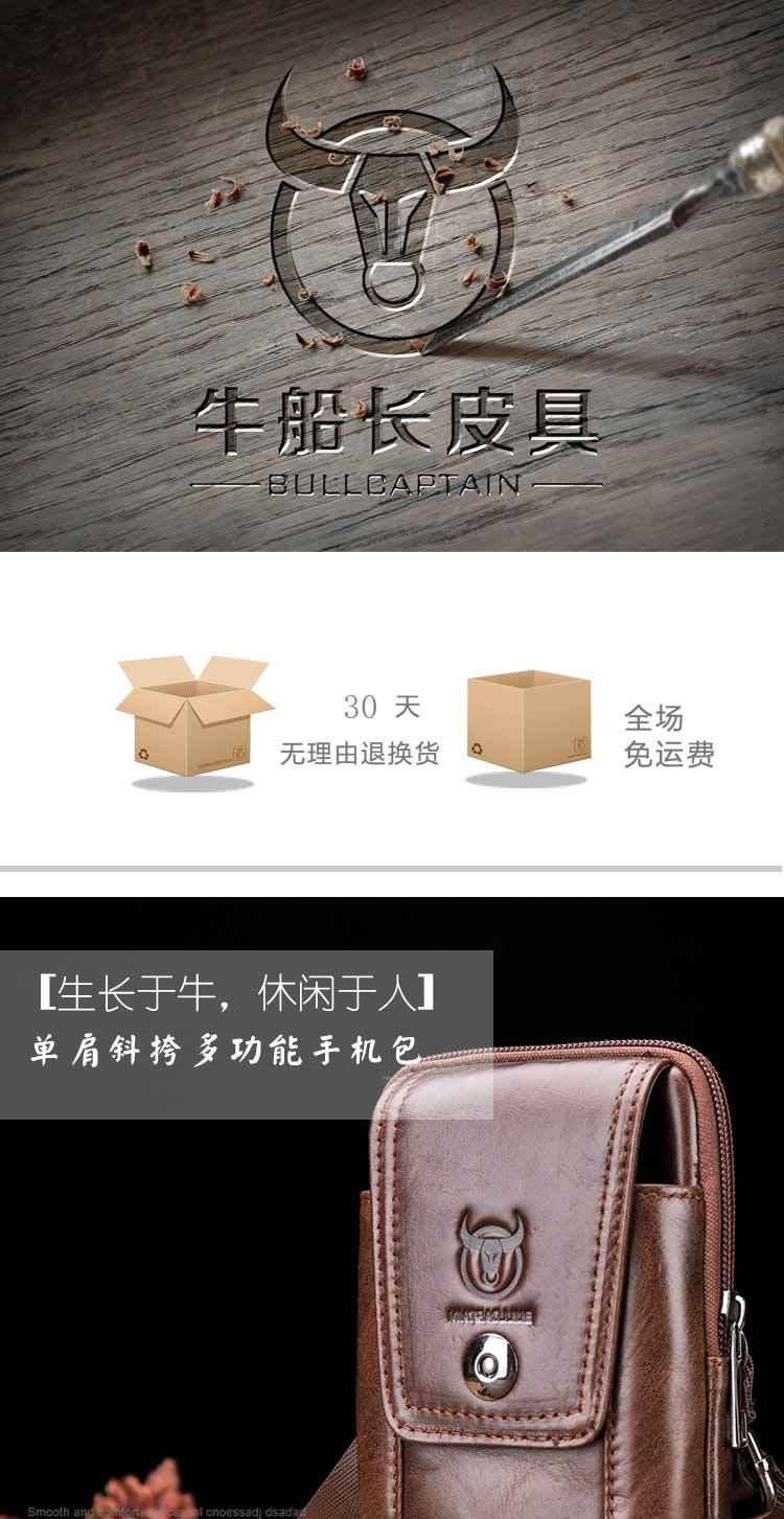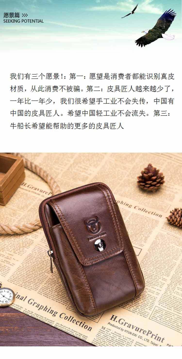 新款牛船长皮具牛皮男士穿皮带包真皮多功能手机单肩斜挎腰包