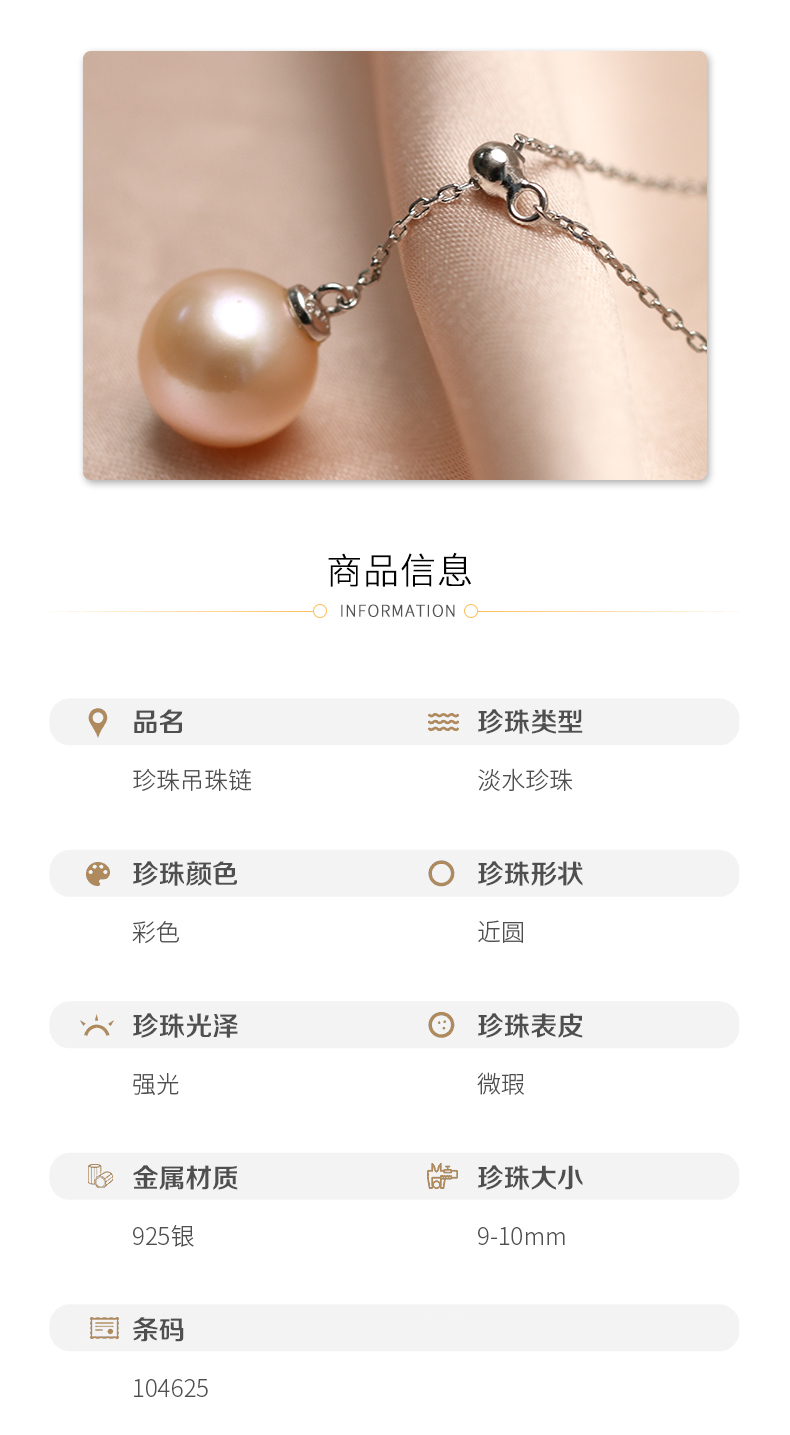 银925淡水珍珠吊珠链 9-10mm 白 104625