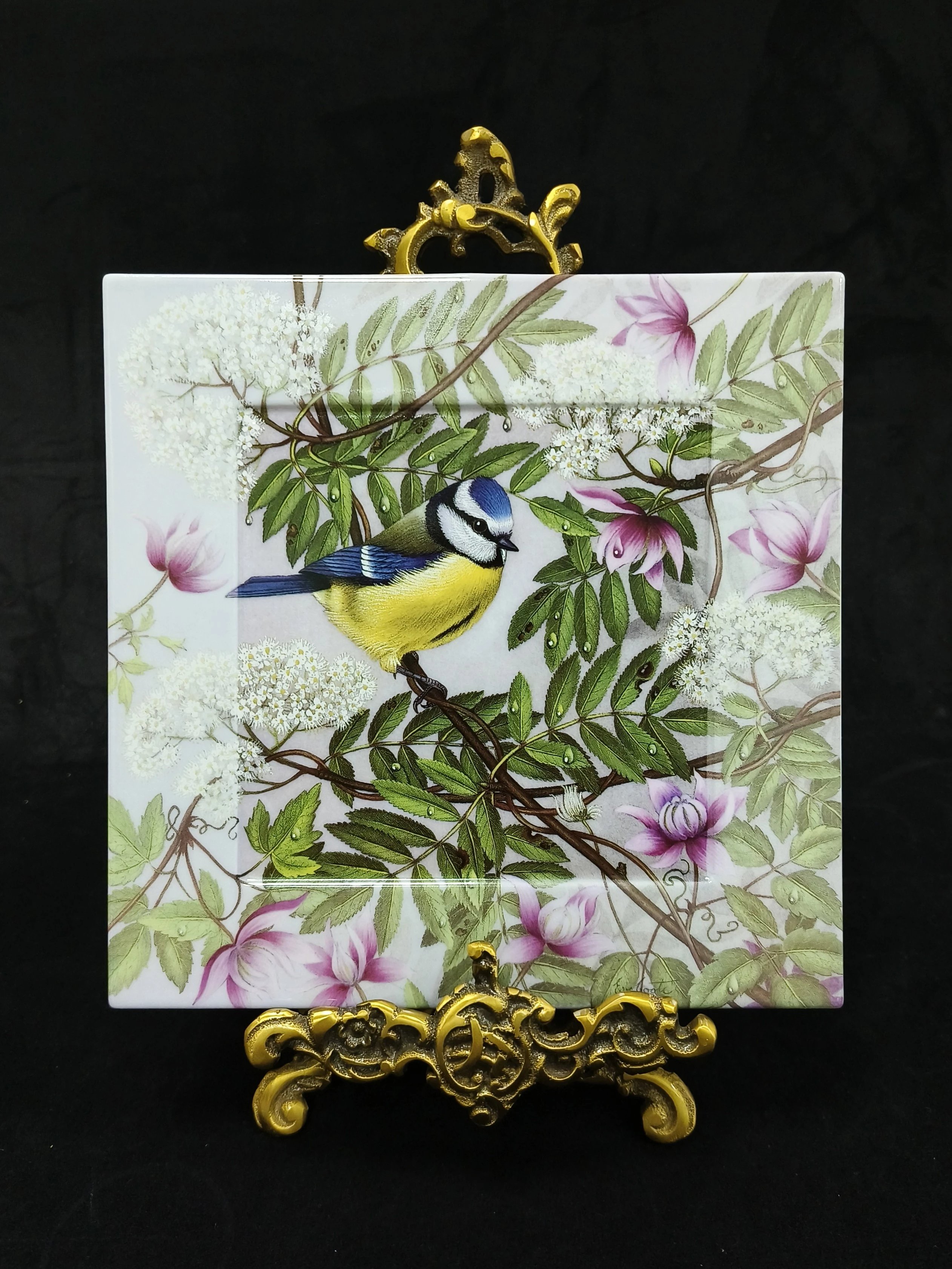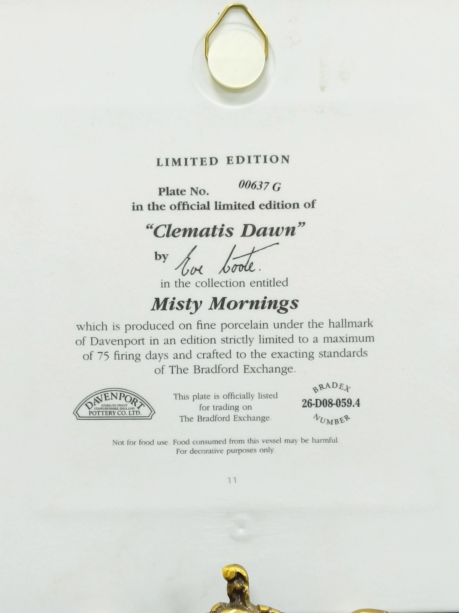 英国德文波特限量鸟类瓷画,薄雾笼罩的清晨系列,这只是铁线莲间的黎明。