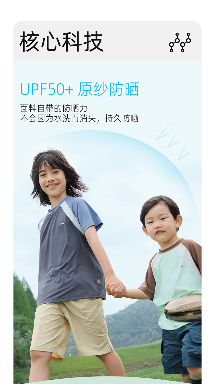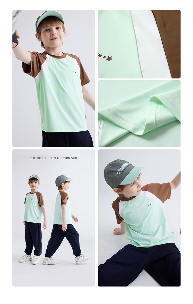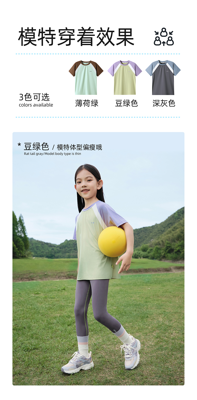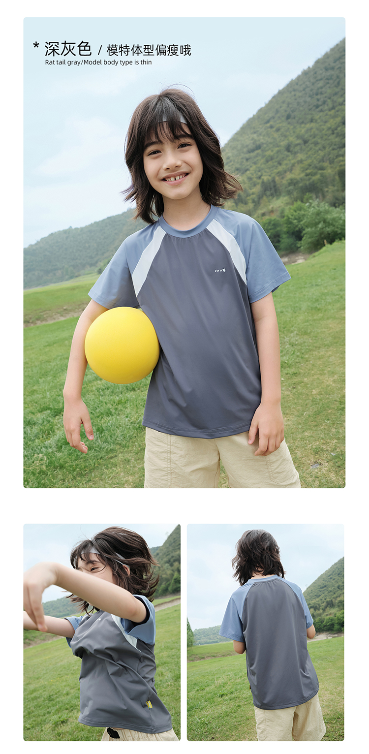 【凉感高倍防晒T UPF50+】儿童拼色凉感T恤 PXT2409