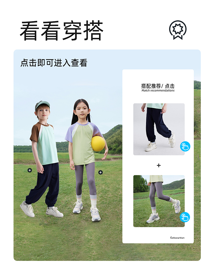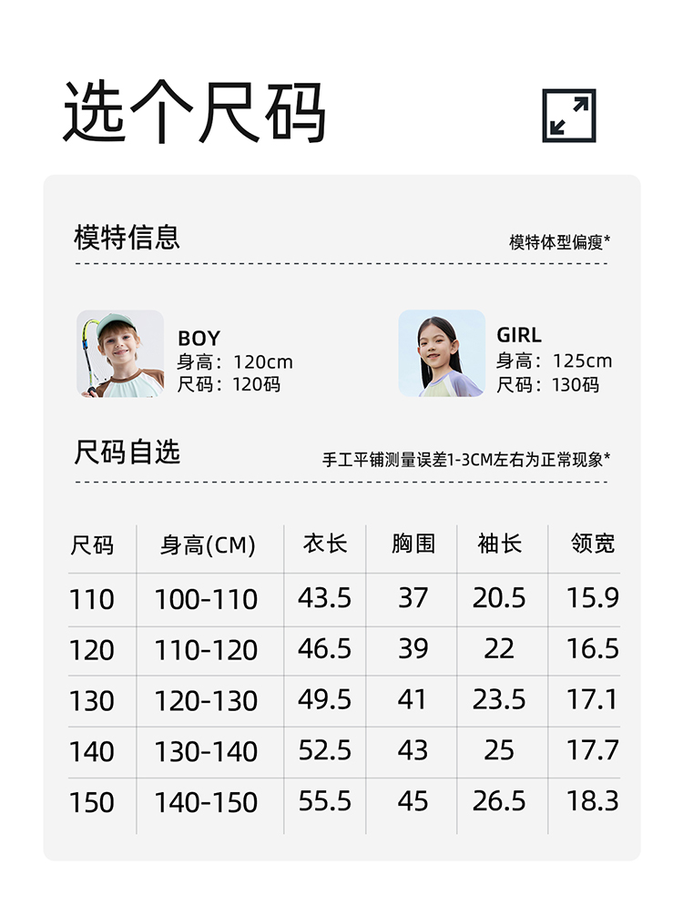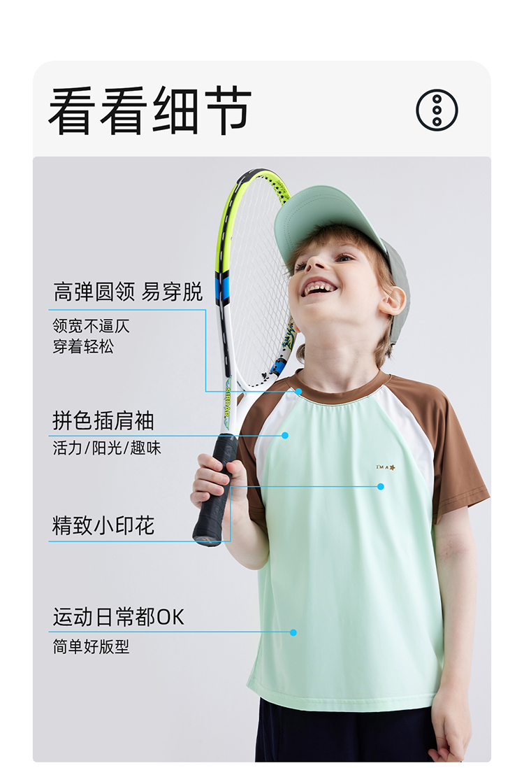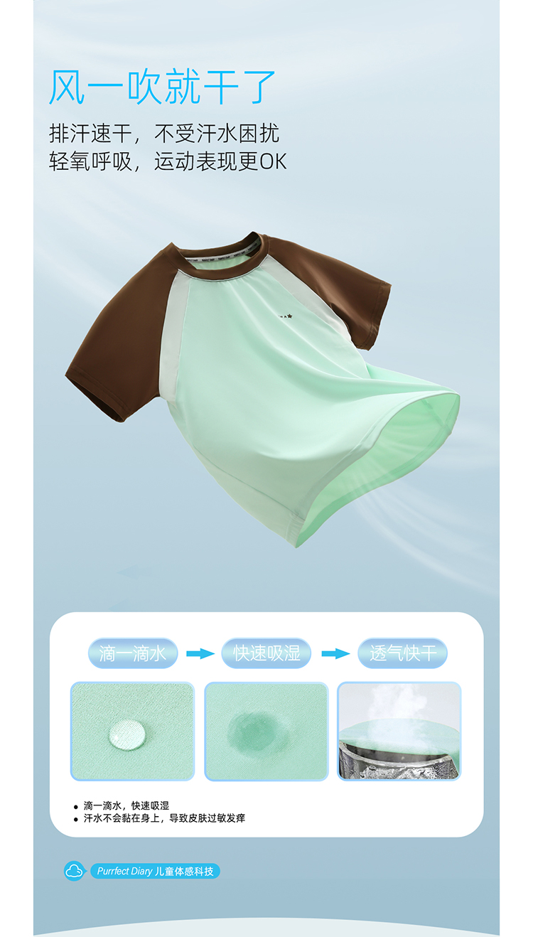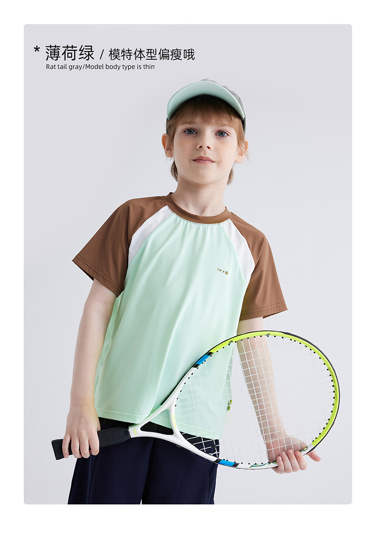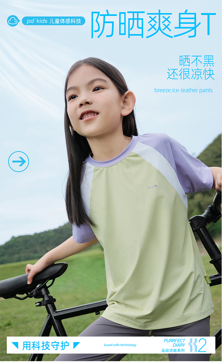 【凉感高倍防晒T UPF50+】儿童拼色凉感T恤 PXT2409
