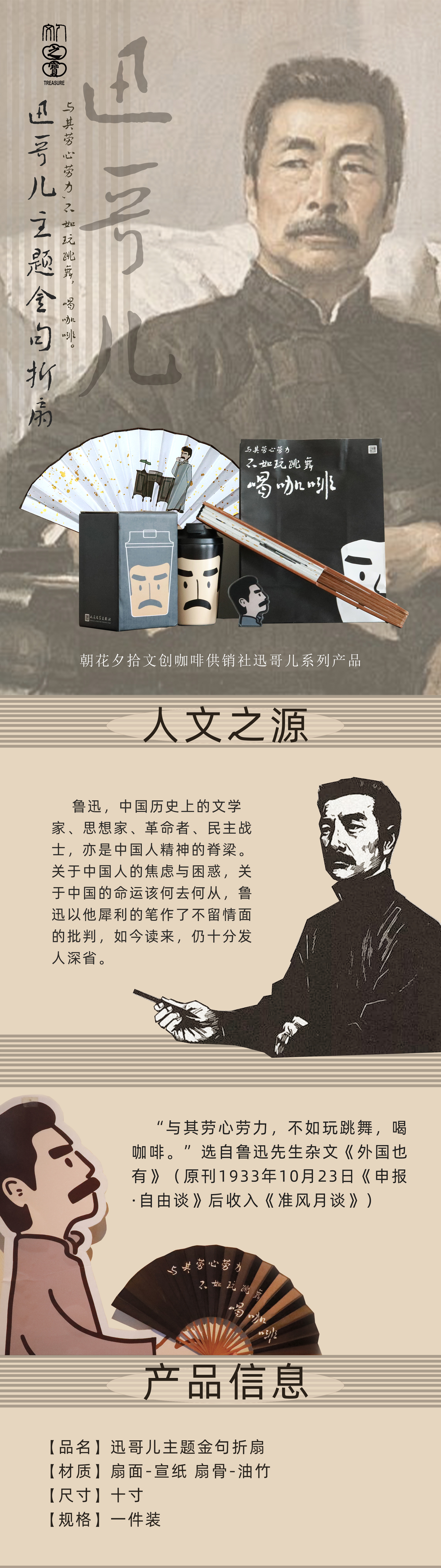 【人文之宝】鲁迅主题系列折扇 · 玩跳舞喝咖啡
