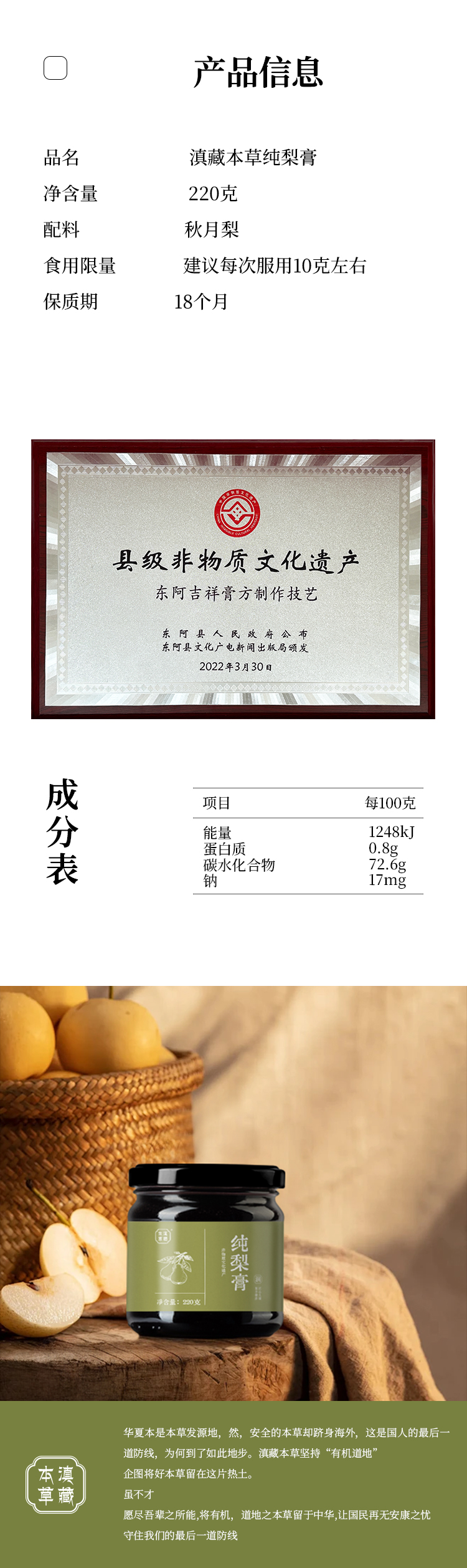 【380项农残O检出】【 O添加 秋梨膏】古法匠心慢熬 精选山东秋月梨 家中常备 220g/瓶