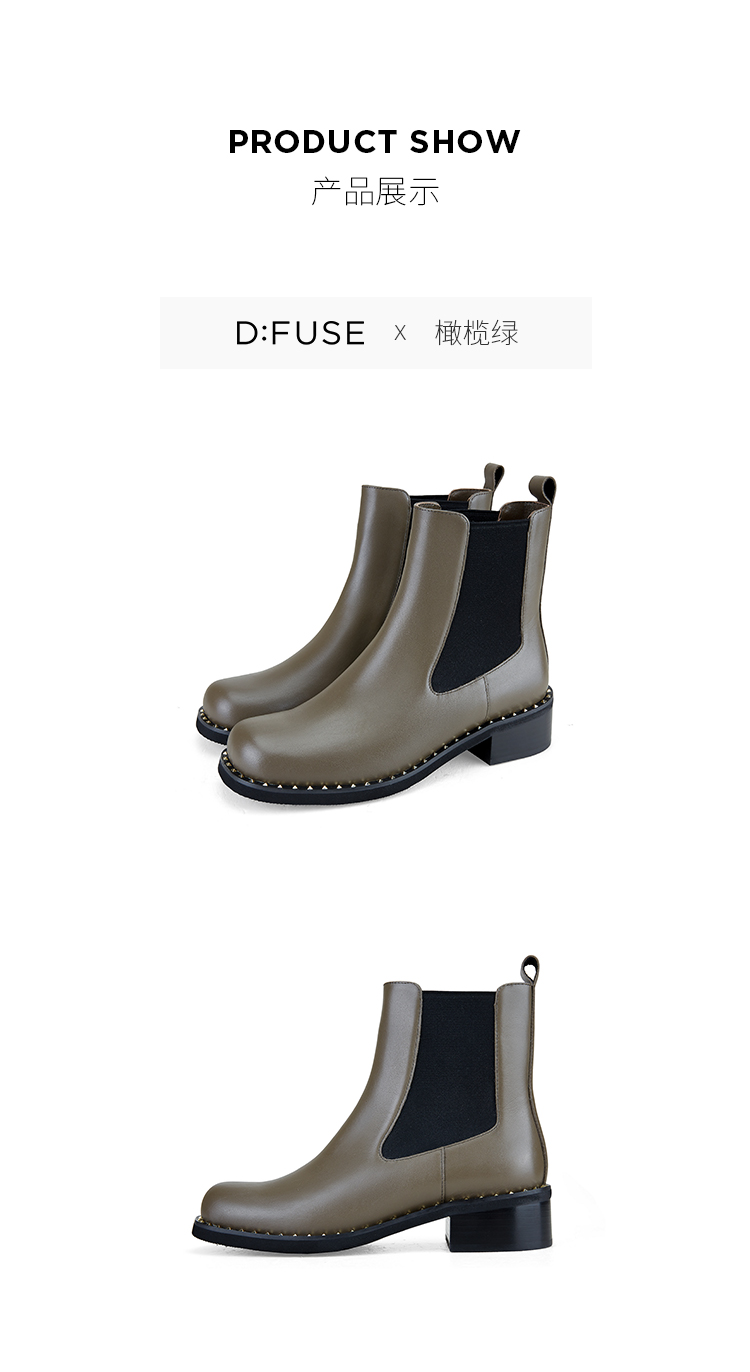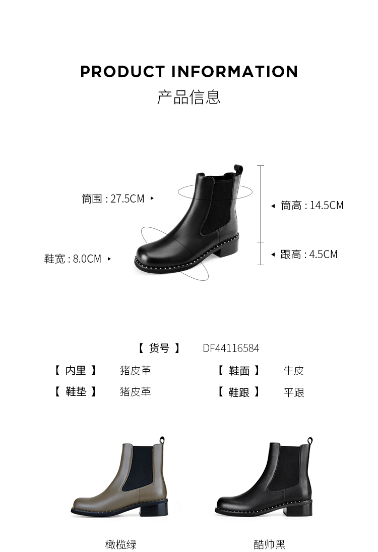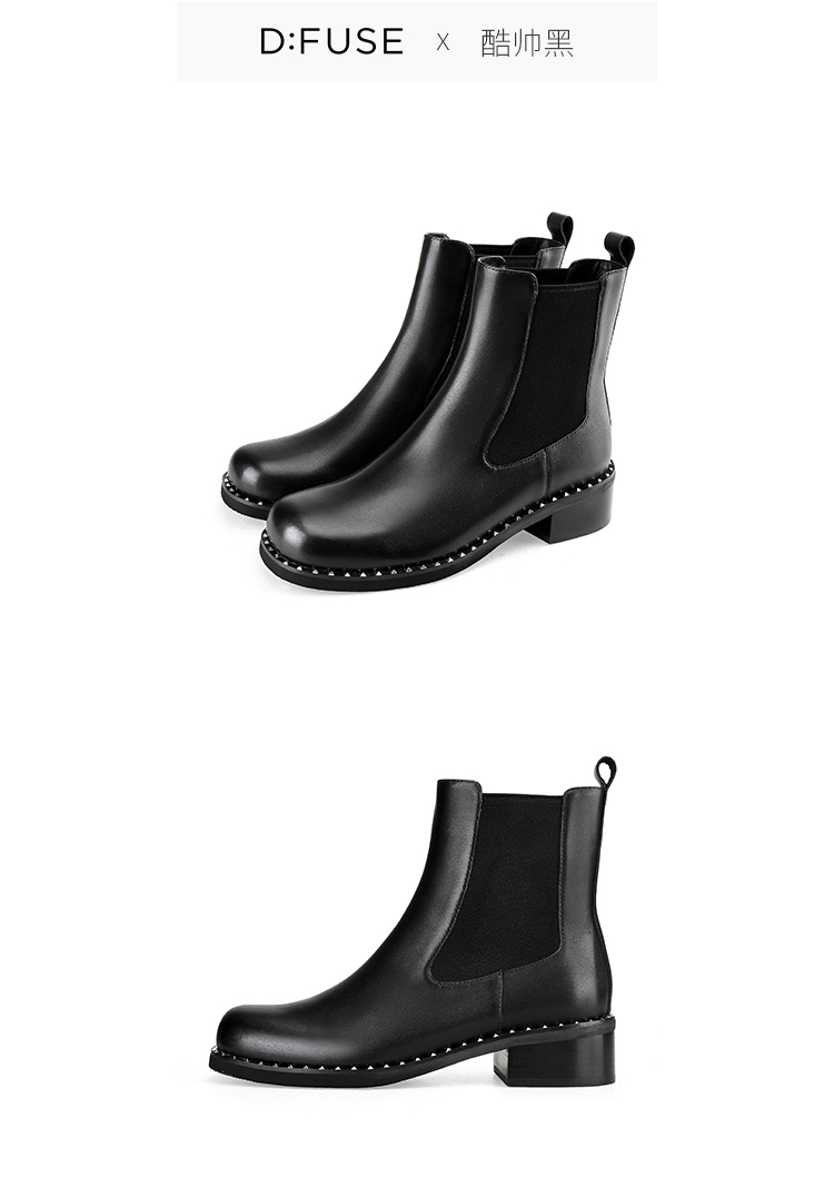 Dfuse迪芙斯2024冬季新款甜酷短靴酷帅感铆钉切尔西靴冬靴DF44116584