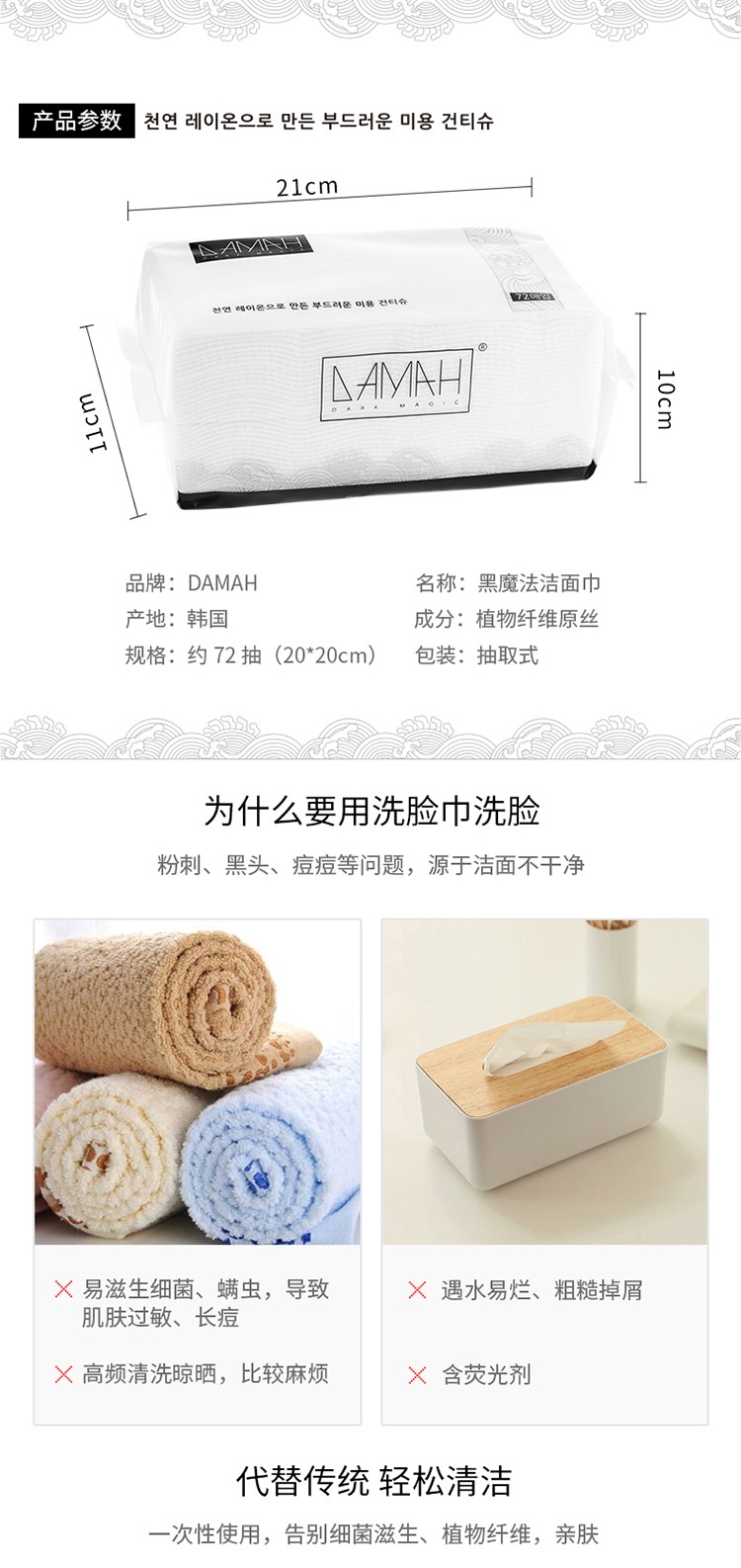 多规格【一般贸易】DAMAH韩国黑魔法一次性洗脸巾纯棉加厚化妆洁面抽取式
