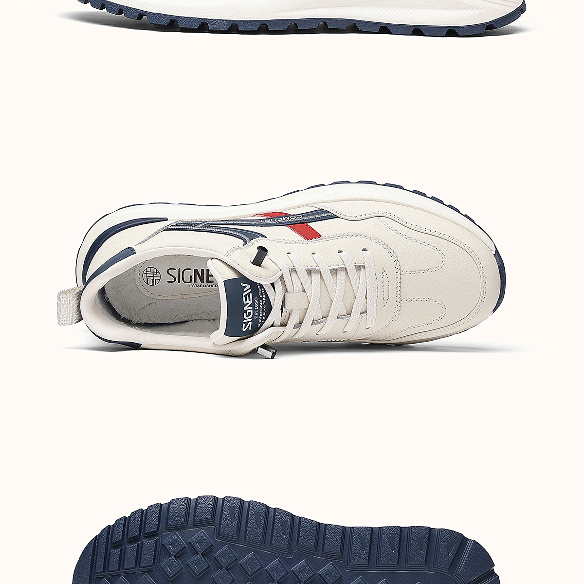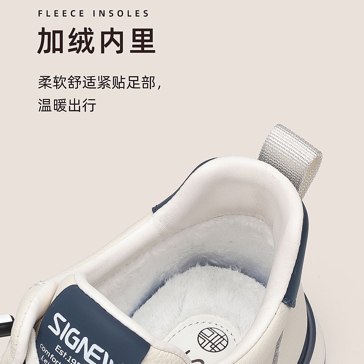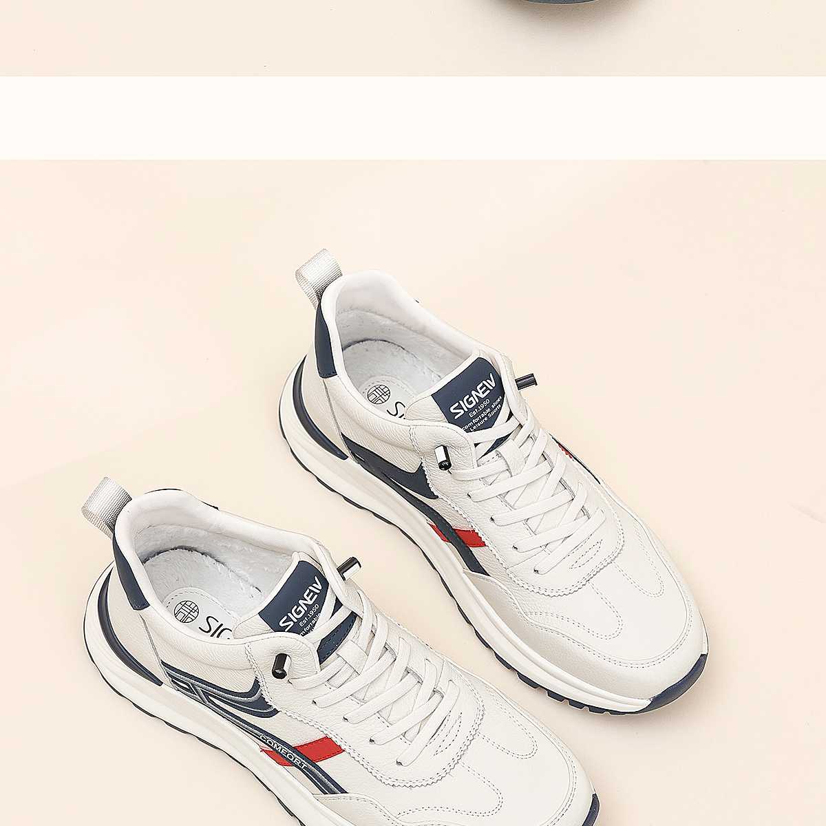 信诺真皮男士休闲鞋棉鞋软底舒适加绒皮鞋时尚小白鞋2025冬季新款N5M063-239D
