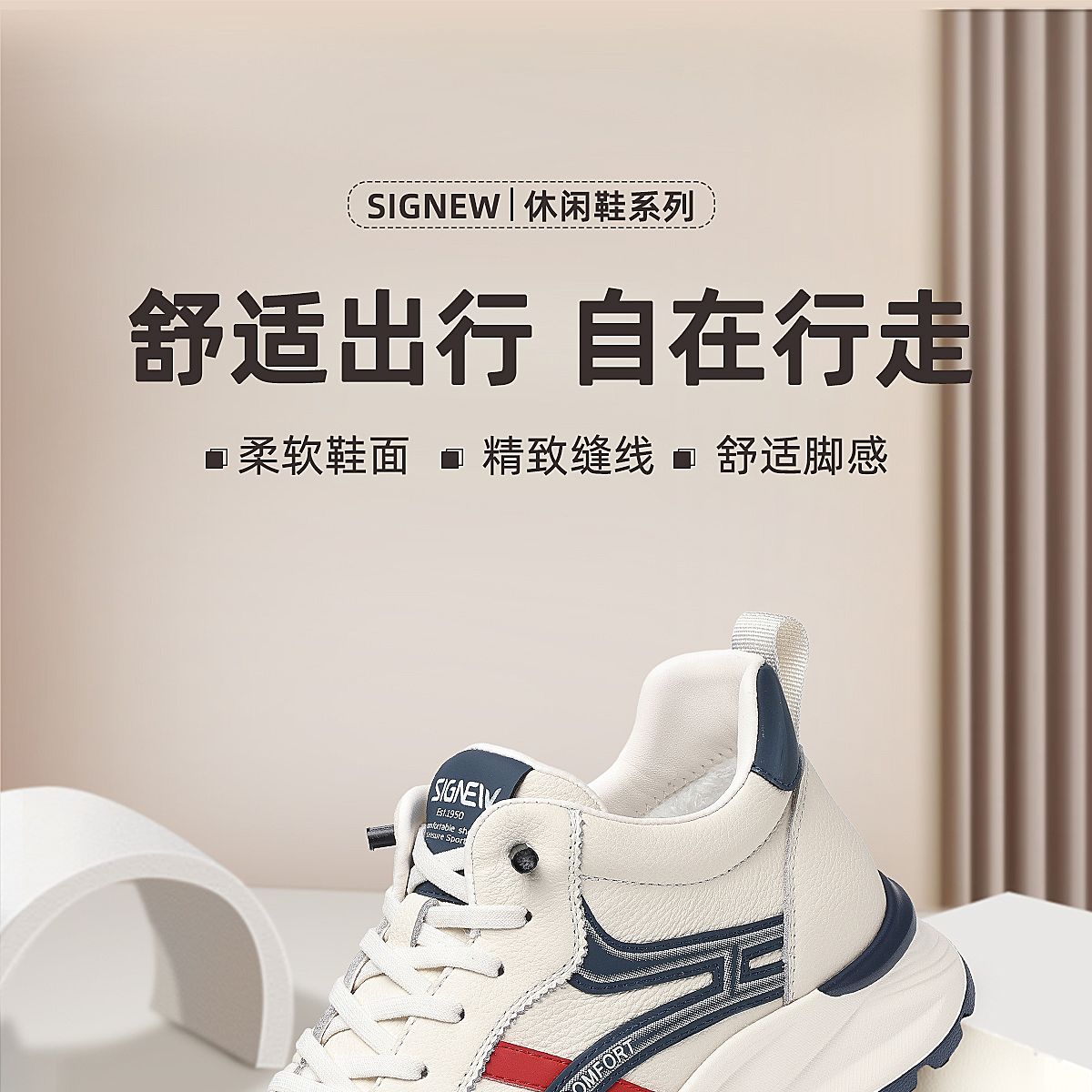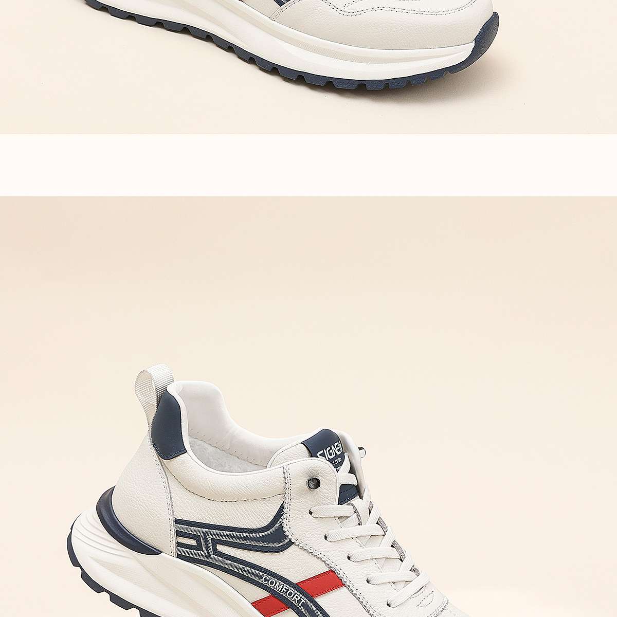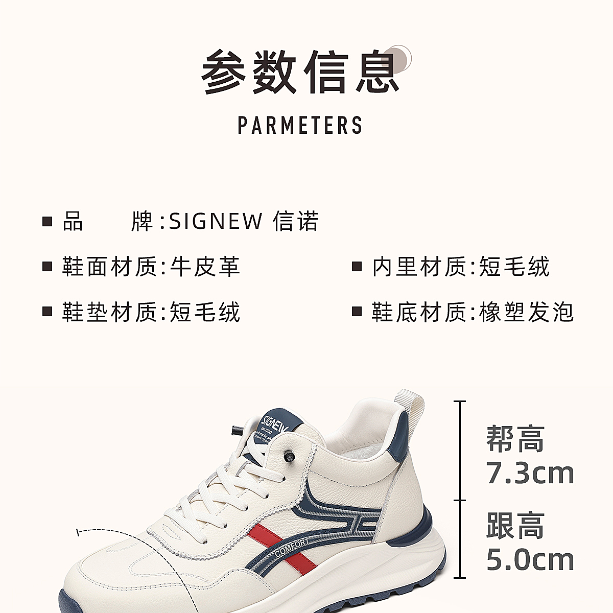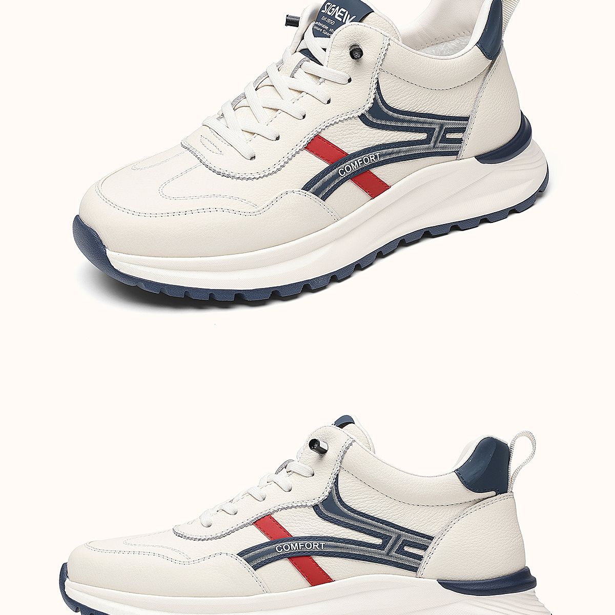 信诺真皮男士休闲鞋棉鞋软底舒适加绒皮鞋时尚小白鞋2025冬季新款N5M063-239D
