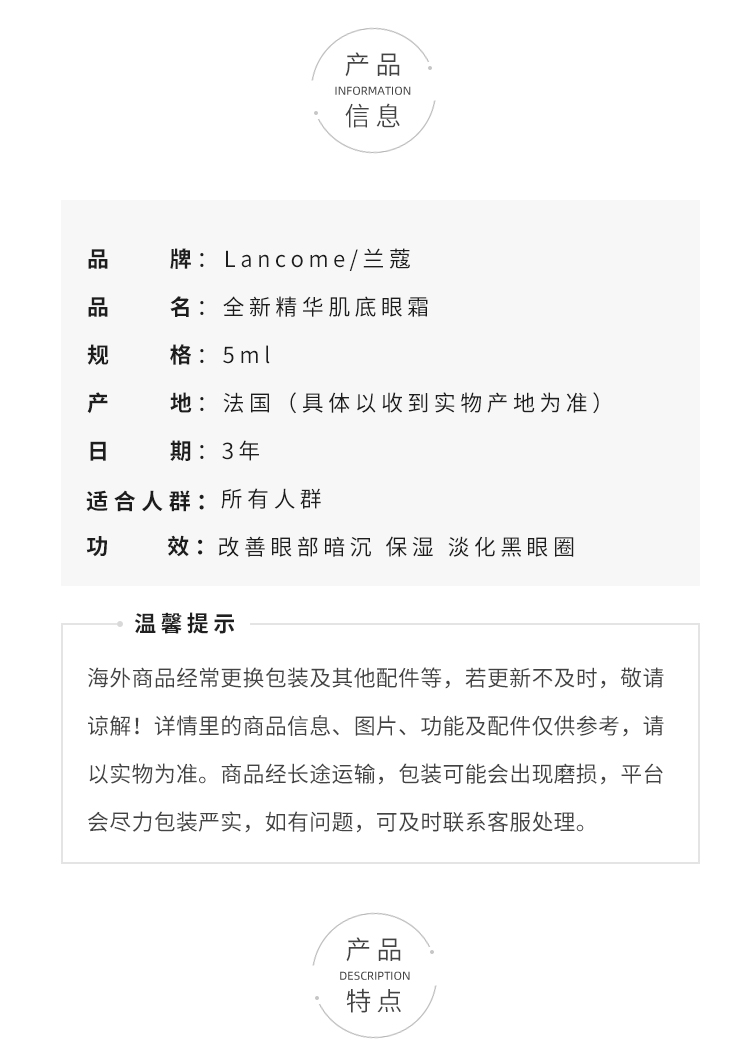 【99任选3件】兰蔻菁纯臻颜焕亮眼霜3ml(牙膏盒) 小样 滋润保湿 紧致淡纹