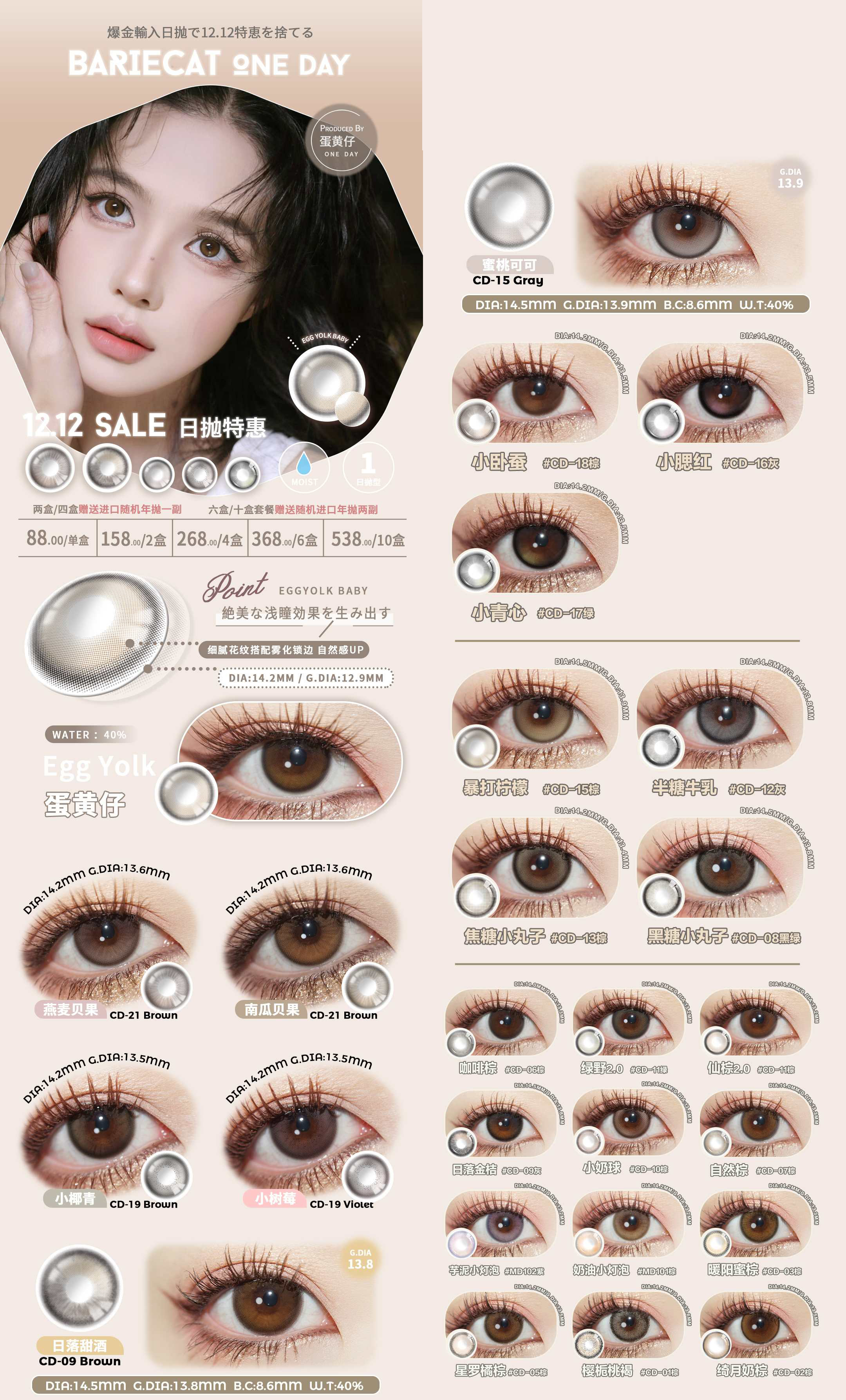 日抛bariecat 活动合集【小青心 小卧蚕 小腮红 暴打柠檬 蜜桃可可 小腮红 焦糖小丸子 半糖牛乳 小奶球 日落金桔 咖啡棕 自然棕 深海炸弹 奶油小灯泡 芋泥小灯泡 樱栀桃褐】