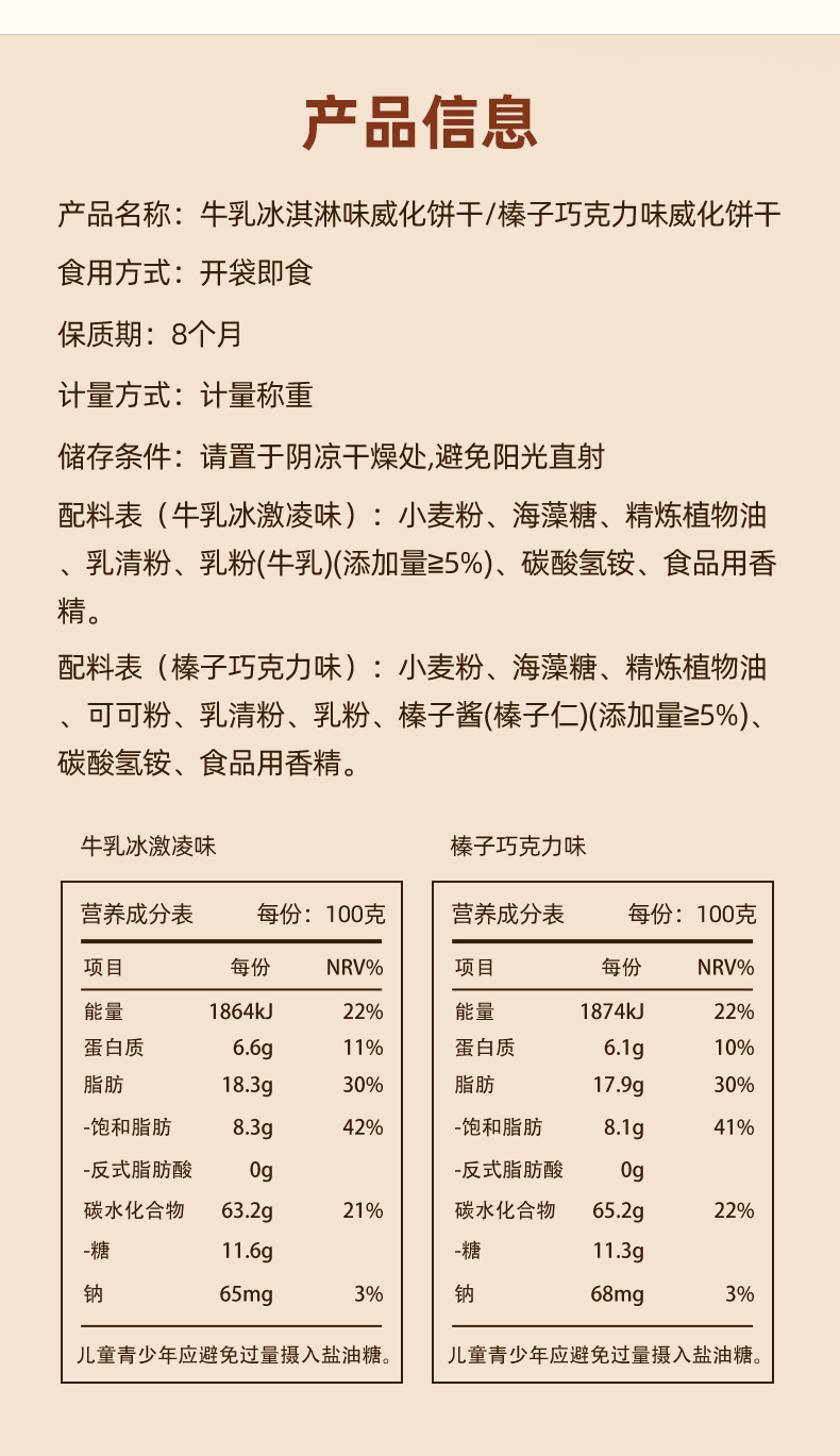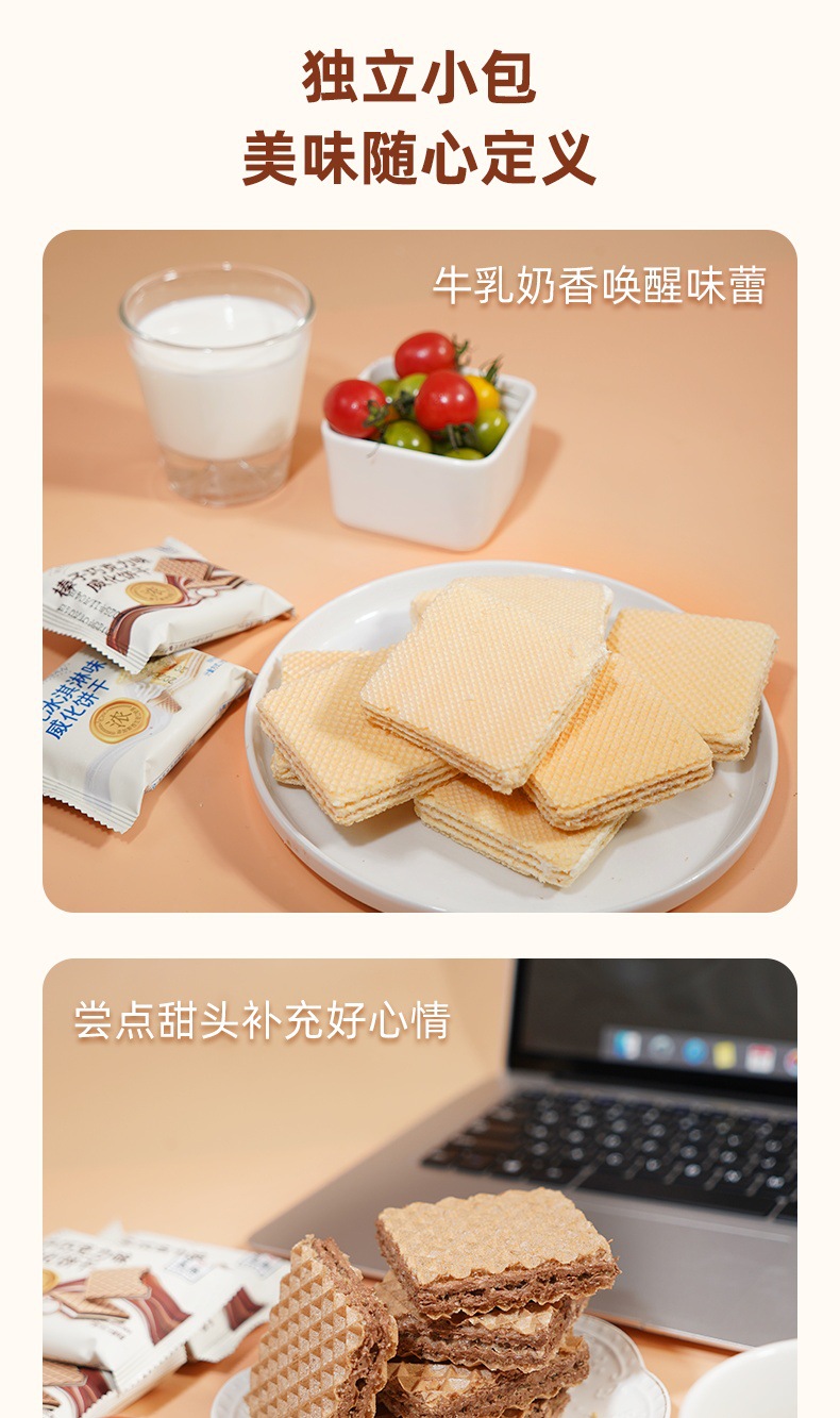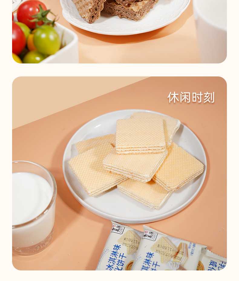 【尽享酥脆❗️牛乳冰淇淋/榛子巧克力味威化饼干】甄选品质原料制作,0反式脂肪酸,美味香醇也安心,早餐代餐下午茶点心休闲小吃零食L